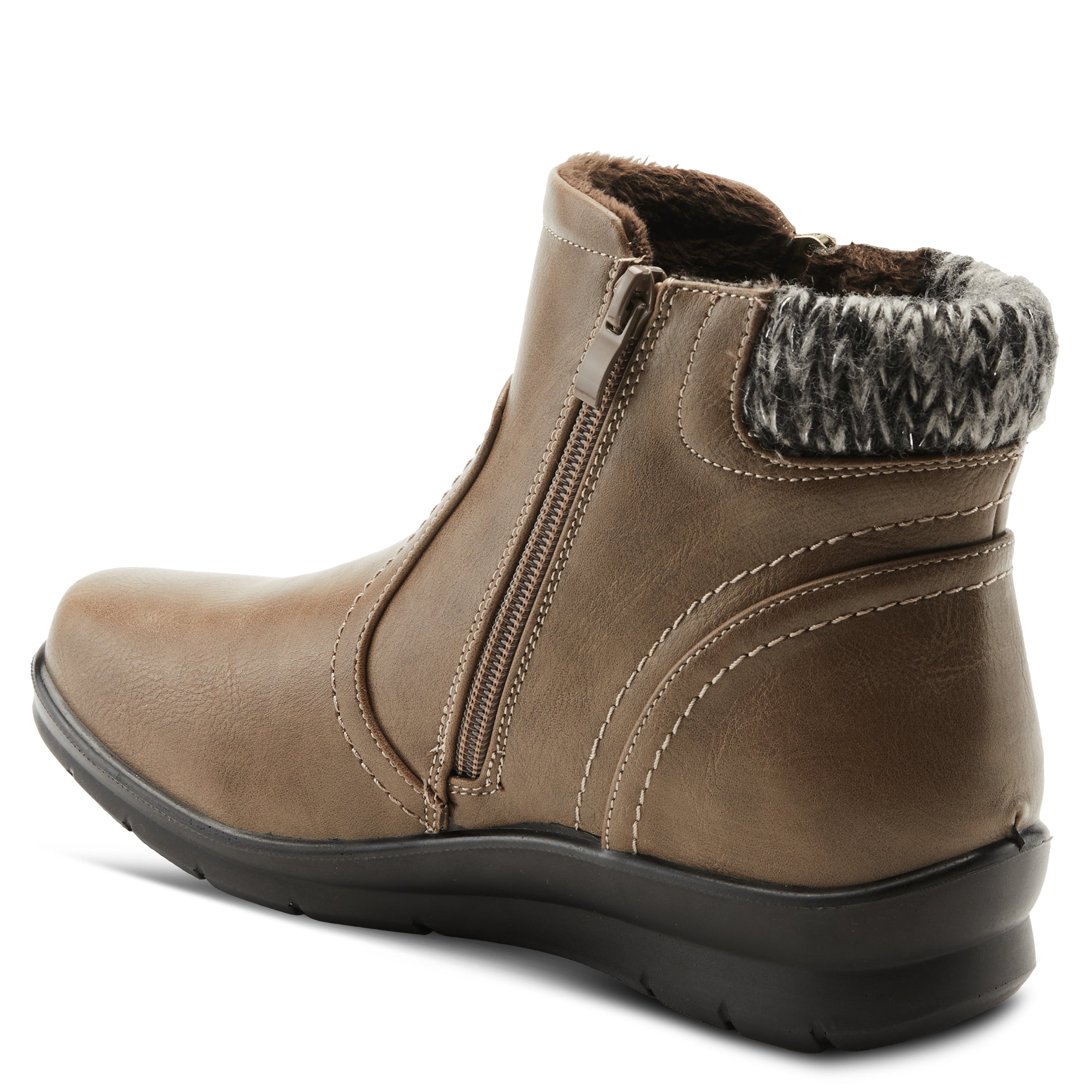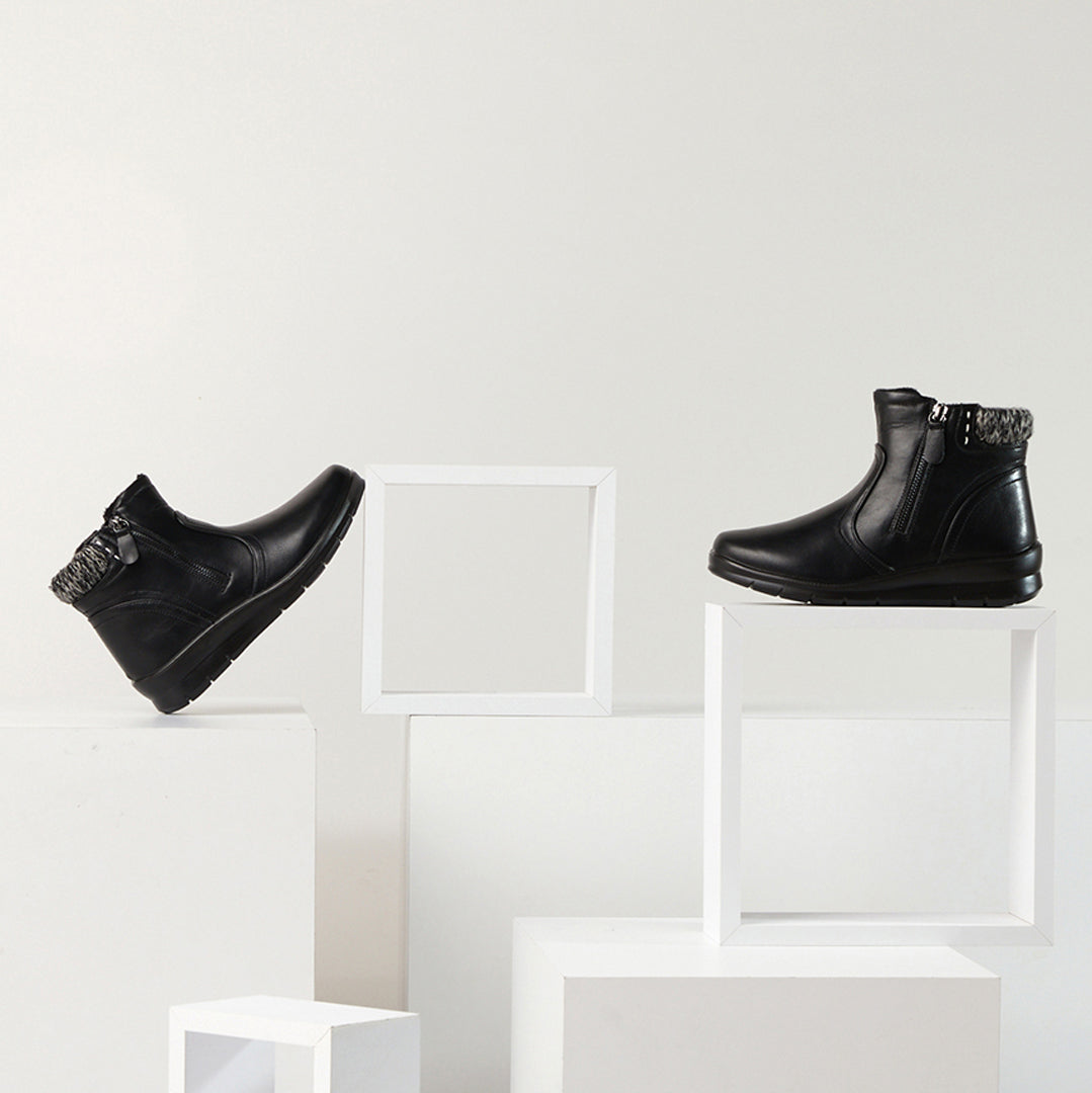Comodidad de lujo con un estilo moderno. Este botín suave de punto jersey se cierra en la parte trasera del tobillo y tiene una cremallera decorativa que lo distingue del resto.