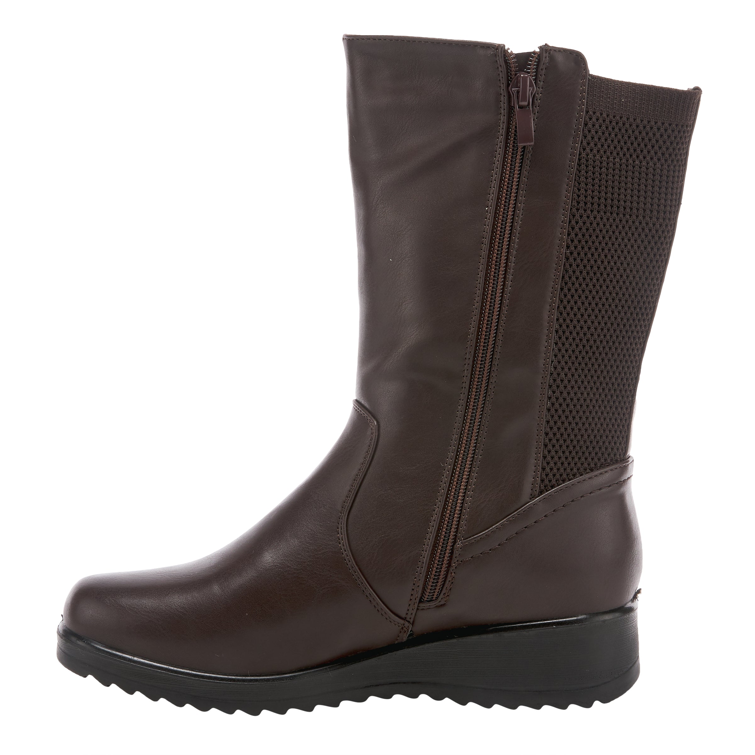 Bota elegante con hermoso tejido elástico tonal en el eje trasero en una cómoda SUELA.