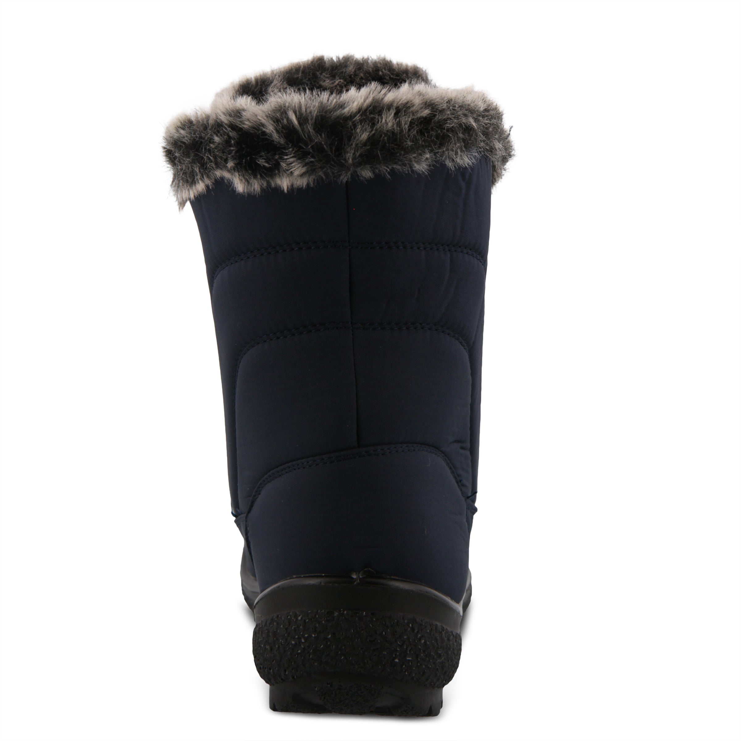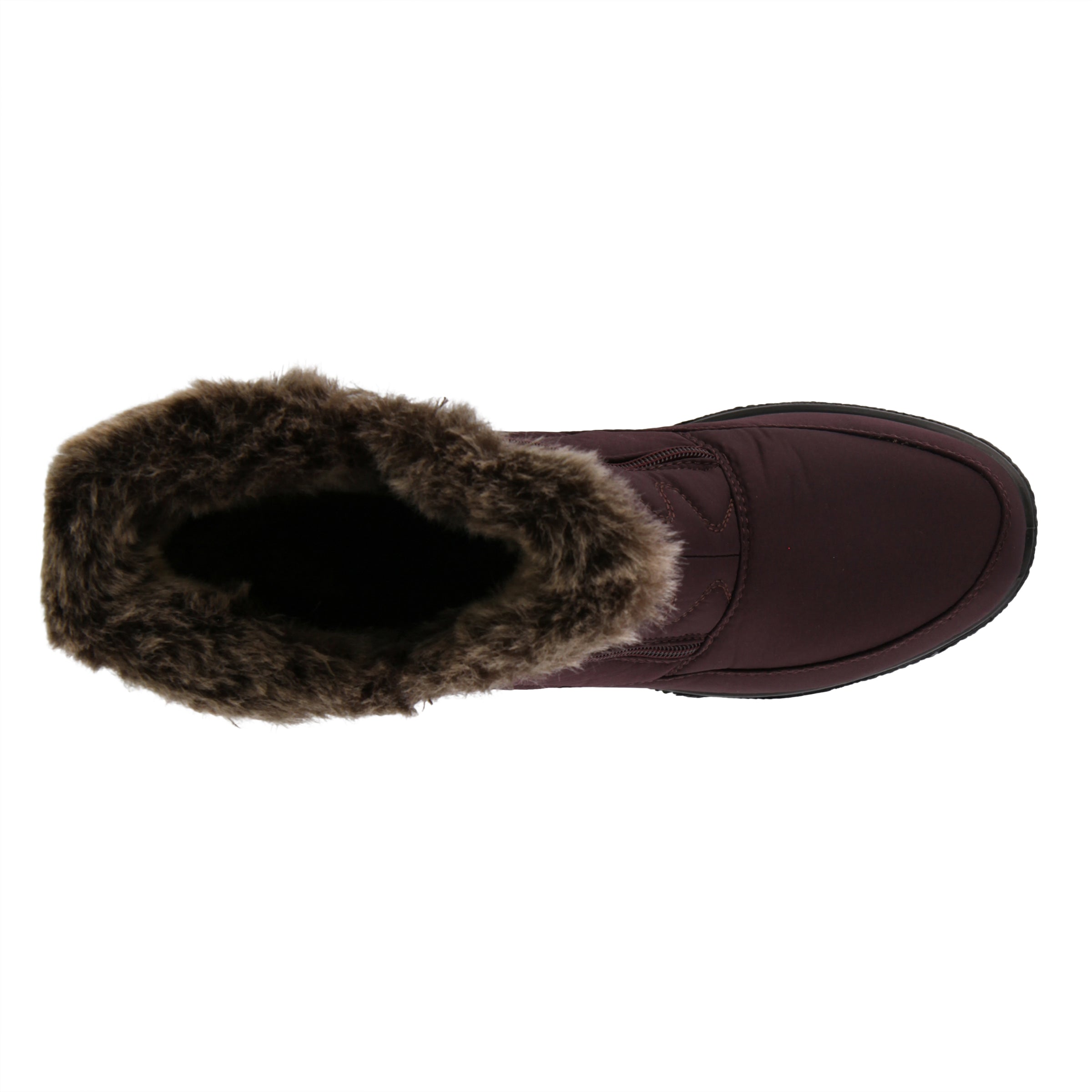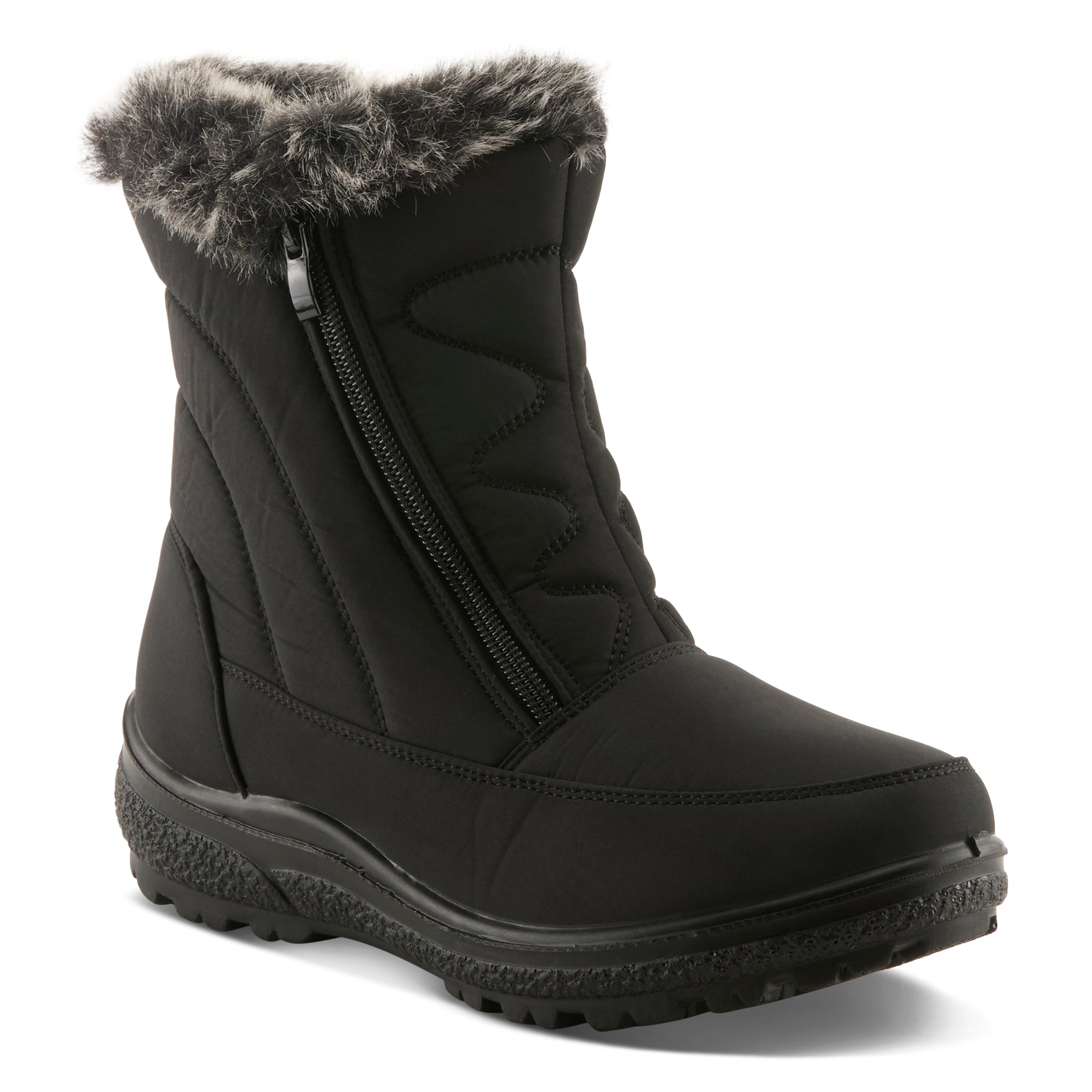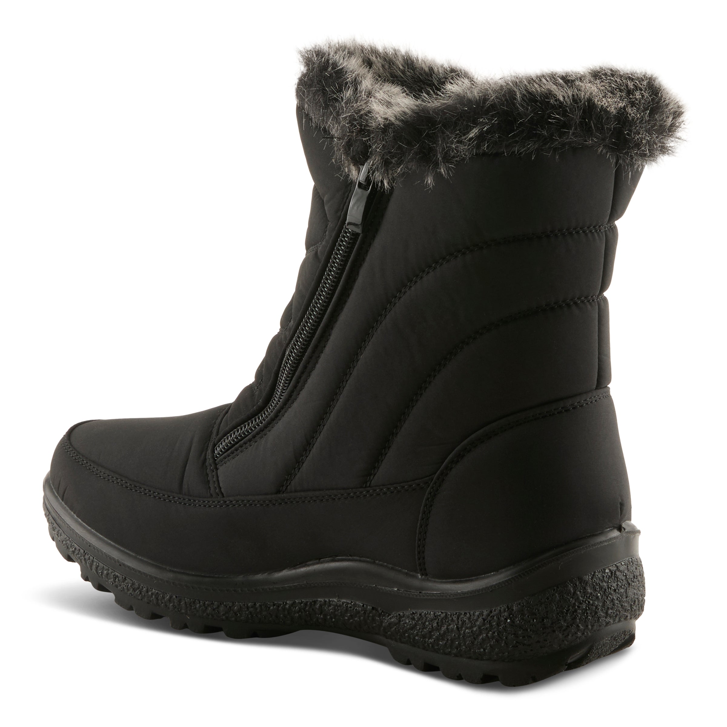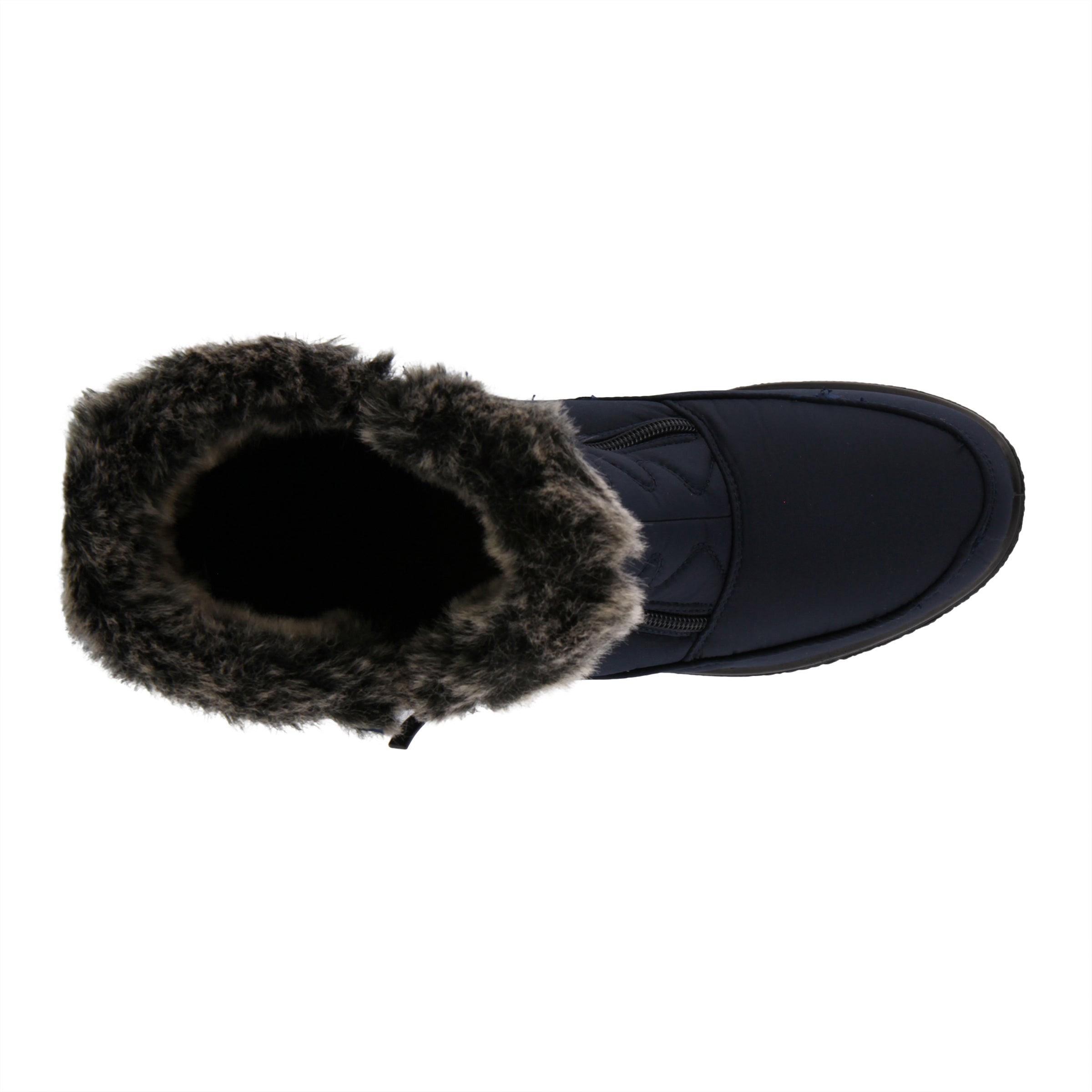 Acogedor y cómodo botín de nailon resistente al agua, hermoso cuello de piel sintética y detalle de costura en el eje con cremalleras dobles de moda, construcción muy flexible con suela exterior de poliuretano de dos colores de peso ligero inyectado directamente.