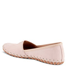 Zapato sin cordones de cuero premium de alta calidad con influencia mediterránea que presenta un empeine con muescas en el centro con un inserto elástico elástico en forma de V y delicadas costuras tonales, todo en una construcción fuerte cosida a la suela, esculpido, plano y cómodo con un antepié flexible y plantilla extraíble.