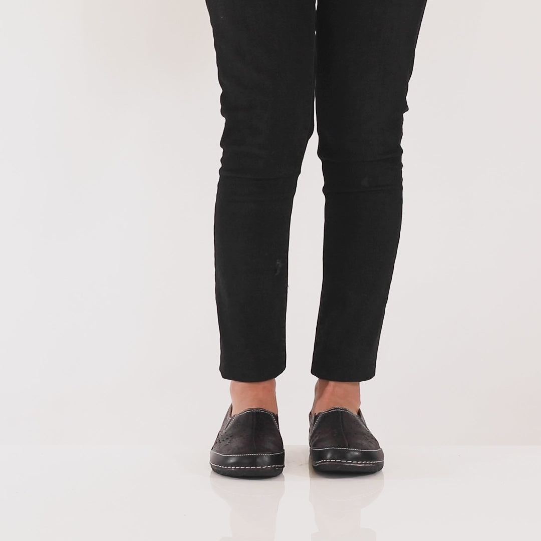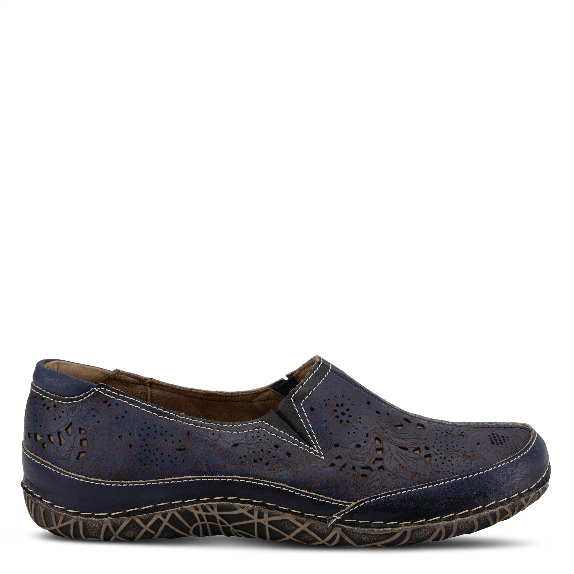 Mocasín de piel pintado a mano de inspiración francesa con diseño de flores perforadas y elástico cubierto.