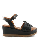 Mejora tu estilo con nuestra sandalia de cuña de cuero, que cuenta con un práctico cierre de velcro, un detalle de flor de cuero intrincadamente retorcido/fruncido y cuero que desciende por la suela exterior para una apariencia atemporal y sofisticada.