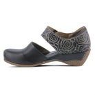 Mercedita de dos piezas de piel pintada a mano con cierre de tiras de ganchos y trabillas. Hermosos cuartos florales de cuero de dos tonos con parte superior acolchada en el talón.