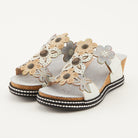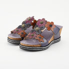 Sé la comidilla de la ciudad con estos tacones de cuña. Esta sandalia tipo tobogán presenta flores decorativas en 3D de varios colores y un detalle de botón en relieve. El cierre de Velcro Hook and Loop te da la posibilidad de ajustar el ajuste a tu pie. El talón presenta un corcho mezclado con un fondo de cuero trenzado. Estas sandalias son lo último en diversión y funcionalidad.