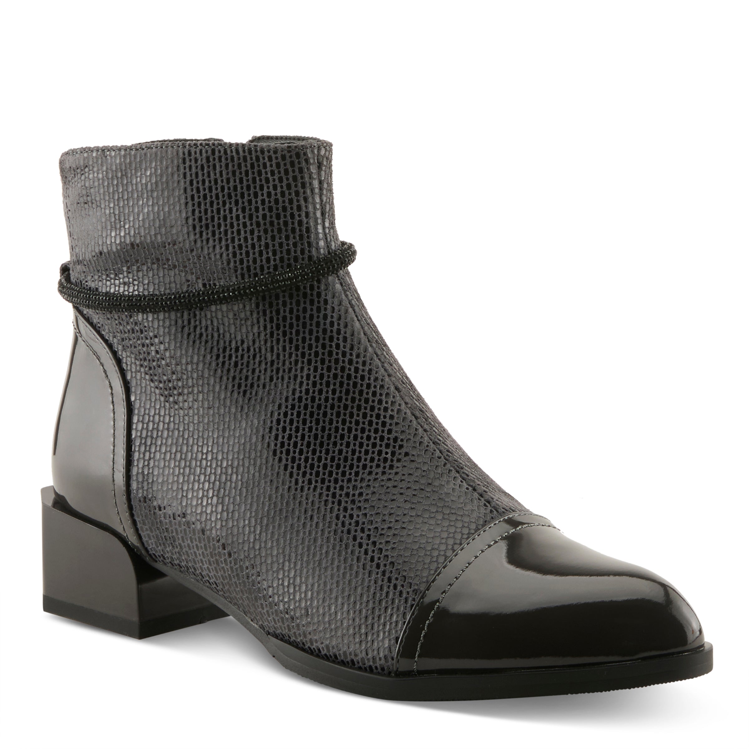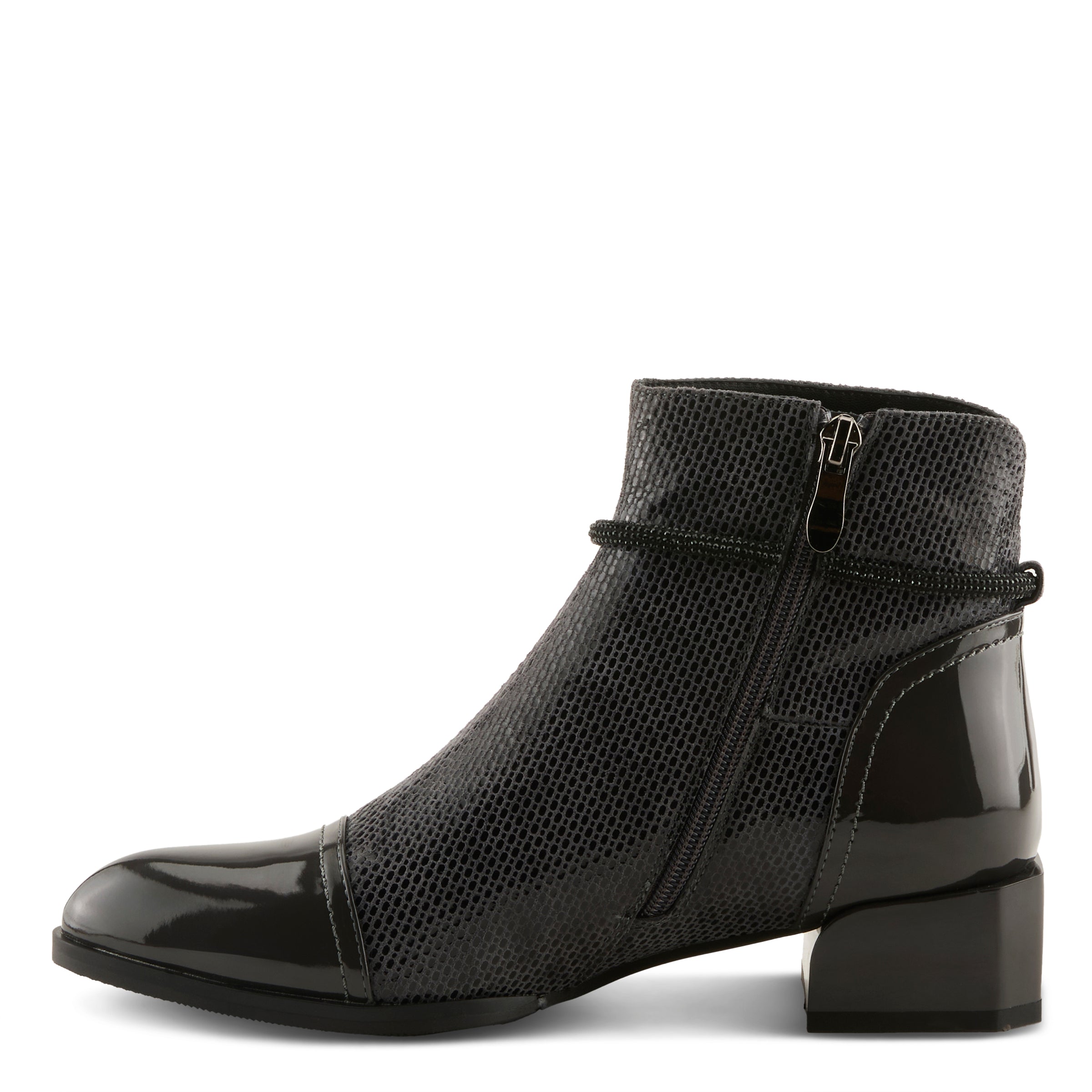 Haz una entrada espectacular con los SHELBI. La puntera de charol y el contrafuerte del talón trasero aportan sofisticación, mientras que el cinturón de cristal aporta el factor sorpresa. Una cremallera interior permite llevarlos sin complicaciones, para que puedas centrarte en deslumbrar a la gente. Haz alarde de tu sentido de la moda con estos botines llamativos que transforman cualquier atuendo, desde básico hasta fabuloso. Los SHELBI están diseñados para mejorar tu guardarropa con una buena dosis de brillo y glamour. ¡Roba el centro de atención con estos deslumbrantes botines!