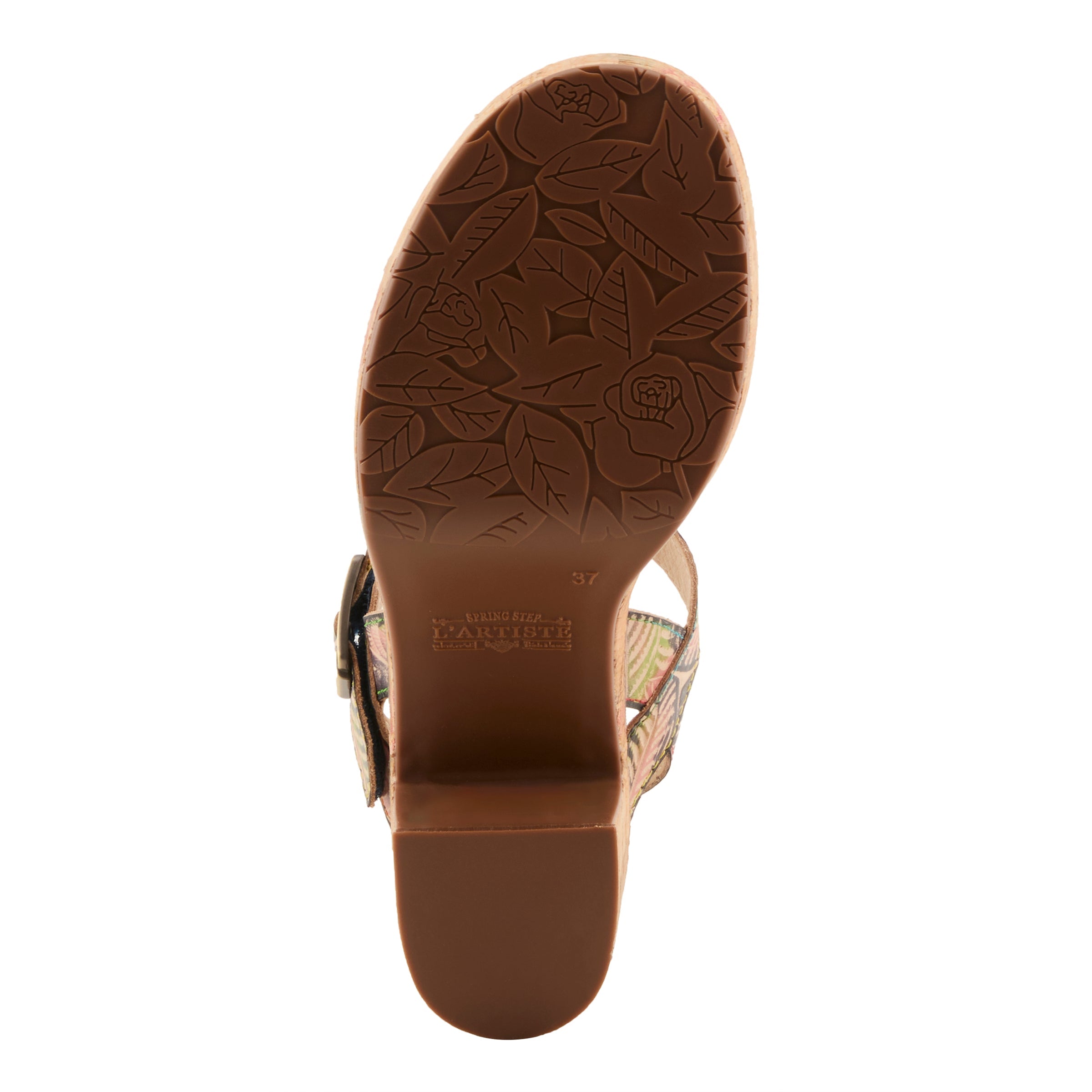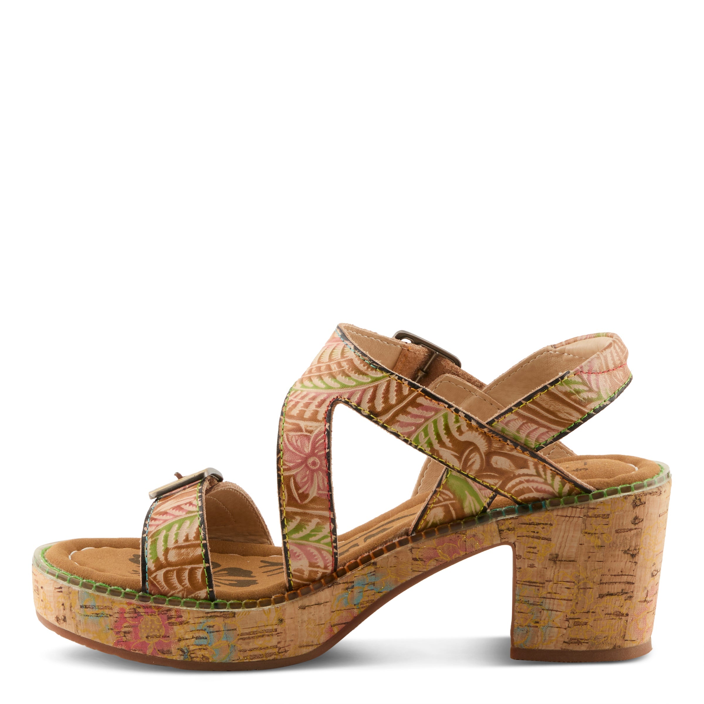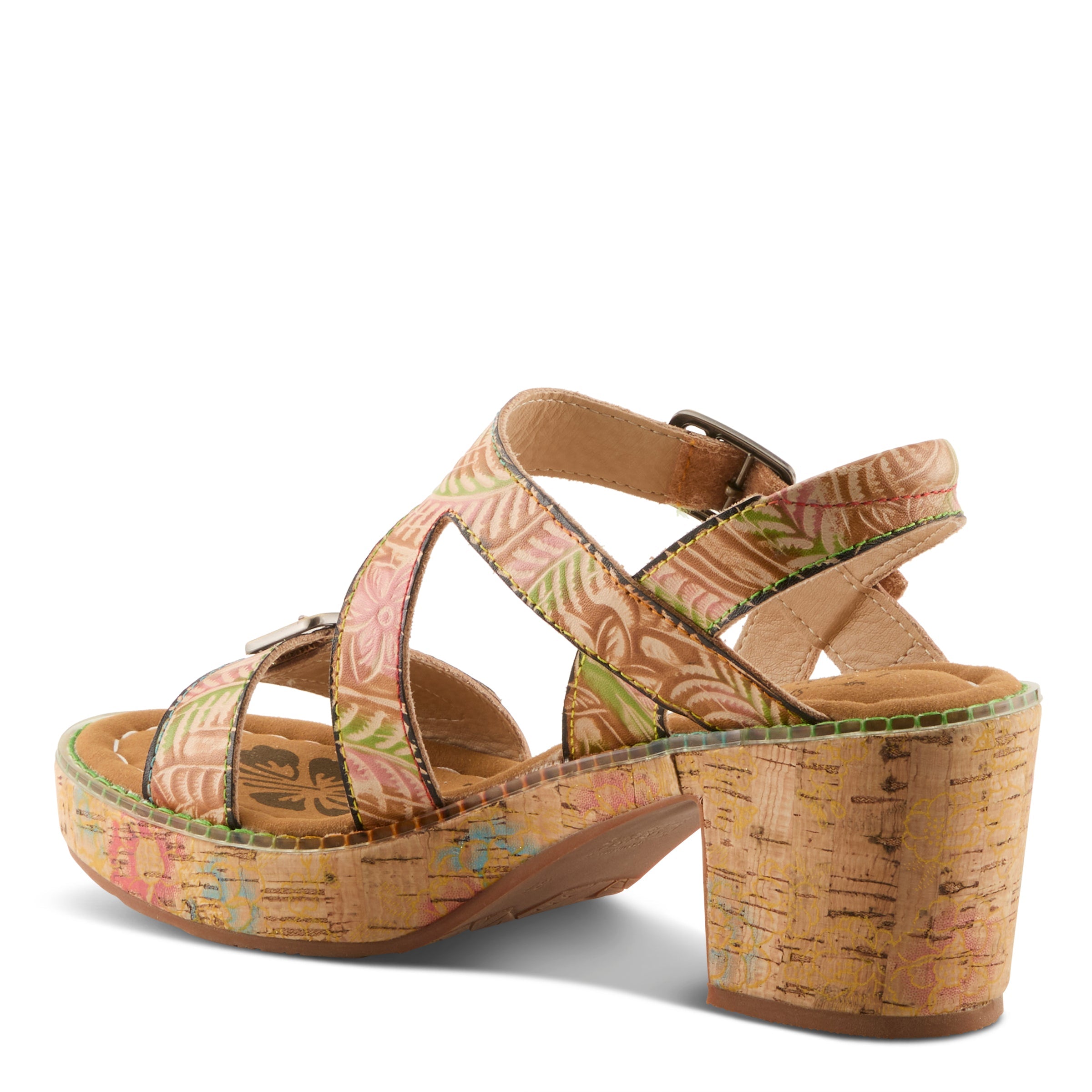 - Cork-wrapped heel with artisan patterns for a fashion-forward edge
