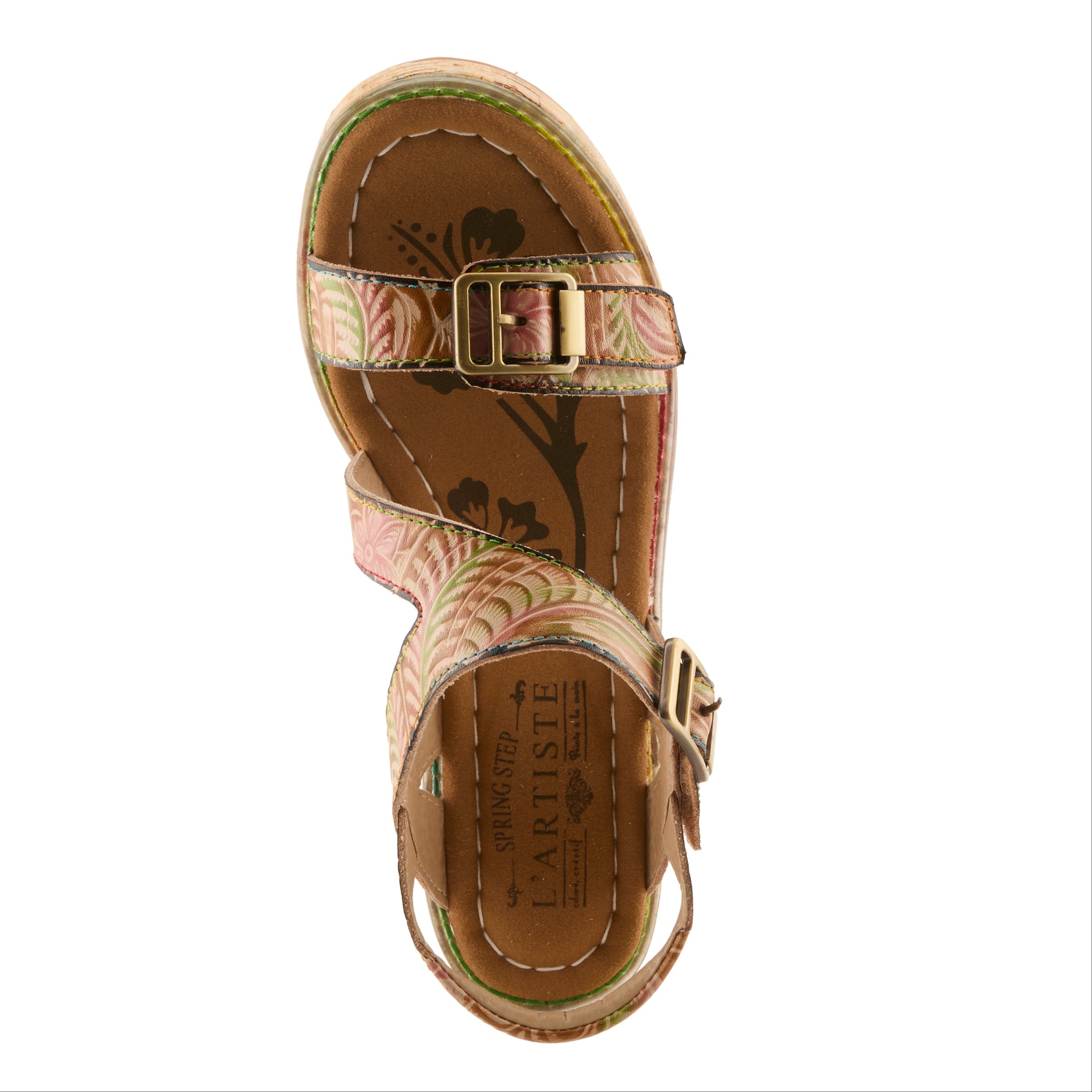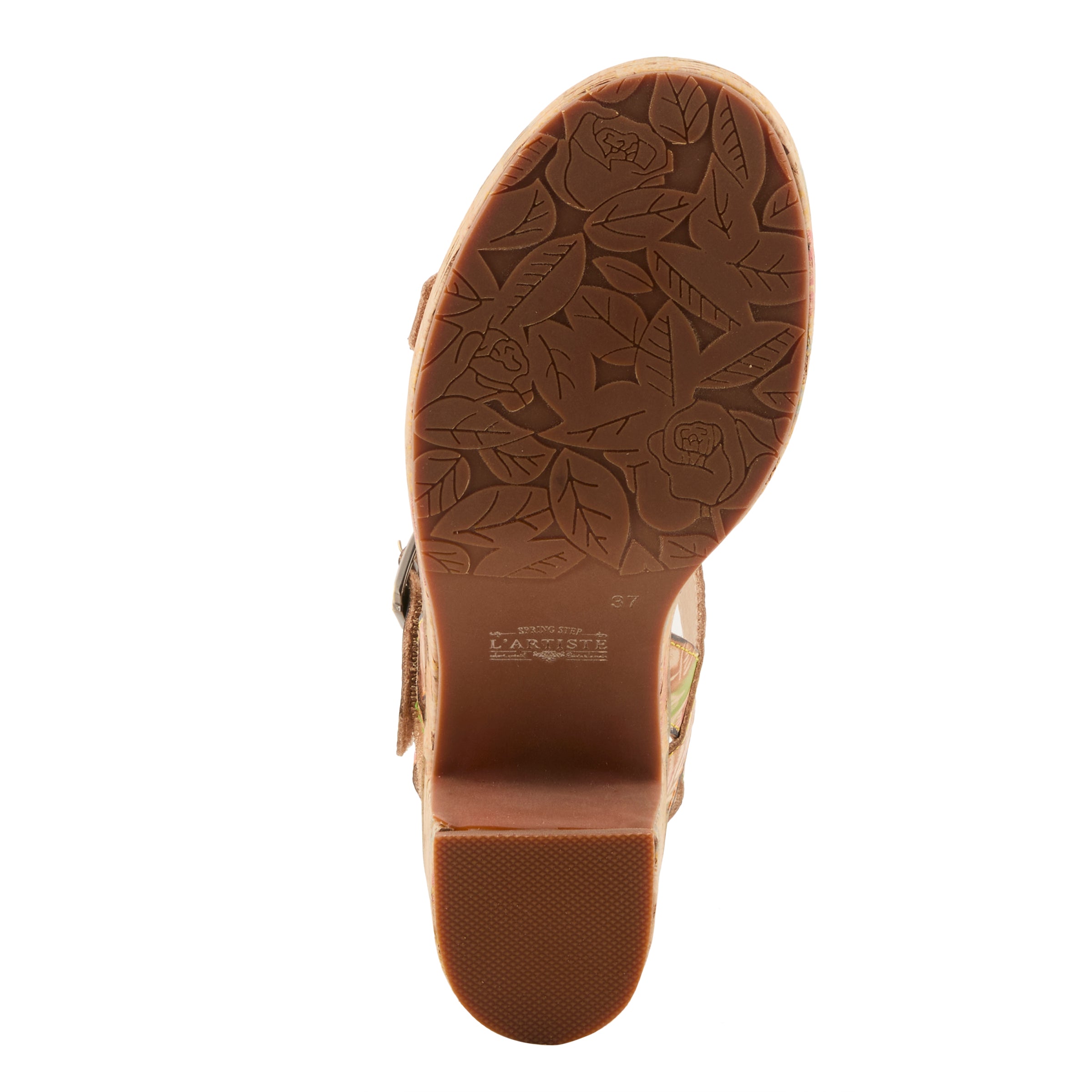 Step into timeless artistry with this effortlessly chic sandal, a design that blends the beauty of old-world craftsmanship with everyday functionality. The embossed, hand-painted leather upper is adorned with delicate floral motifs, each one brushed by hand so that no two pairs are ever exactly alike. The natural textures and subtle tones add a layer of quiet sophistication, making this sandal equally at home with your favorite sundress or tailored trousers. Two adjustable straps with antique brass buckles provide a secure, customized fit, while the supportive backstrap offers extra stability without sacrificing elegance.