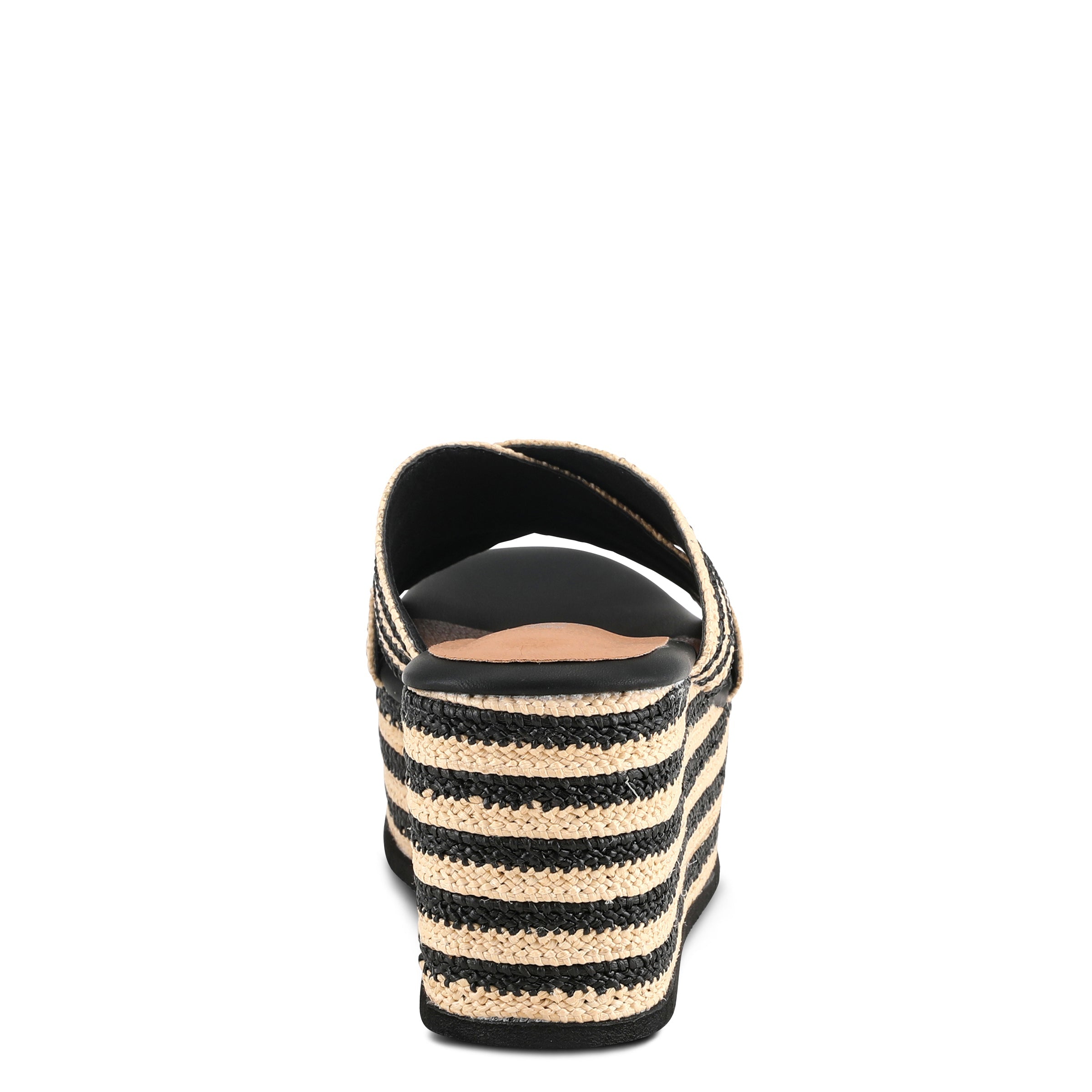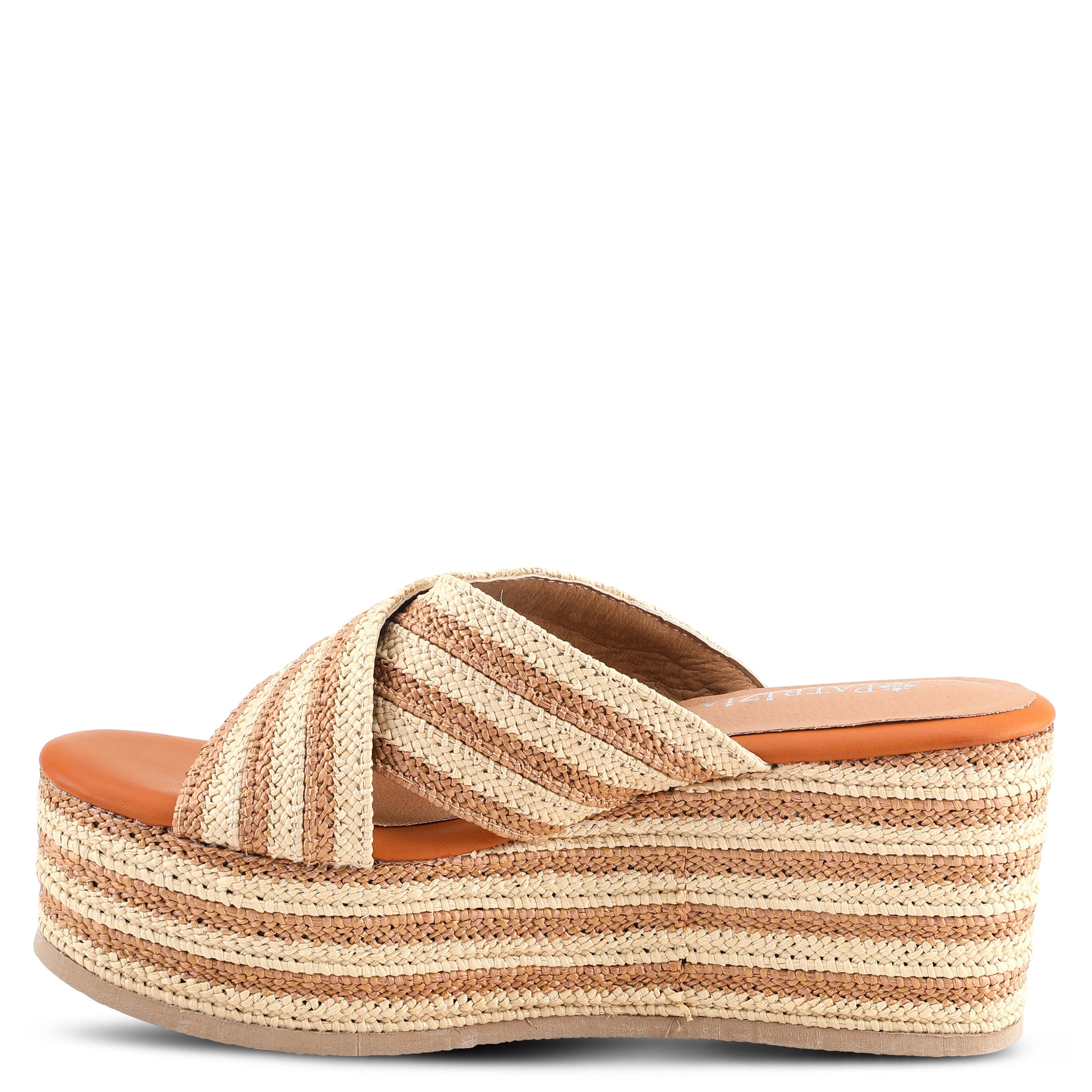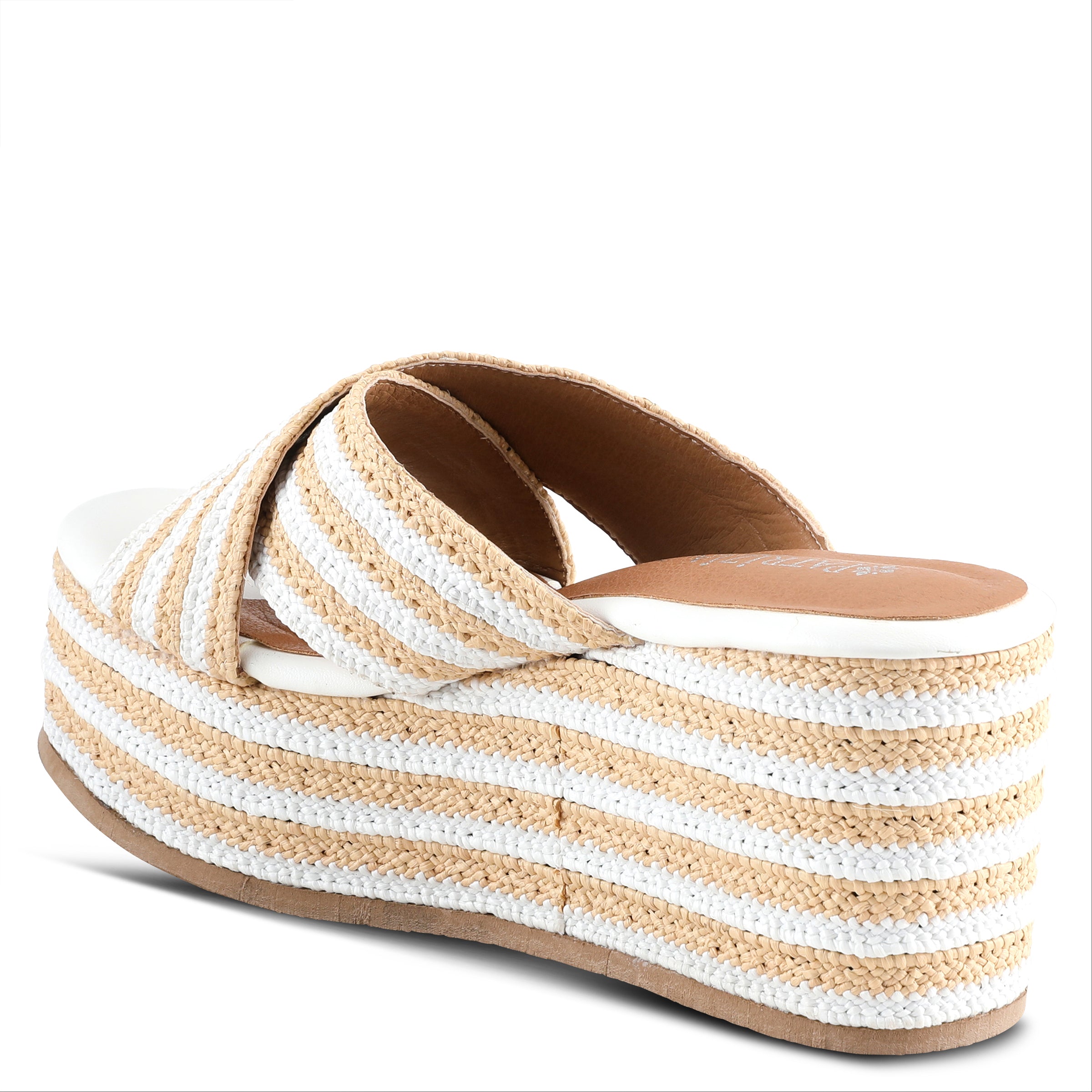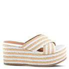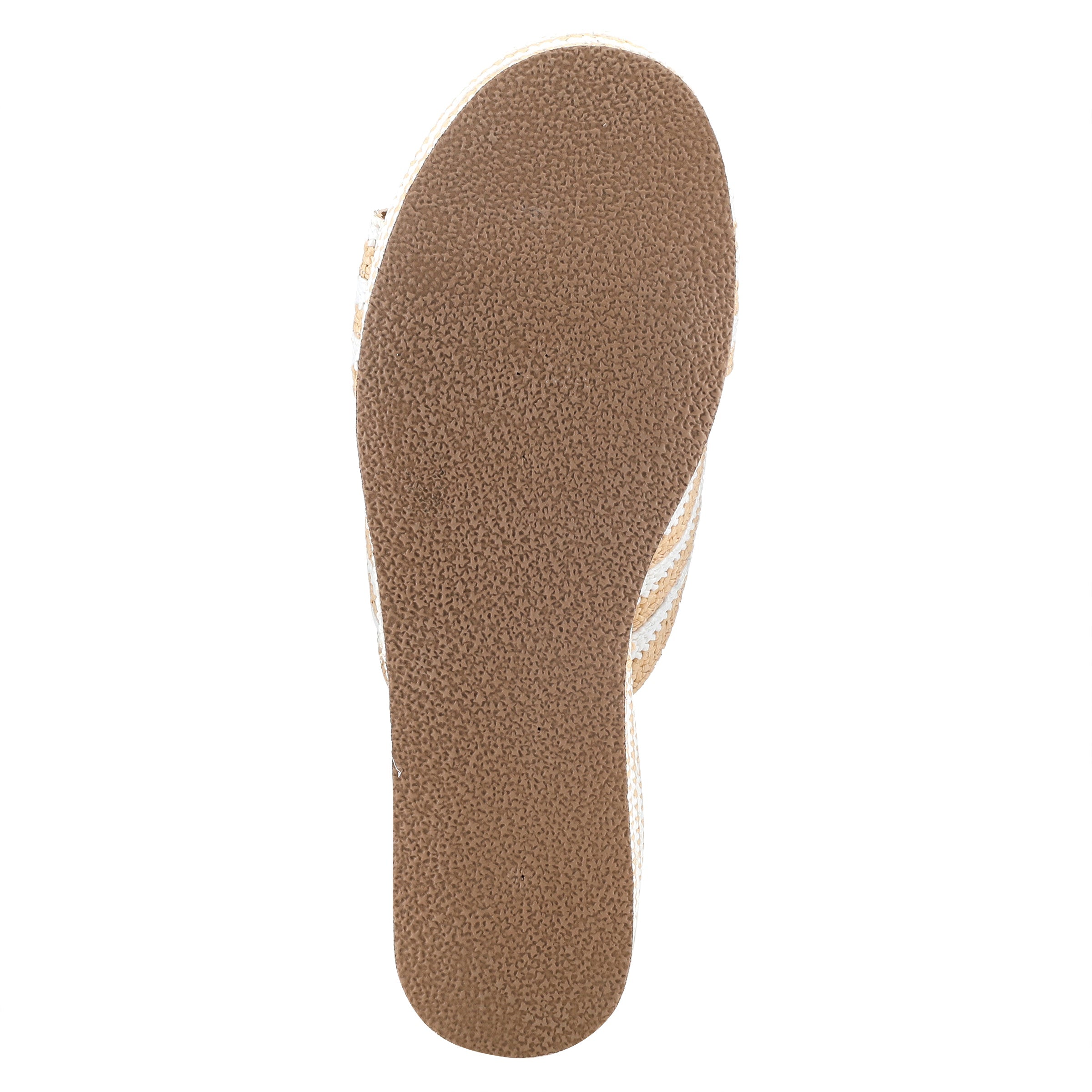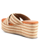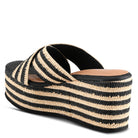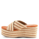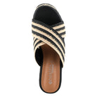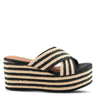 Vístase con esta sandalia de cuña inspirada en la rafia de dos tonos que presenta un diseño entrecruzado y una cuña envuelta en el mismo material con una plataforma.