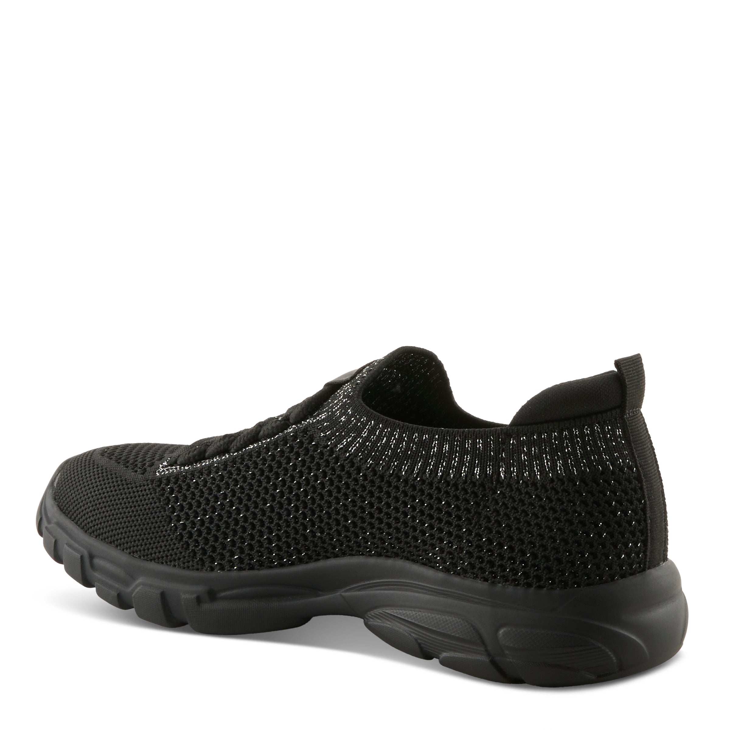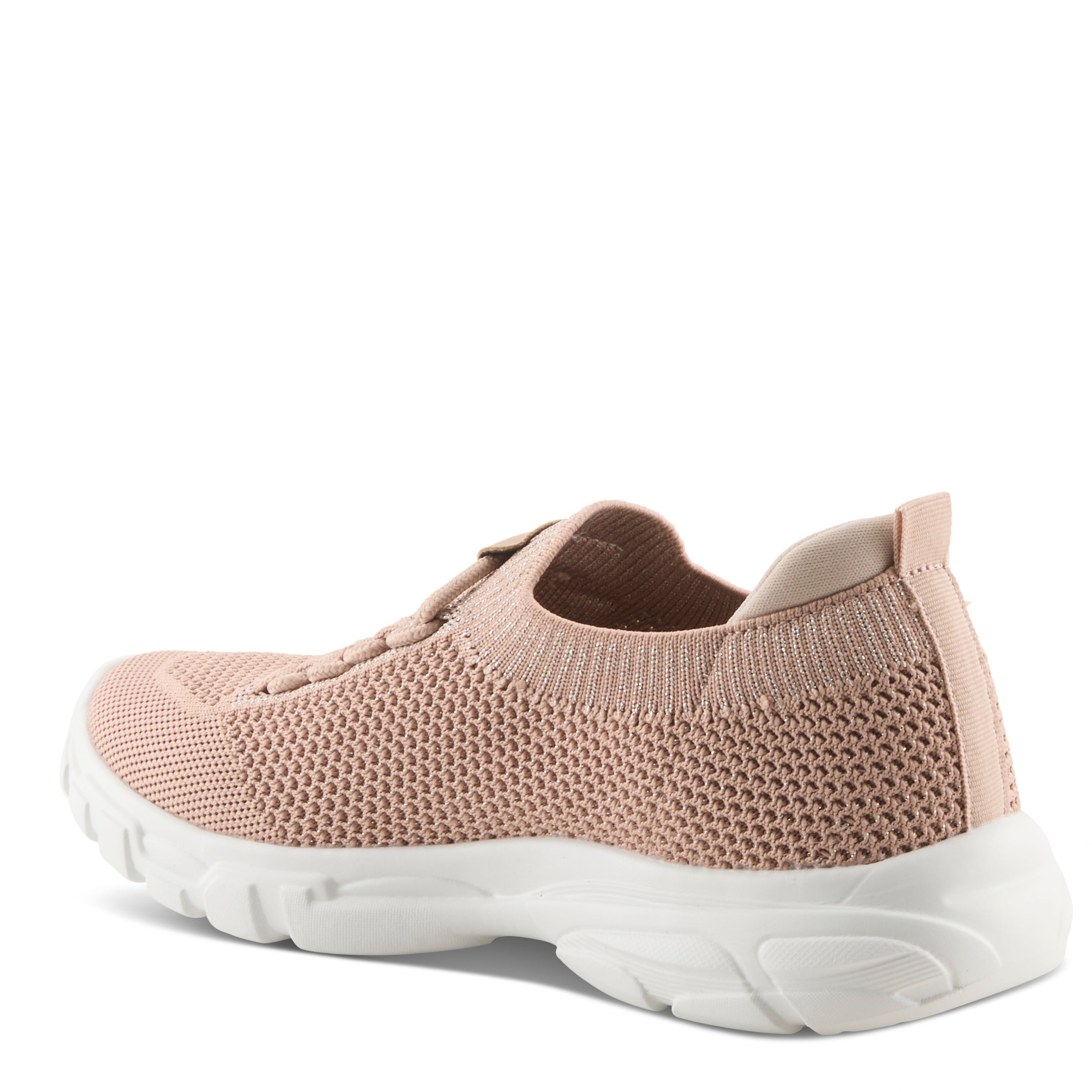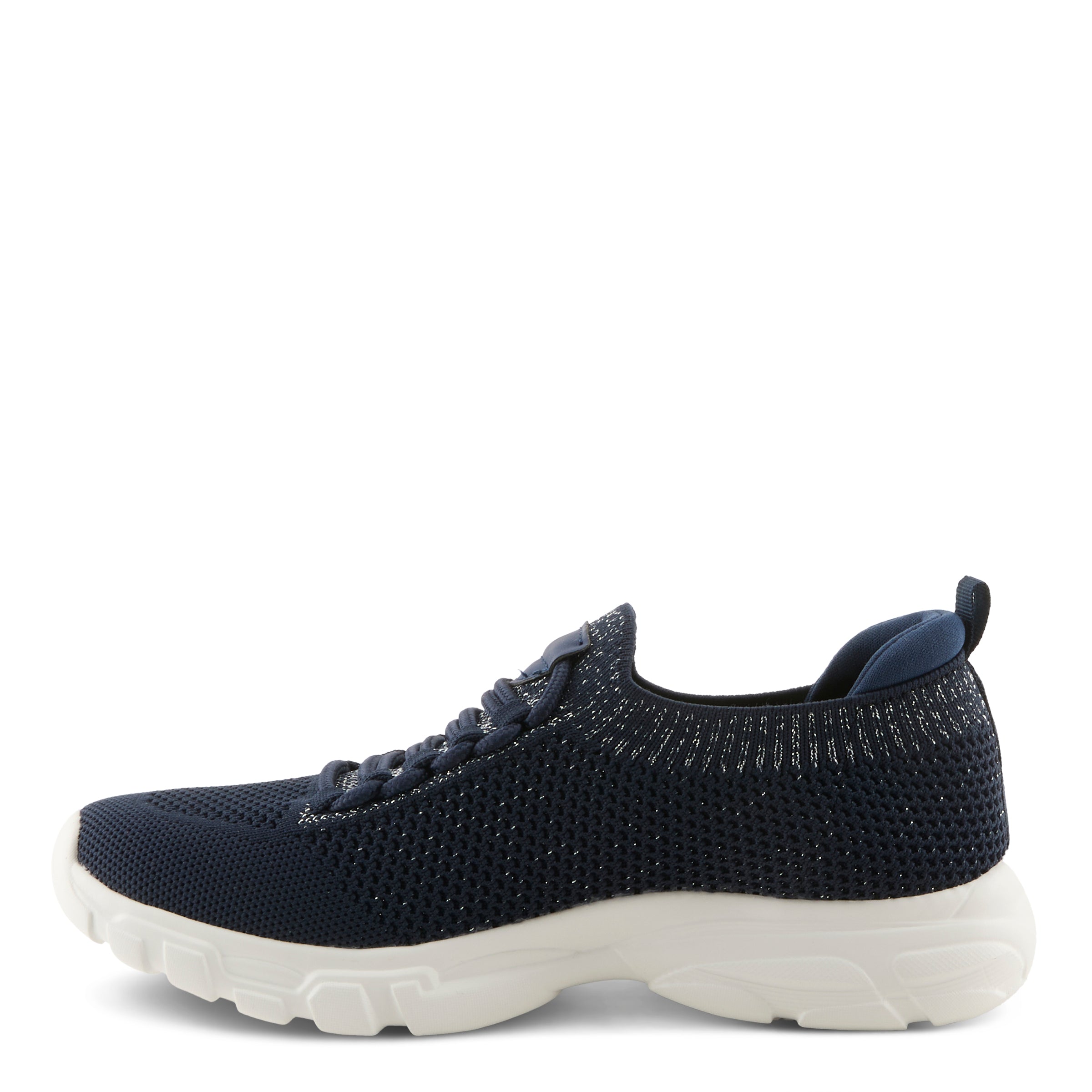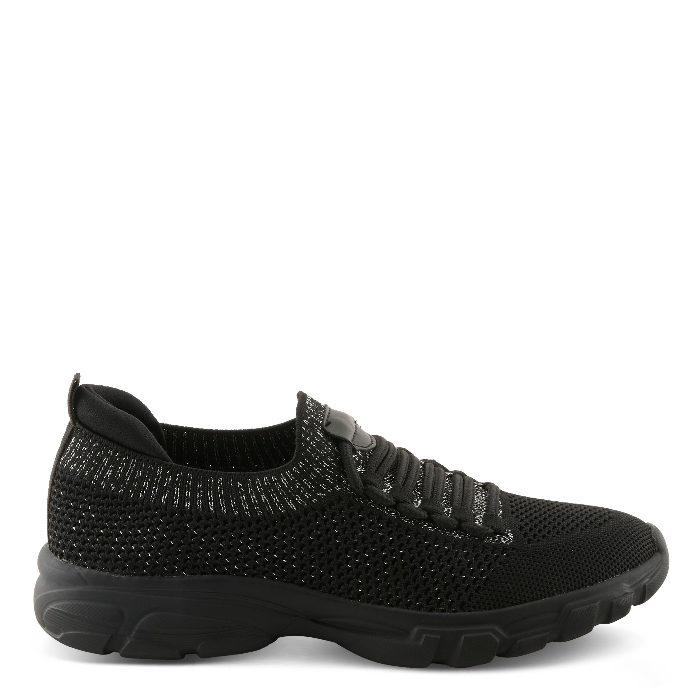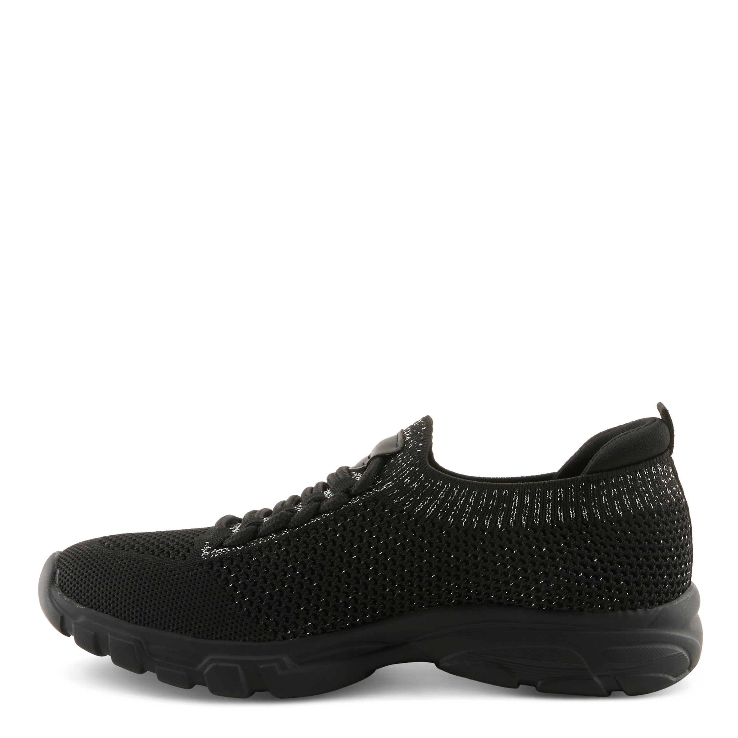 Step into effortless style and everyday comfort with this chic, sporty sneaker. Designed with a stretch-knit upper enhanced by subtle glitter textile accents, this shoe delivers a cool, modern look that’s perfect for both active days and casual outings. The elastic bungee-style laces provide easy slip-on convenience while maintaining a secure fit, and the cushioned removable insole with built-in arch support ensures all-day comfort. Finished with a lightweight, flexible outsole, this sneaker is the ultimate blend of trendy flair and practical comfort.