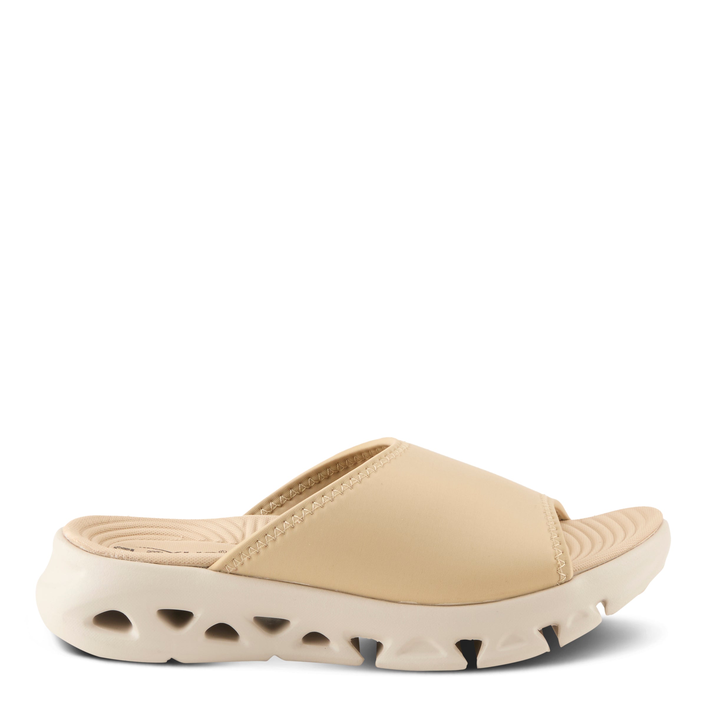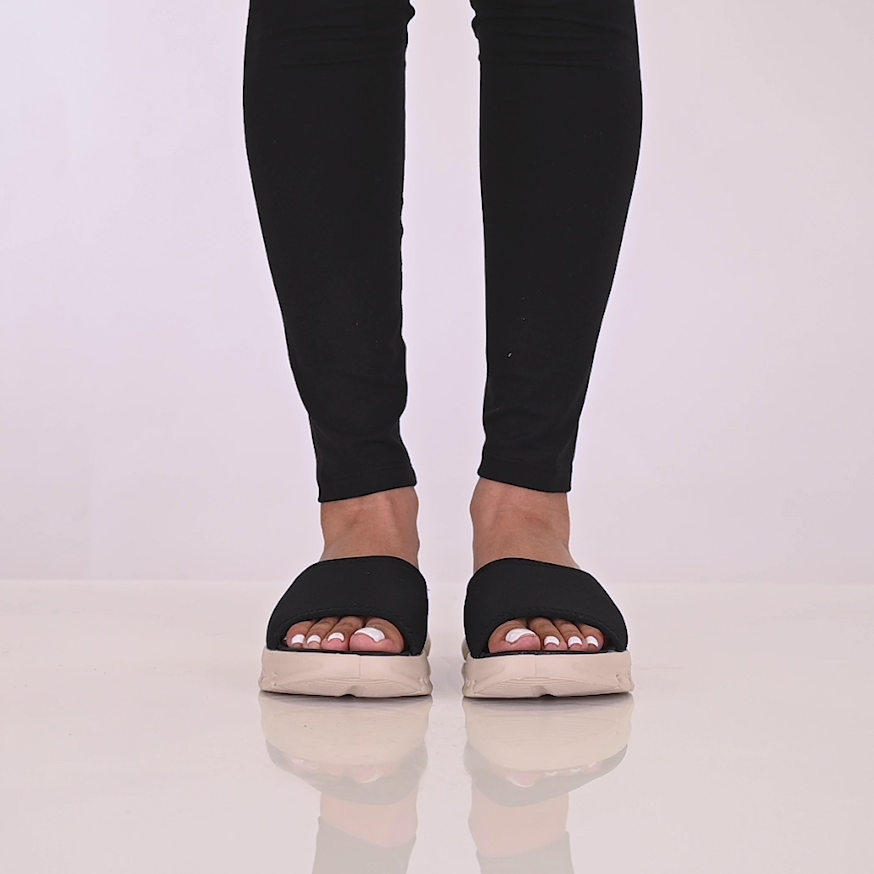 This Lycra slip-on sandal is the perfect blend of effortless style and exceptional comfort. It gently molds to the shape of your foot, offering a custom fit that feels like a second skin. The trendy, sport-inspired outsole adds a dynamic edge, while the cushioned footbed ensures your feet feel secure and supported with every step. Designed for ultimate comfort and a sleek, active look, this sandal lets you move confidently, whether you're on the go or relaxing in style.