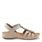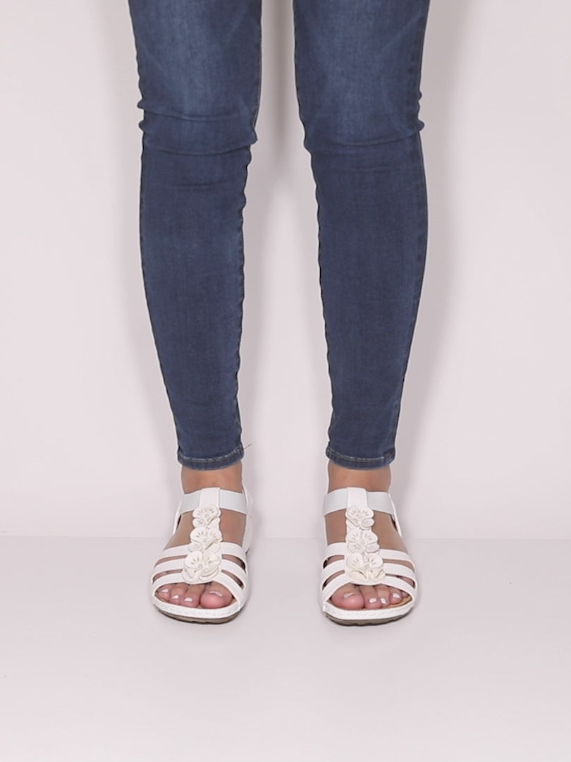 Muévete con flores con esta sandalia de cuero con correa en T de inspiración europea. La correa elástica, la plantilla acolchada de cuero y la suela exterior flexible antichoque brindan la máxima elasticidad y comodidad para proteger sus pies. La variedad de recortes con láser y apliques florales agrega la feminidad lúdica.