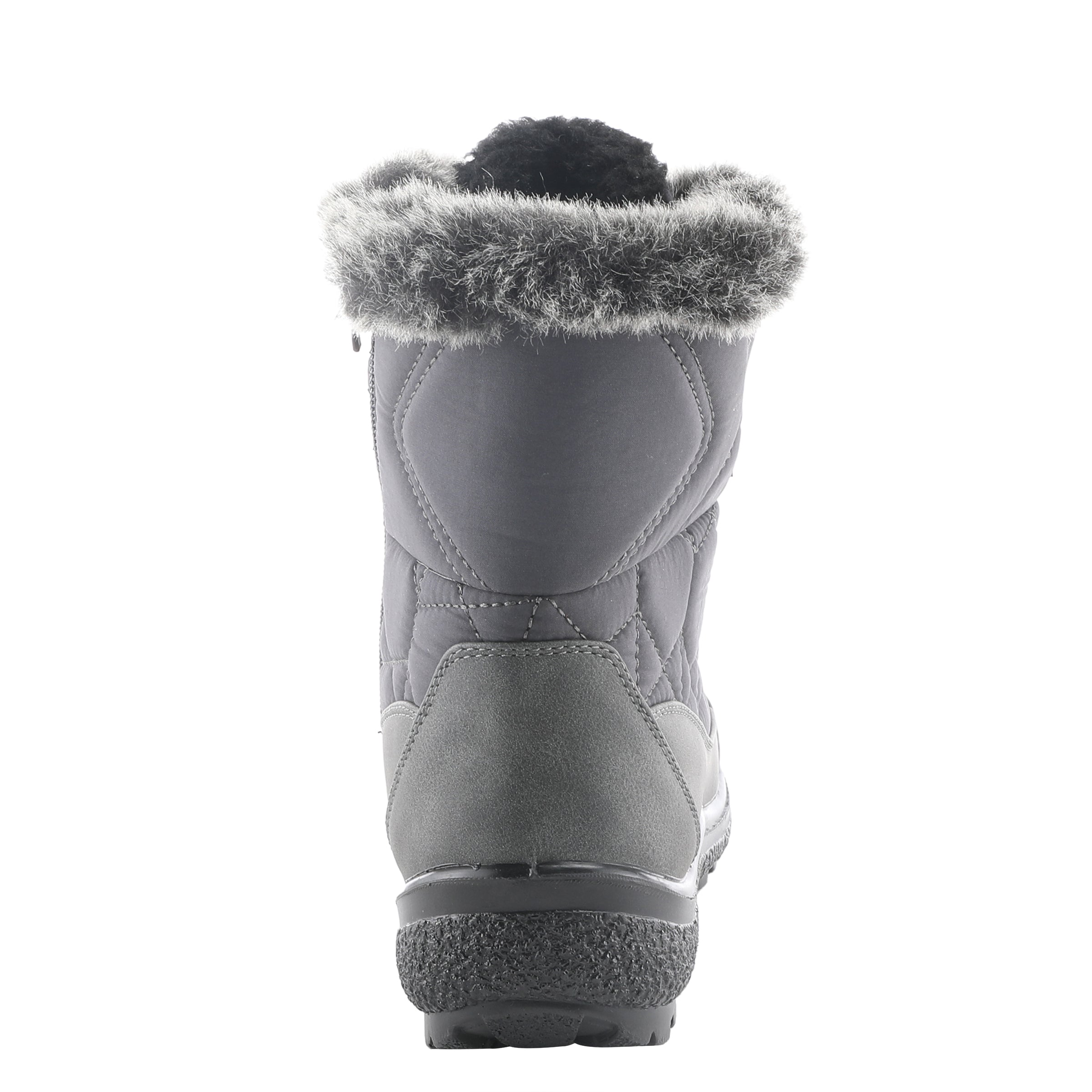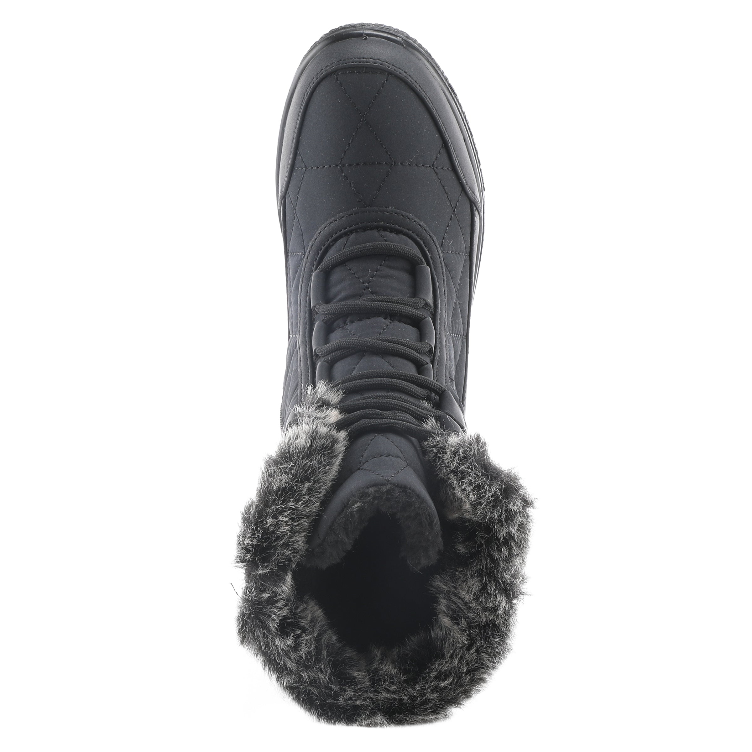 Trate a sus pies con calidez y comodidad con un estilo de excursionista femenino y ligero. Bota impermeable acolchada con cuello ribeteado en pelo sintético.