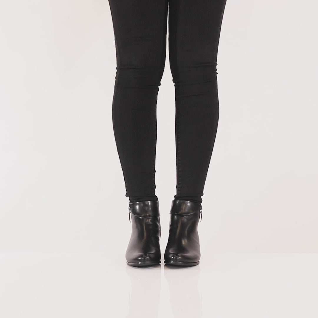 Botín tipo pull-on de piel pulida con detalle de puño plegable y cremallera metálica.