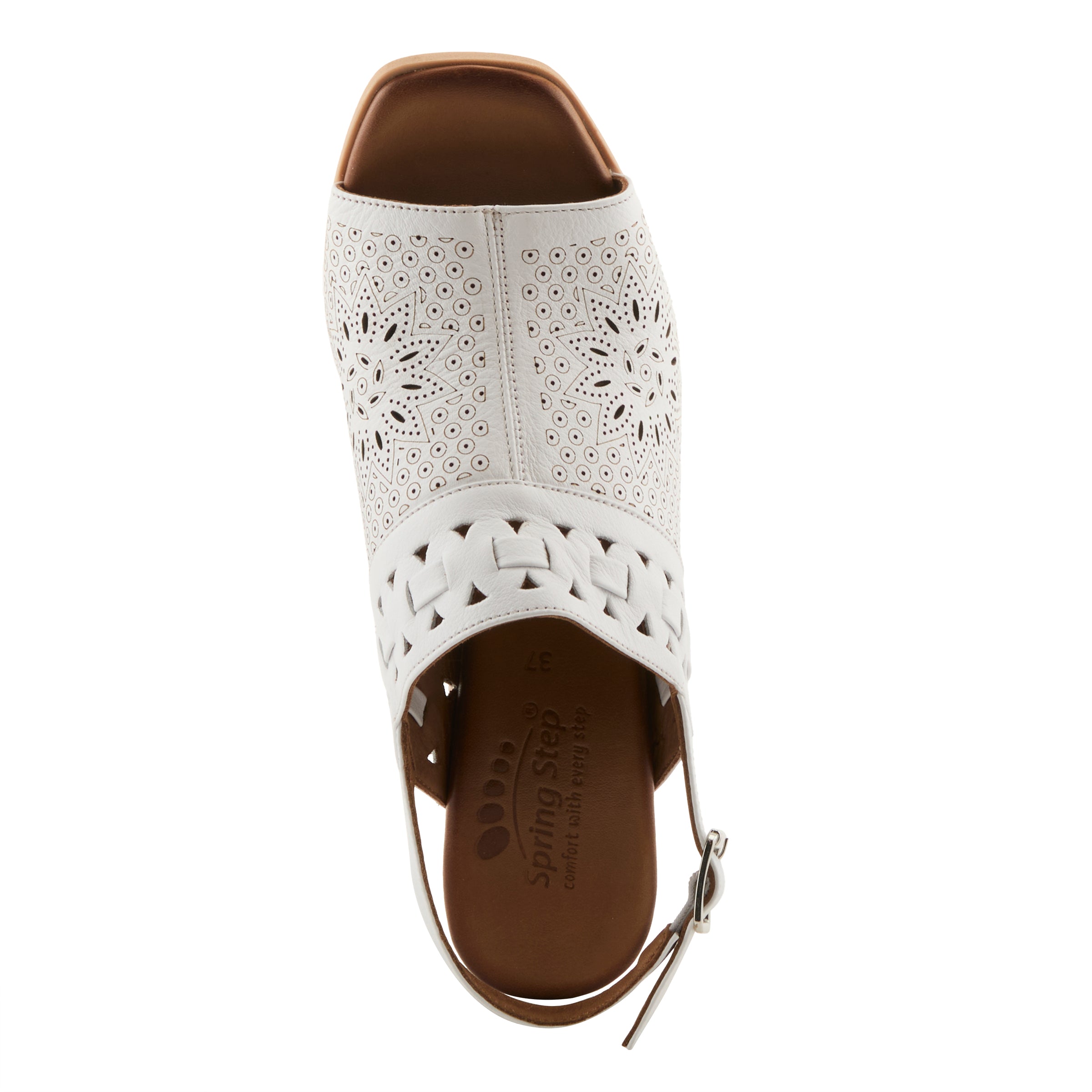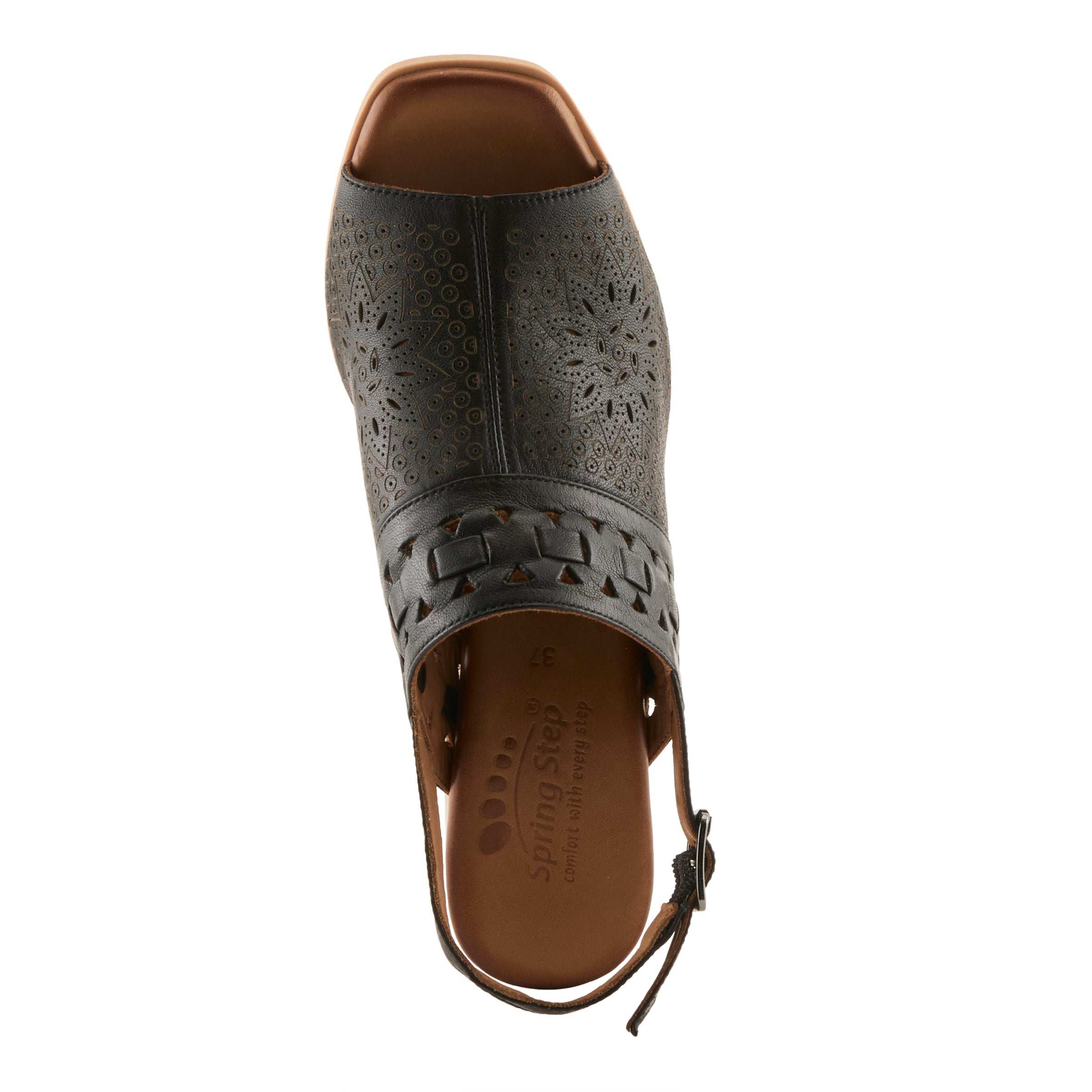 A chic update to the everyday sandal, this design fuses contemporary laser artistry with structured comfort. The bold cutout pattern radiates across the leather upper like modern geometric lace, accented by a woven leather strap detail that adds subtle texture. Finished with a squared toe shape, this sandal brings architectural balance to its faux-stacked block heel, delivering the perfect blend of height and walkable stability. Effortless with cropped denim, tailored jumpsuits, or flowy culottes, this versatile sandal is a modern wardrobe essential that carries you confidently from daytime chic to after-hours polish.