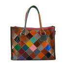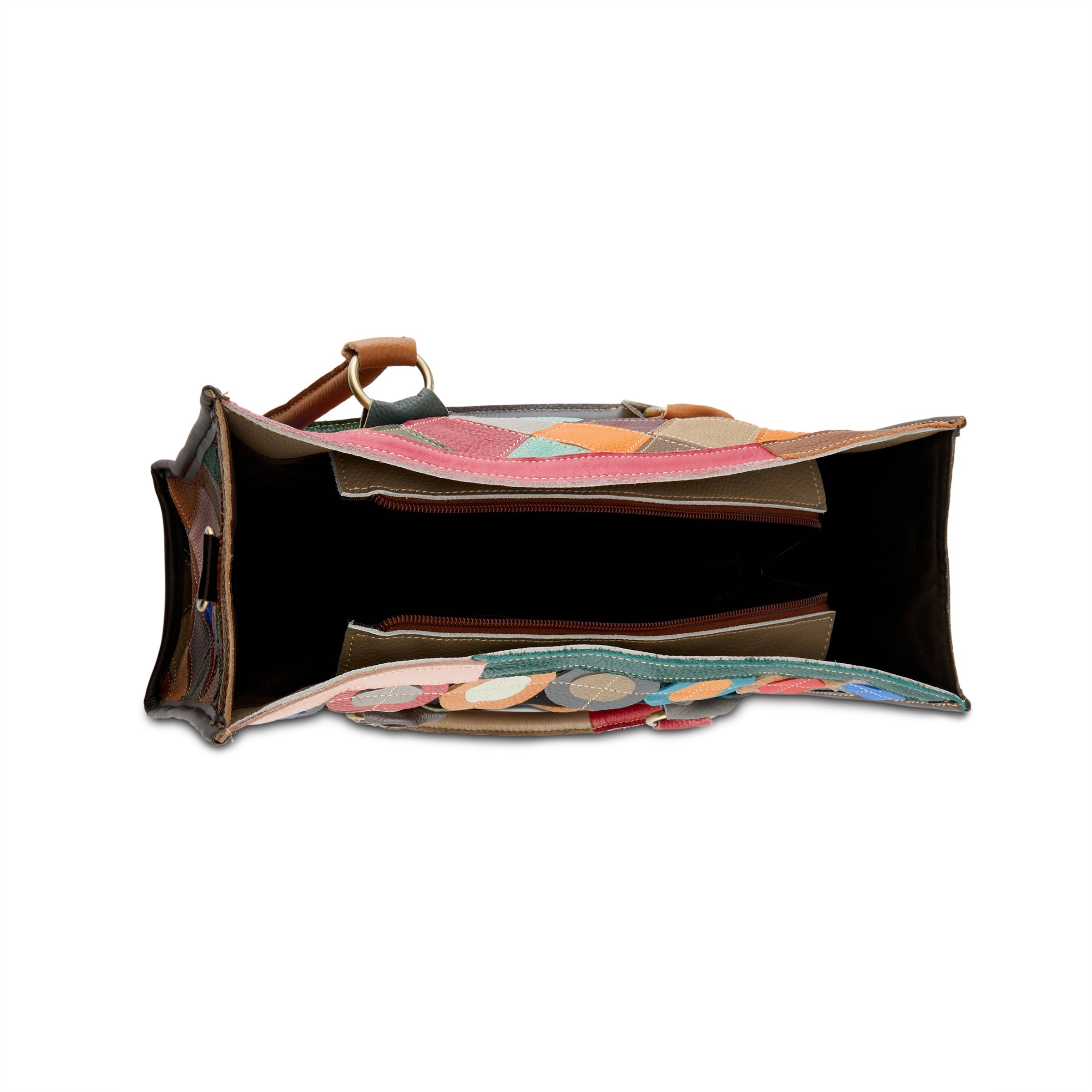 Duplica tus opciones de uso con nuestro exclusivo bolso de mano de piel granulada de grano completo reversible de adelante hacia atrás y fabuloso, si se nos permite decirlo, Tote Carryall. Un lado cuenta con diamantes recortados de varios colores y el otro, círculos contrastantes con doble recorte cosidos a una base de lona de algodón negra. De cualquier forma que lo uses, este espacioso bolso de mano seguramente te brindará funcionalidad y alegría, al tiempo que se convierte en tu bolso esencial favorito no solo para el uso práctico del día a día, sino también para viajes y ocasiones especiales en las que necesitas "solo algunas cosas más". Este bolso de mano con un solo compartimento superior con cremallera, que cuenta con compartimentos con cremallera y bolsillos tipo bolsa con paredes opuestas, tiene la cantidad justa de espacio para incluir una computadora portátil pequeña, un par de zapatos extra y seguramente será tu bolso de viaje favorito de todos los tiempos. Asas de cuero redondas para un agarre cómodo o para llevarlo al hombro cerca del cuerpo, acompañadas de una correa combinada de lona de cuero ajustable extraíble para el hombro o cruzada para facilitar el uso con las manos libres.
