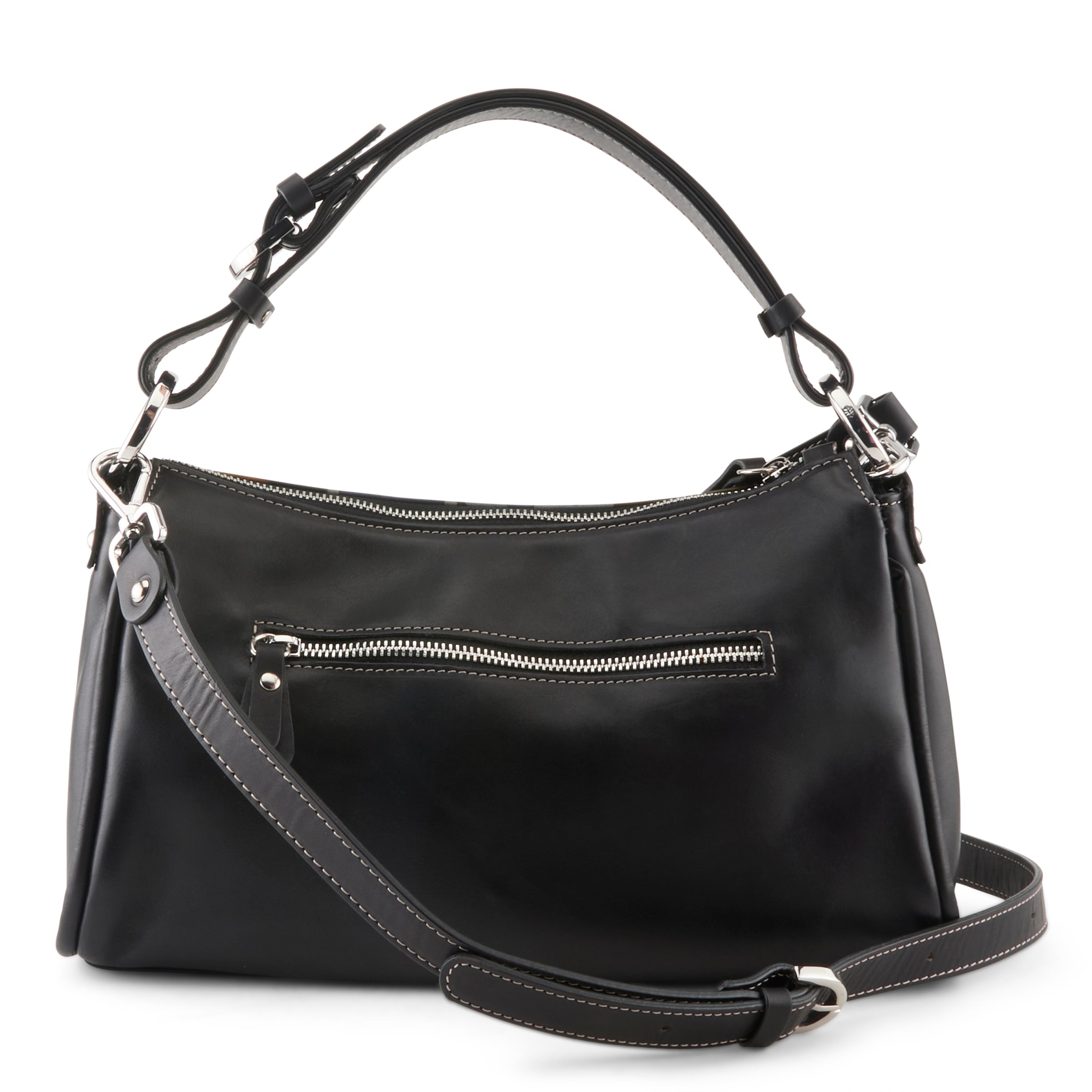 Llévala cerca del cuerpo con una doble capa de correa ancha de cuero extraíble y estilizada, o con las manos libres como bandolera ajustable con hebilla extraíble y herrajes giratorios de alto brillo. Bolsa de almacenamiento de algodón.