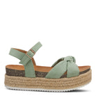 Descripción del estilo: Plantilla plana súper fresca envuelta en yute con plantilla de microgamuza acolchada y contorneada y correa superior anudada de microgamuza suave y aterciopelada con correa ajustable en el cuarto trasero.