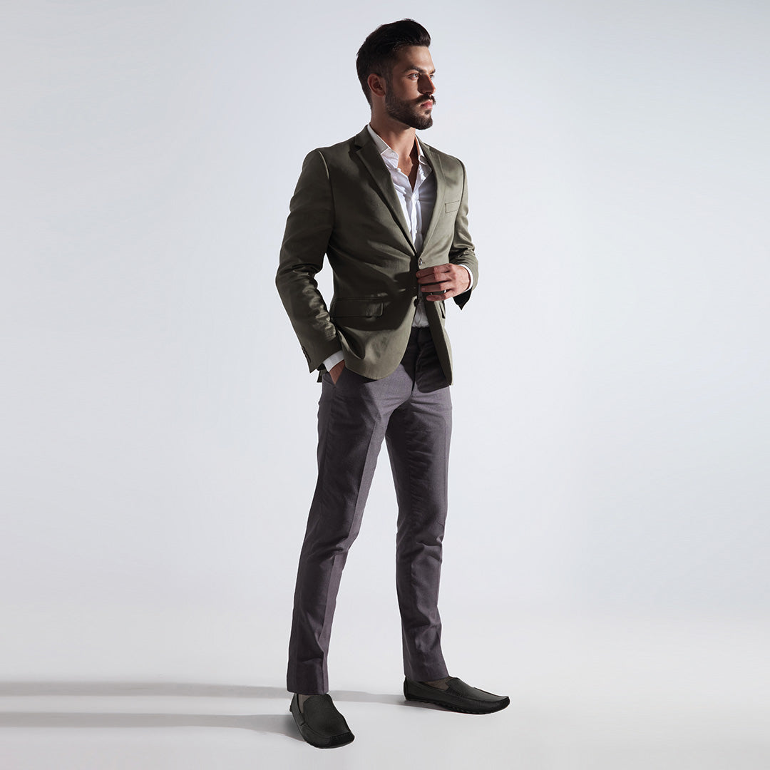Clásicos zapatos sin cordones con piel granulada afilada y dos cornisas elásticas en una suela exterior cómoda inspirada en los conductores.
