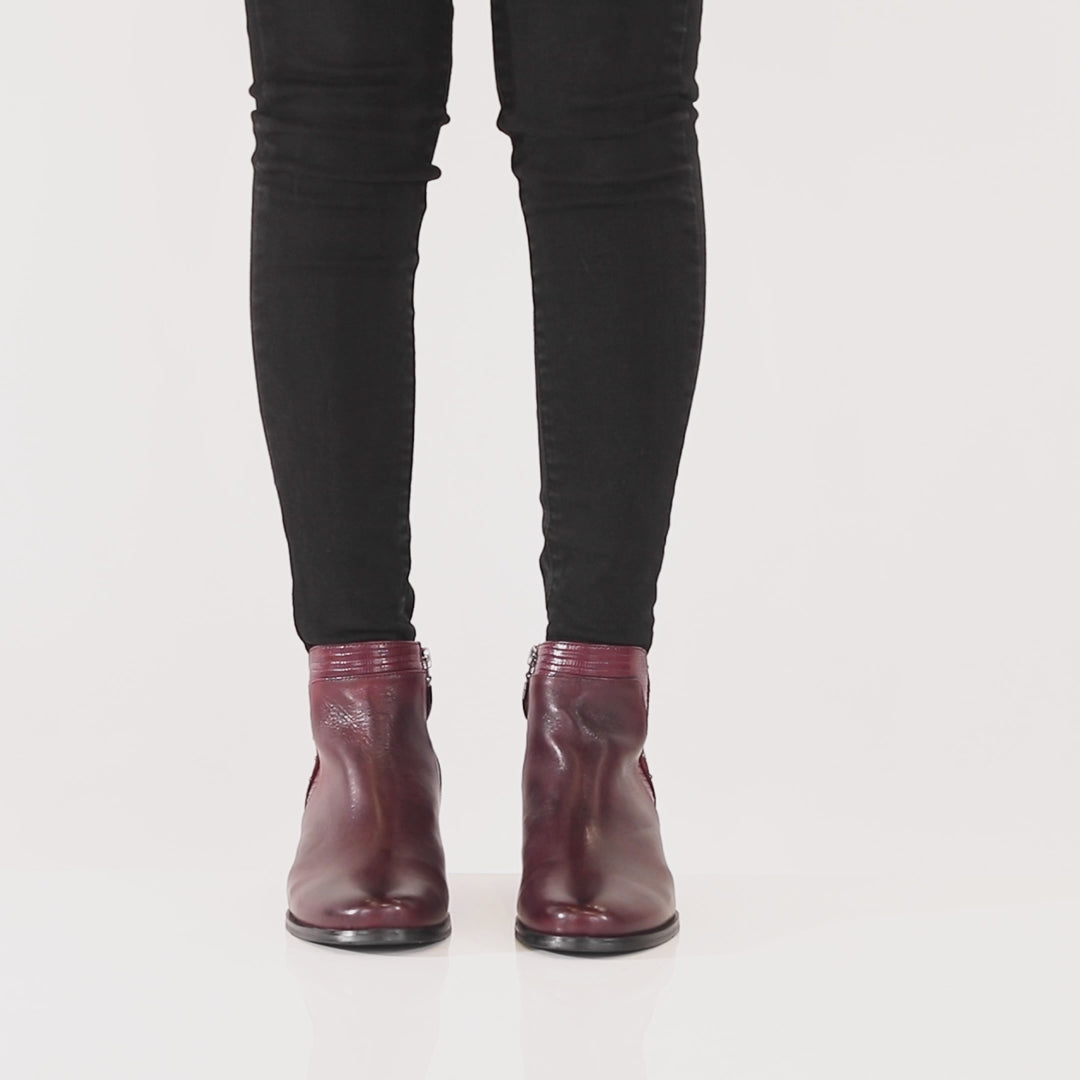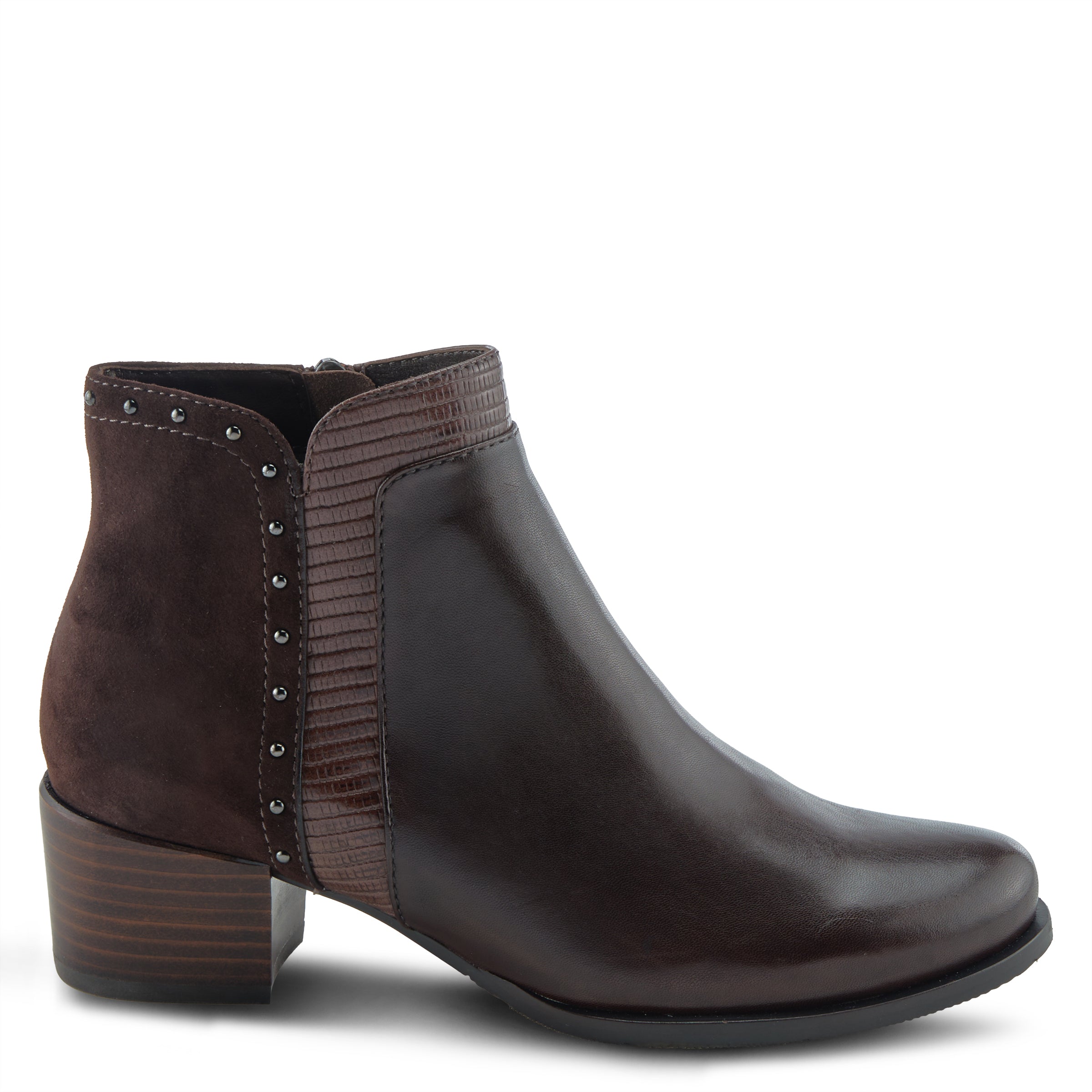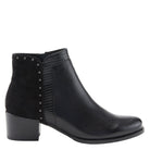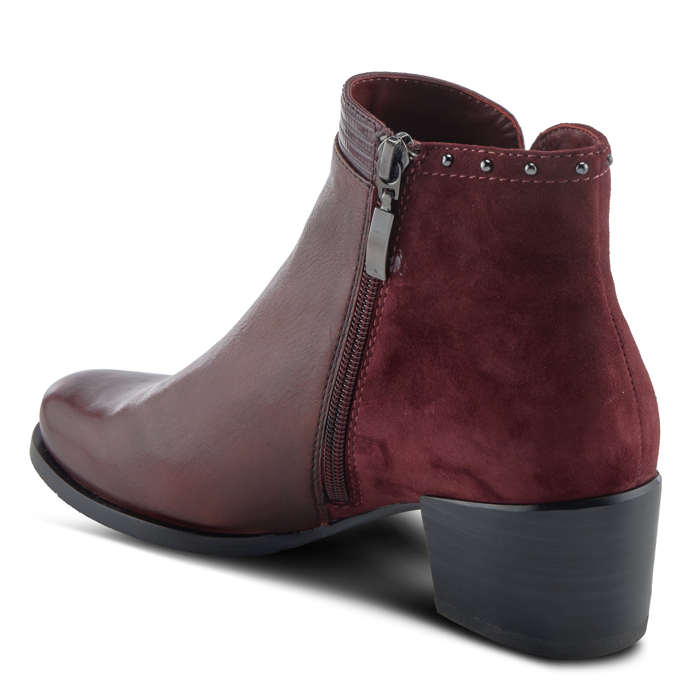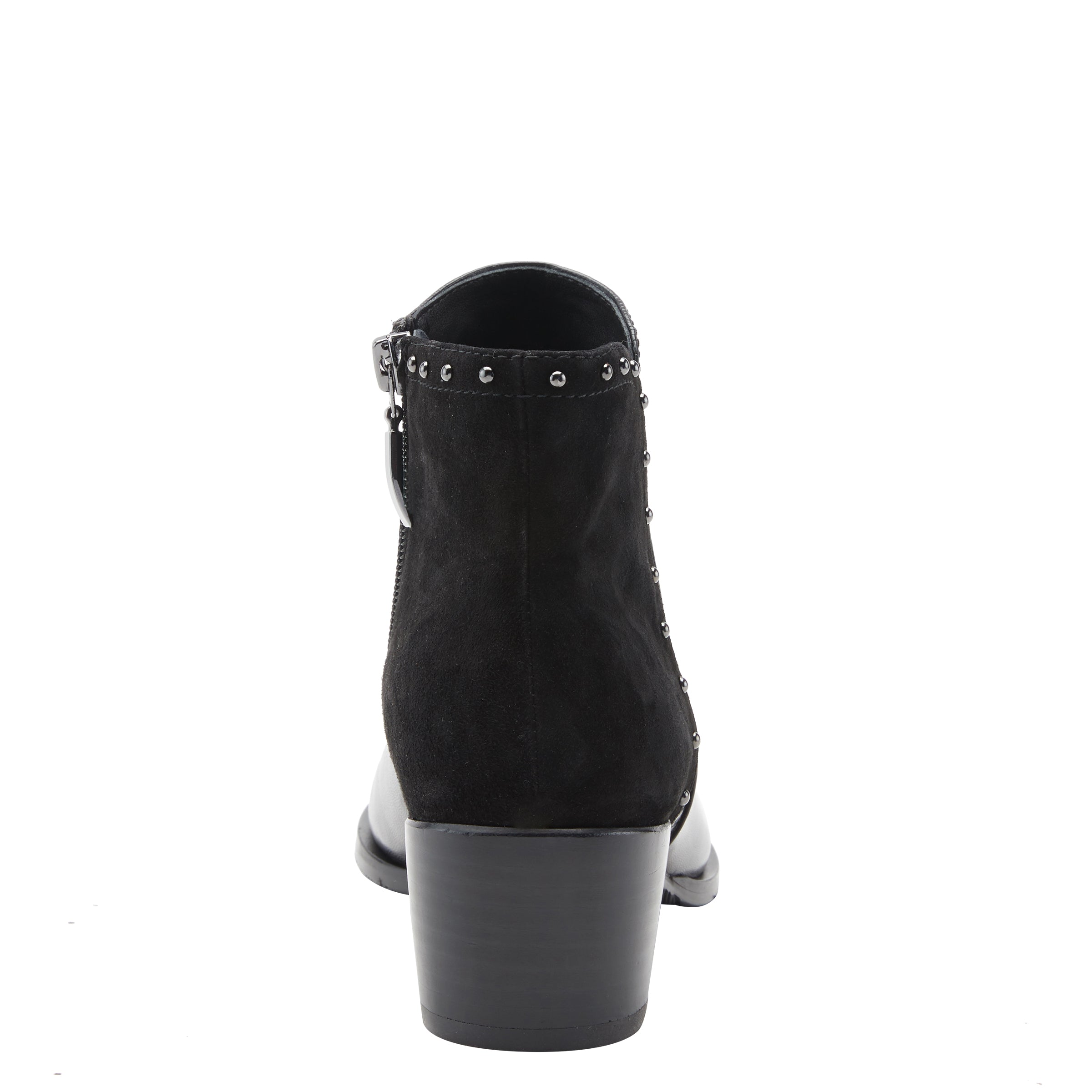 Luce pulido y perfecto con nuestro botín de ante y cuero de primera calidad con un moderno tacón en bloque y delicados detalles de tachuelas.