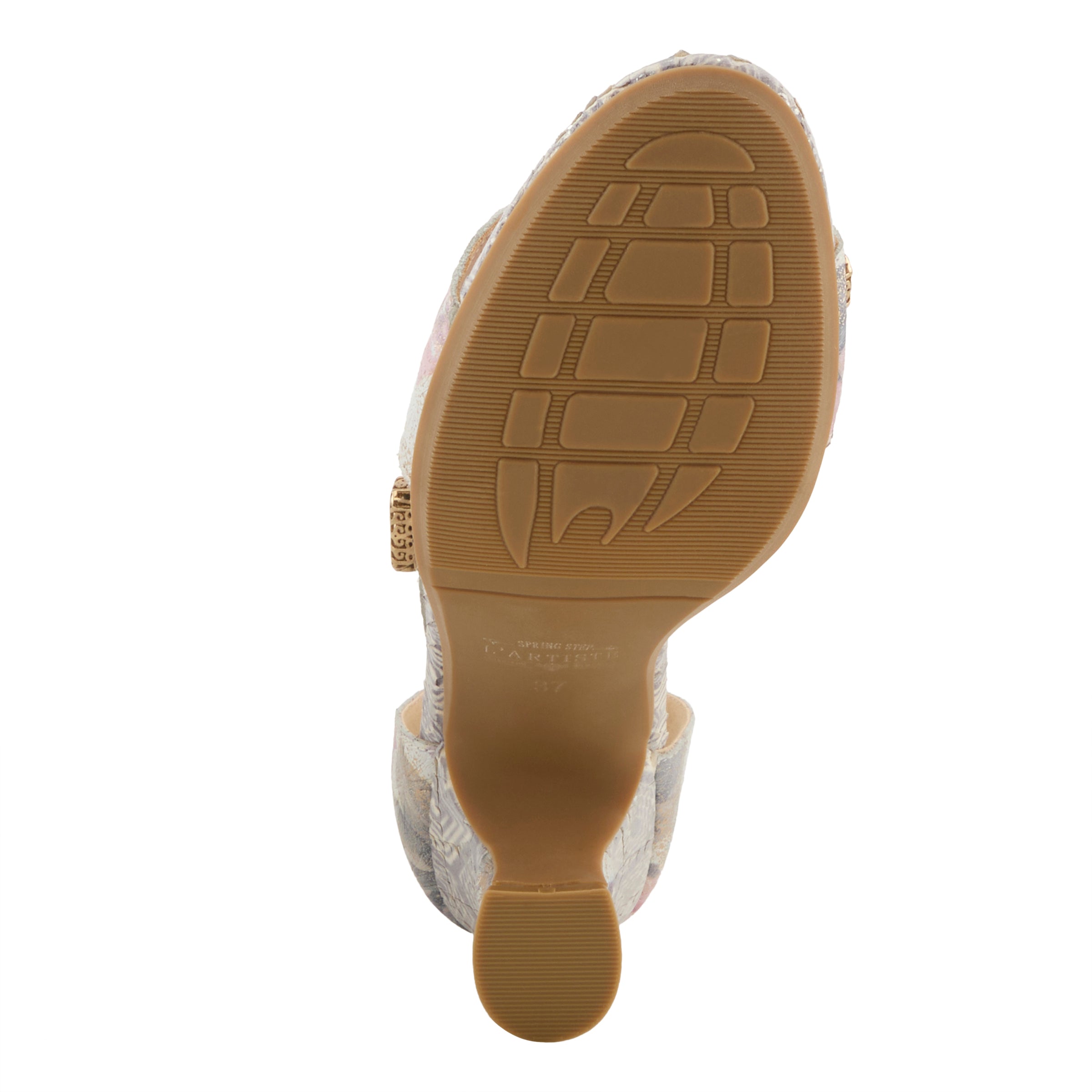 - Hook-and-loop ankle strap closure for easy on/off on a salsa heel for all day comfort