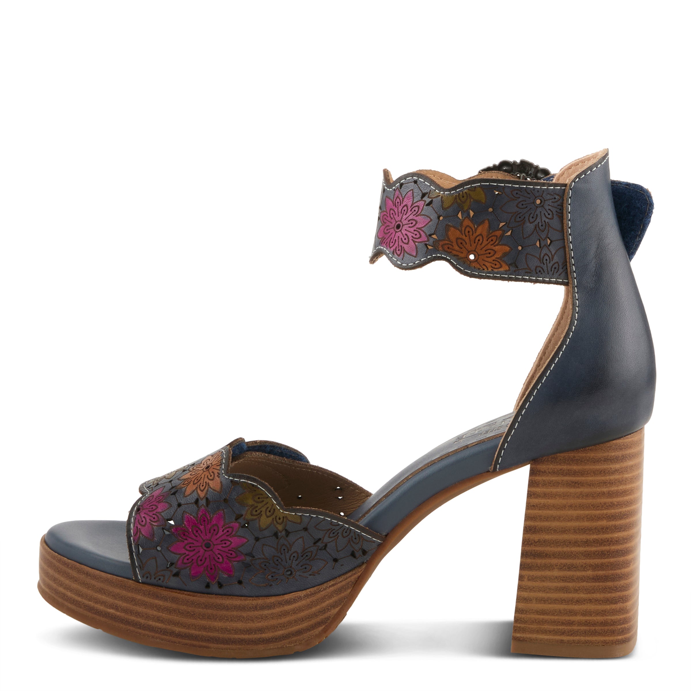 - Unique etching, laser cuts, and hand-painted petals on the toe and ankle straps
