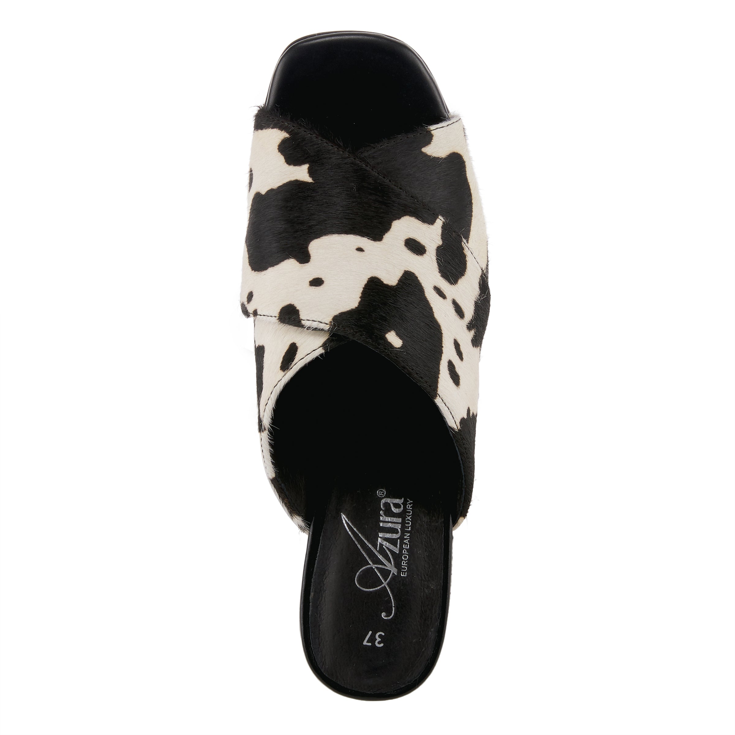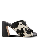Opulentas y lujosas sandalias de tiras cruzadas de piel con pelo de primera calidad con influencia europea que presentan un diseño clásico y sofisticado de leopardo o bovino, y delicadas costuras tonales, todo en un talón cómodo inspirado en la naturaleza, arquitectónico, grueso y con un antepié flexible.