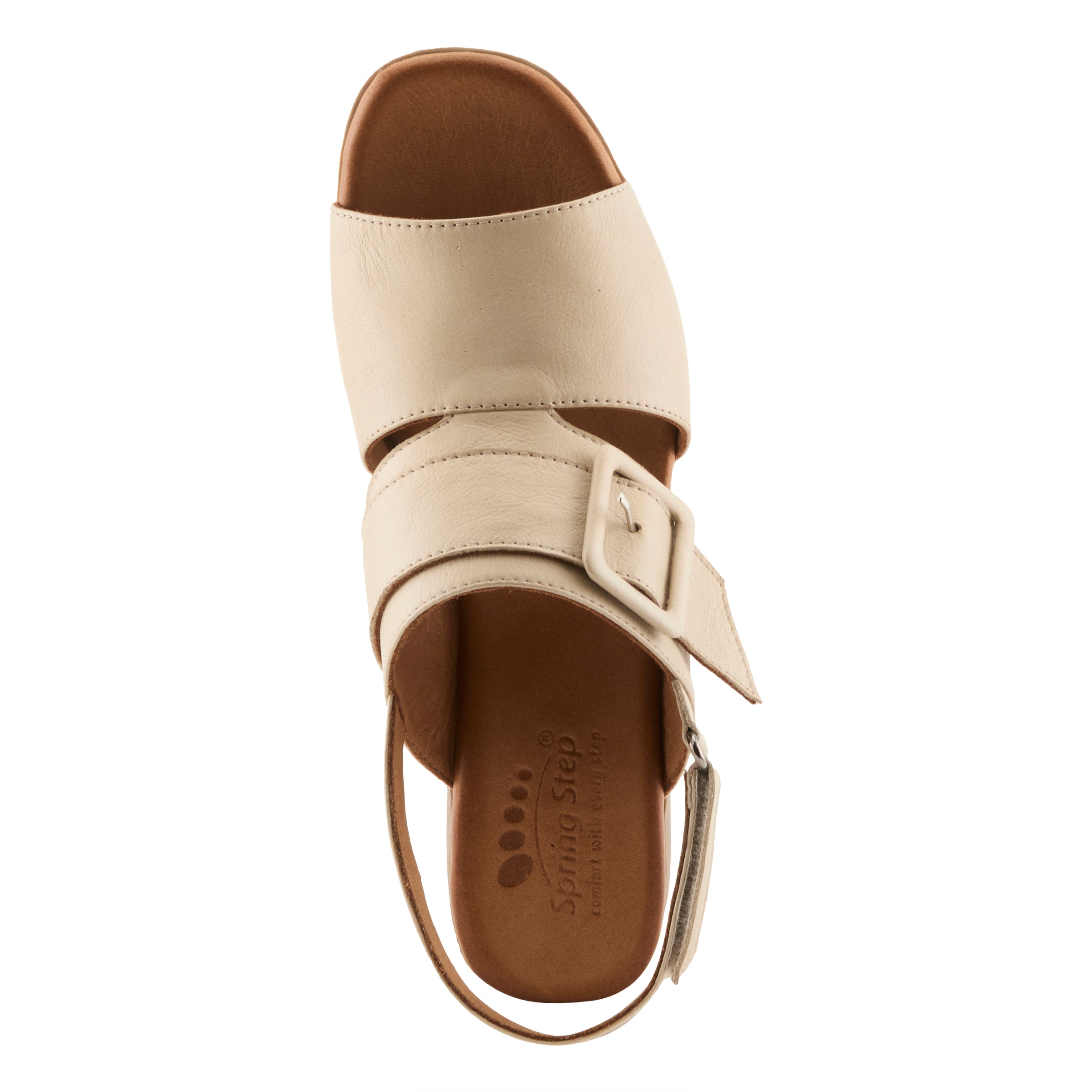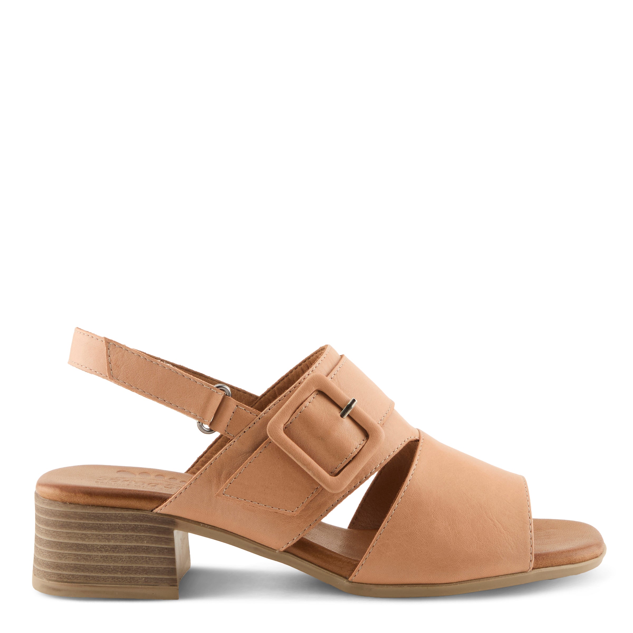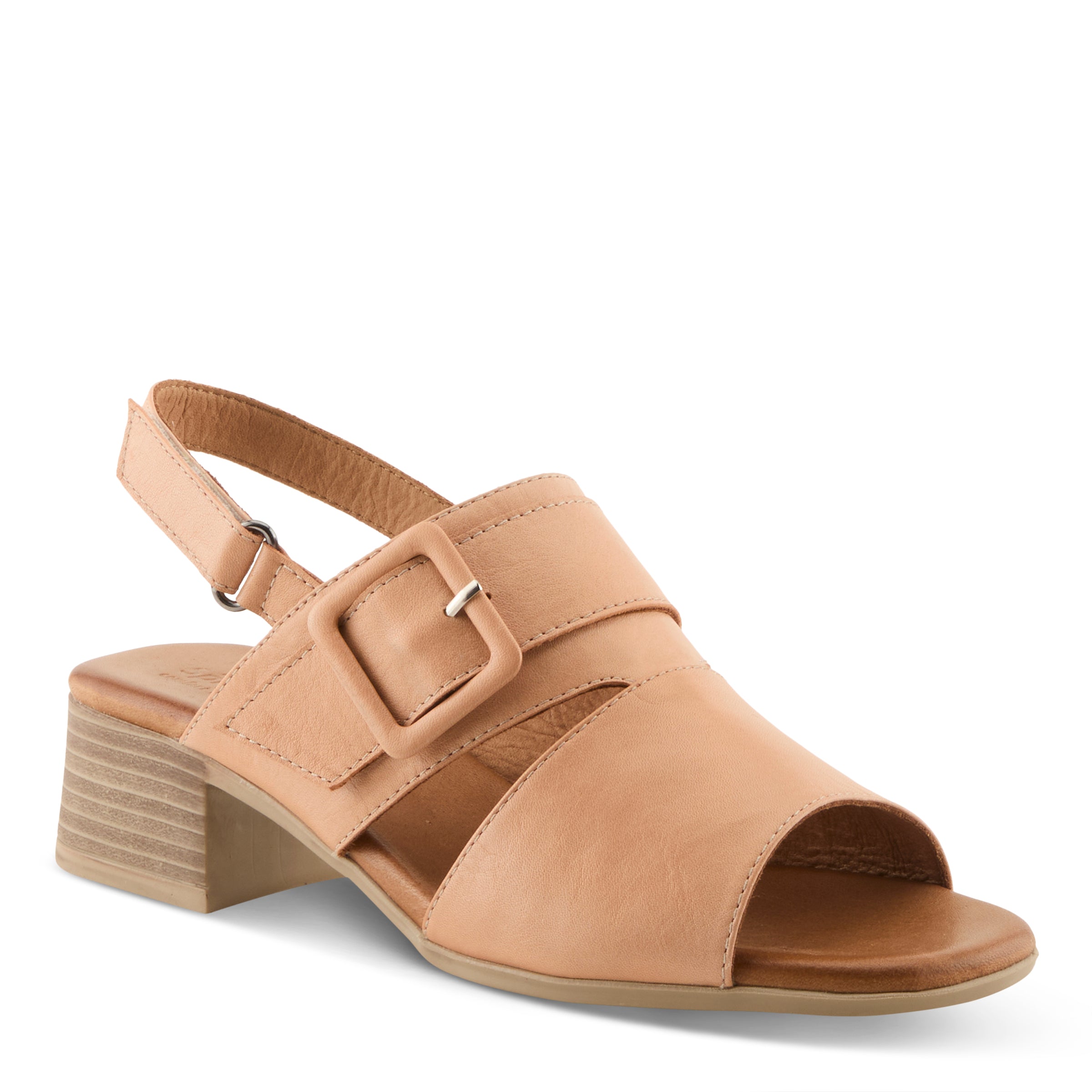 Contemporary and confident, this sandal is designed with clean architectural lines and a bold oversized leather-wrapped buckle that makes a statement without trying too hard. The dual wide bands give structure and support, while the adjustable backstrap with hidden hook-and-loop closure keeps the fit effortless and fuss-free. Balanced on a comfortable stacked-look block heel, this style transitions from desk to dinner with sleek sophistication. Pair with a linen jumpsuit, tailored shorts, or monochrome sets for a fashion-forward city vibe that’s as wearable as it is modern.