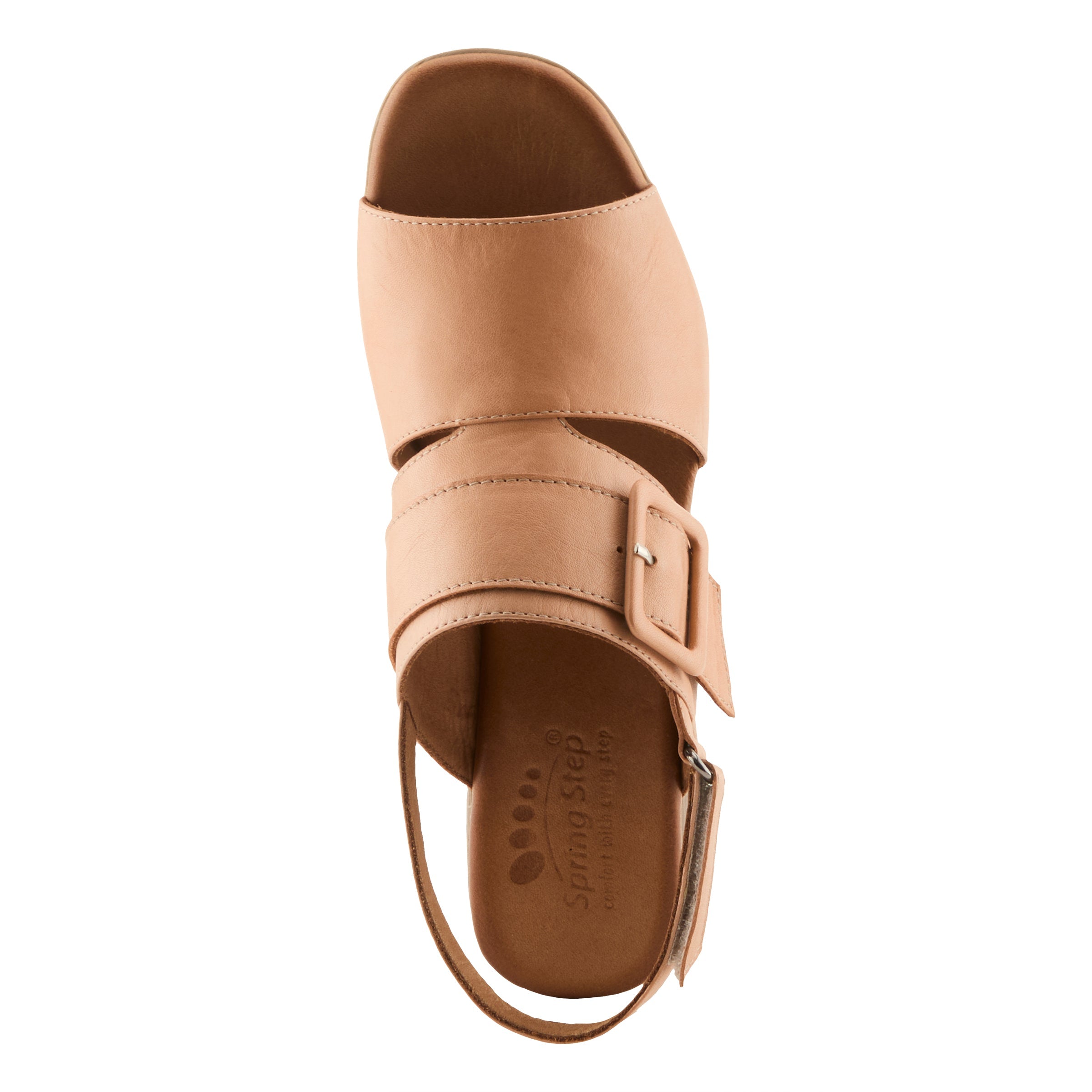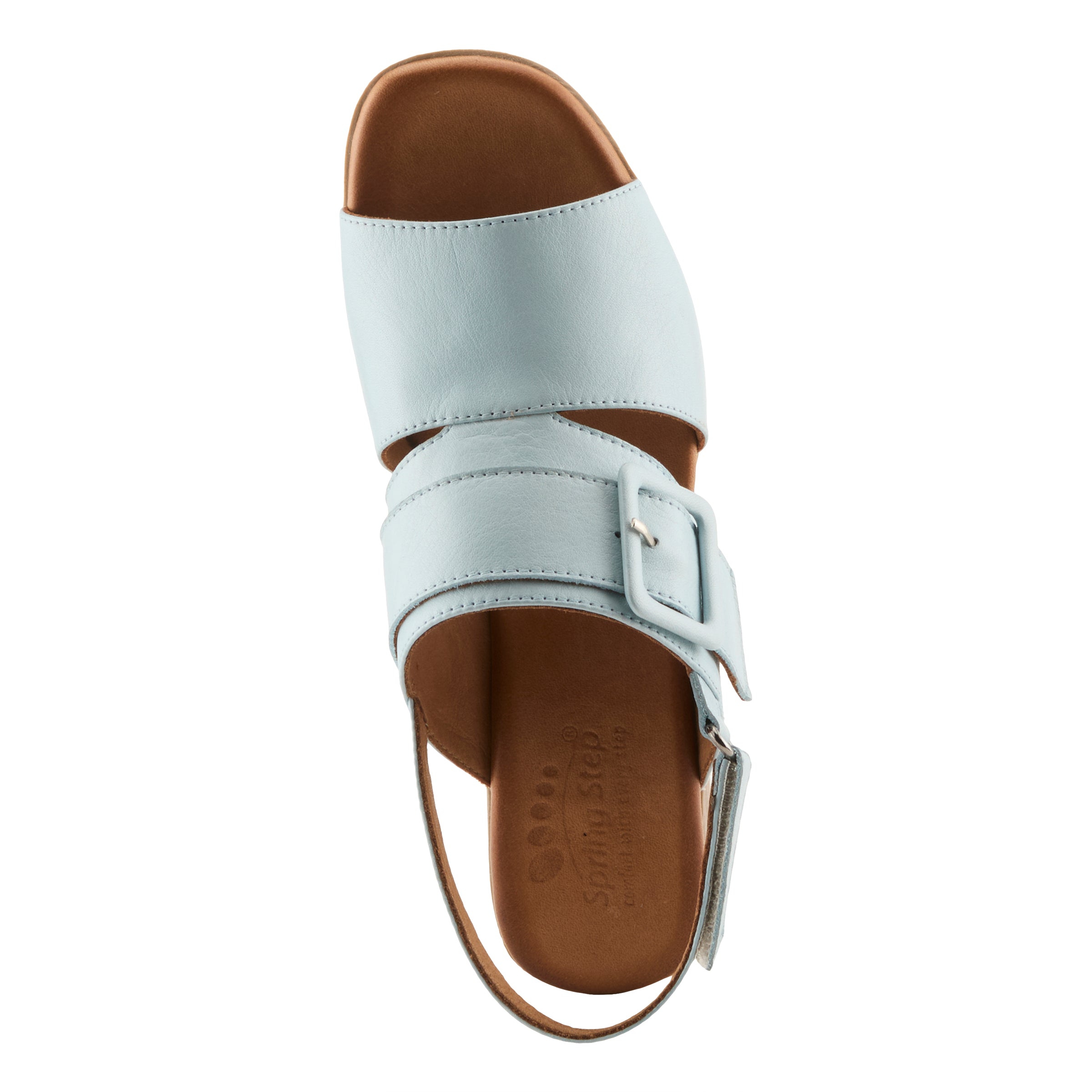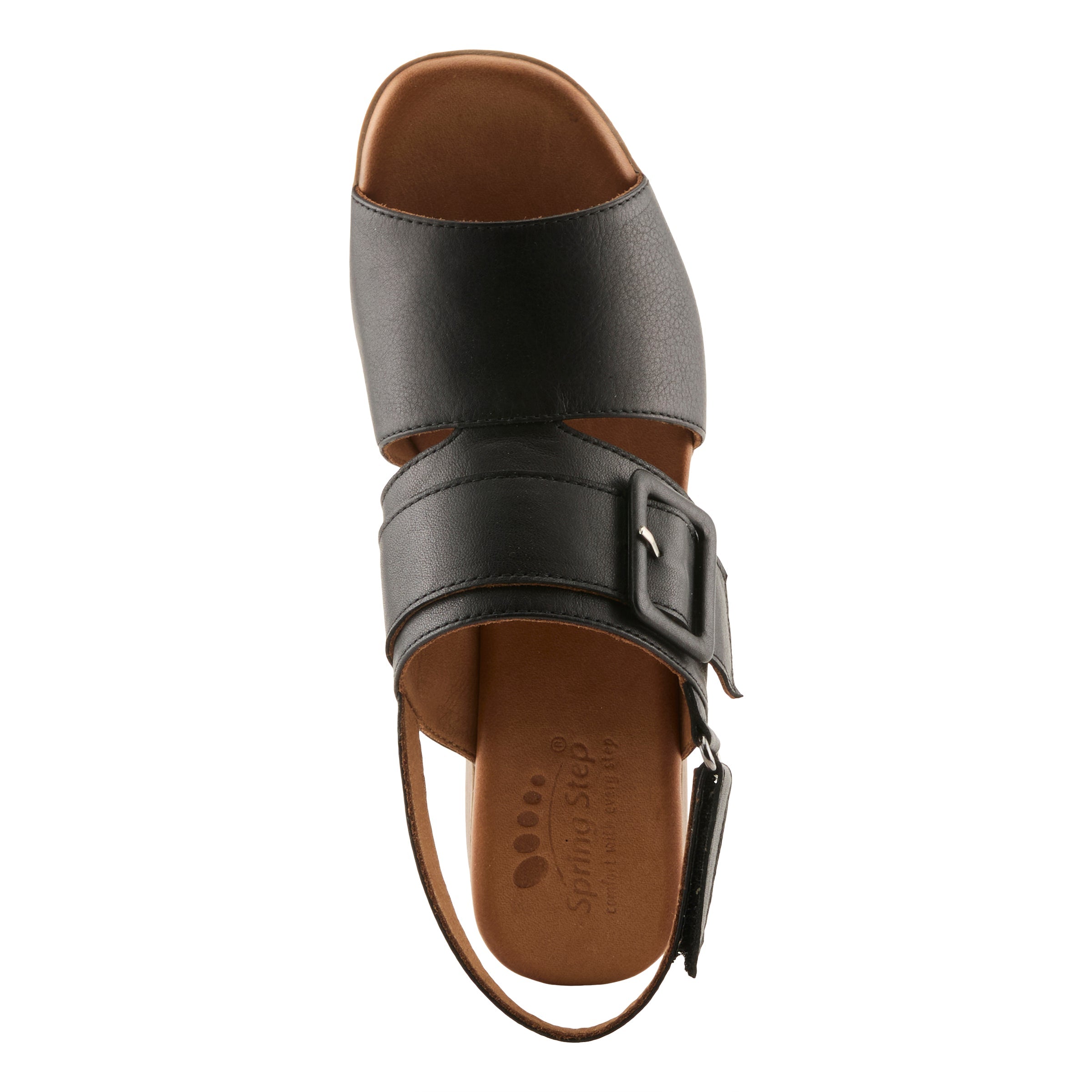 Contemporary and confident, this sandal is designed with clean architectural lines and a bold oversized leather-wrapped buckle that makes a statement without trying too hard. The dual wide bands give structure and support, while the adjustable backstrap with hidden hook-and-loop closure keeps the fit effortless and fuss-free. Balanced on a comfortable stacked-look block heel, this style transitions from desk to dinner with sleek sophistication. Pair with a linen jumpsuit, tailored shorts, or monochrome sets for a fashion-forward city vibe that’s as wearable as it is modern.