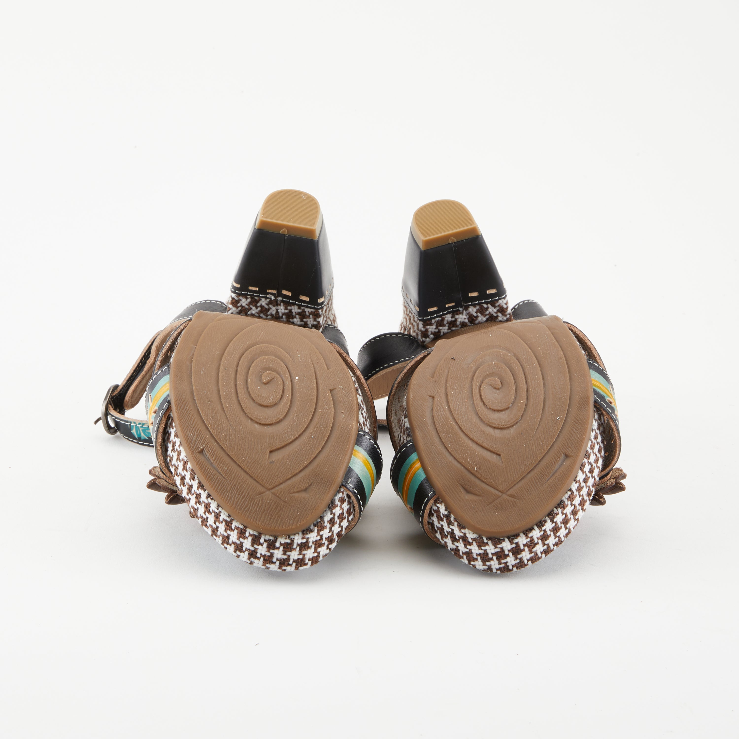 En este zapato, mezclar estampados es lo que hacemos. Este tacón grueso de punta abierta hace que destacar sea muy fácil. Sandalia ligera de cuarto de tira con correa ajustable.