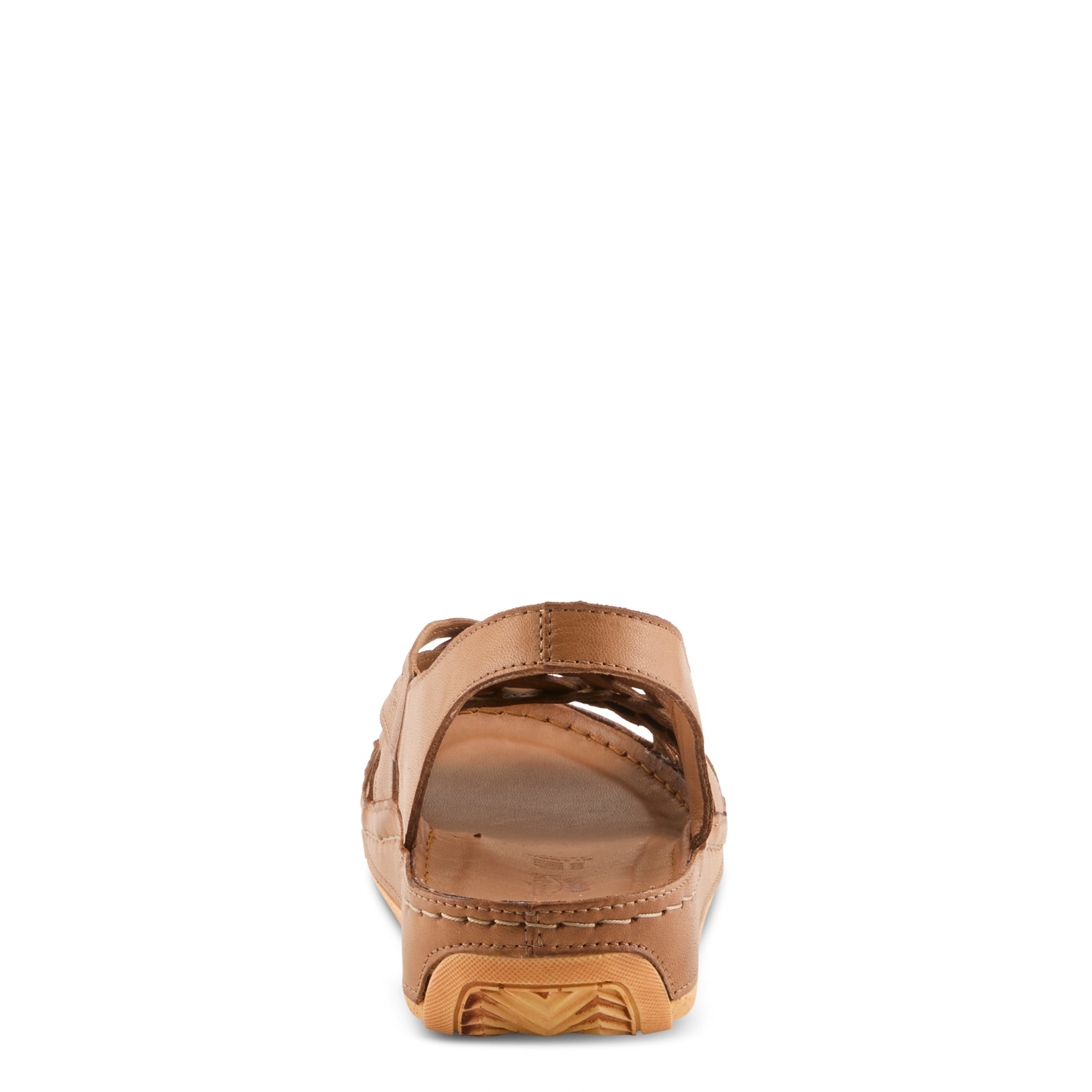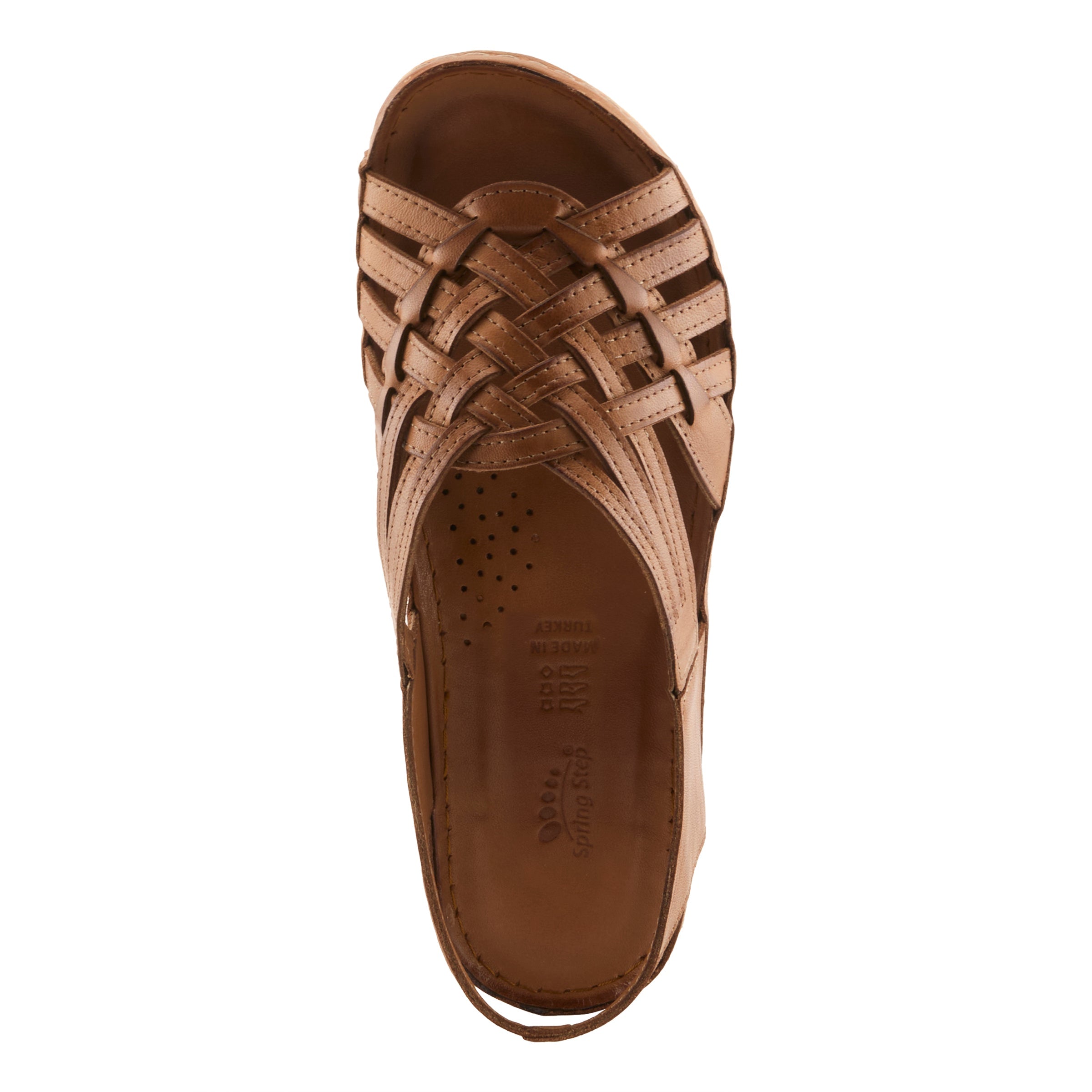 Slip into timeless comfort with this slingback wedge crafted from supple woven leather. The interlaced upper design combines durability and elegance, offering breathable coverage and a secure fit. A softly padded leather insole and smooth leather lining enhance all-day wearability, while the sturdy stitched-to-sole construction ensures lasting strength. Finished with a buckle closure and a touch of stretch on the strap for flexibility, this sandal blends traditional craftsmanship with everyday practicality—perfect for casual outings, weekend strolls, or effortless summer style.