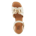 Mejora tu estilo con nuestra sandalia de tacón apilado sin cordones que presenta un lujoso detalle dorado, una parte superior de cuero festoneado y un cierre de hebilla seguro para una combinación perfecta de elegancia y comodidad.
