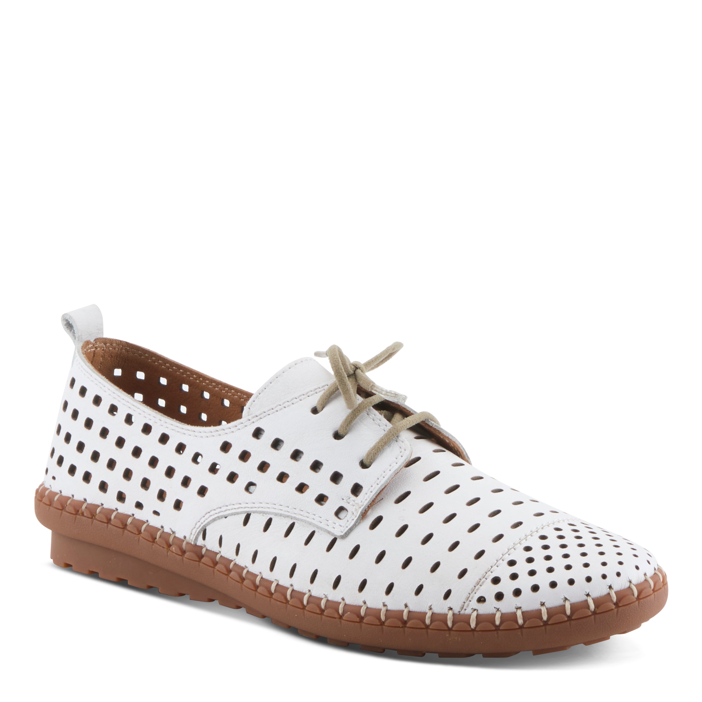 A trend-right leather lace up slip-on loafer featuring geometric laser cutouts on a flexible yet comfortable sole. Versality is our go-to, expect to immerge in comfort with elastic laces and arch support insole making you feel your walking on clouds every step of the way.