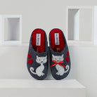Pantuflas de lana para interiores fáciles de poner que presentan un adorable dúo de gatitos.