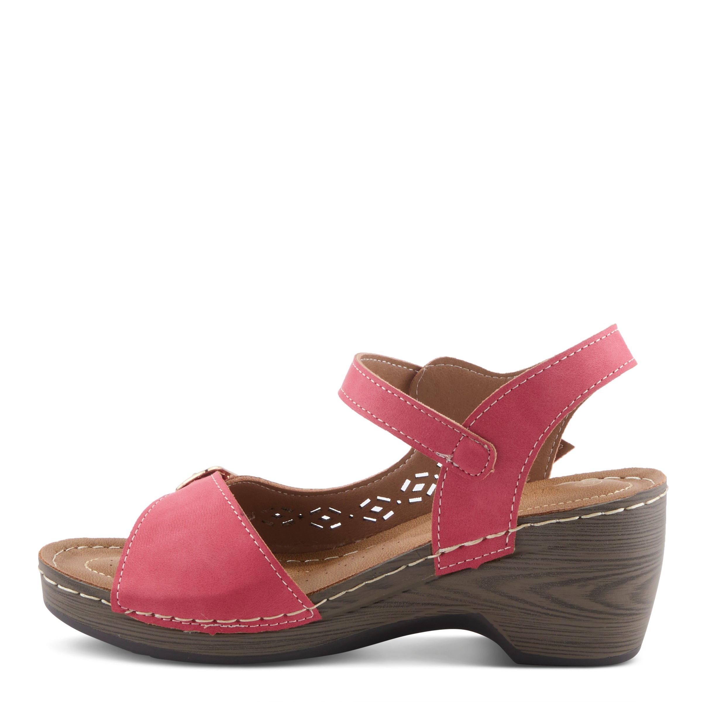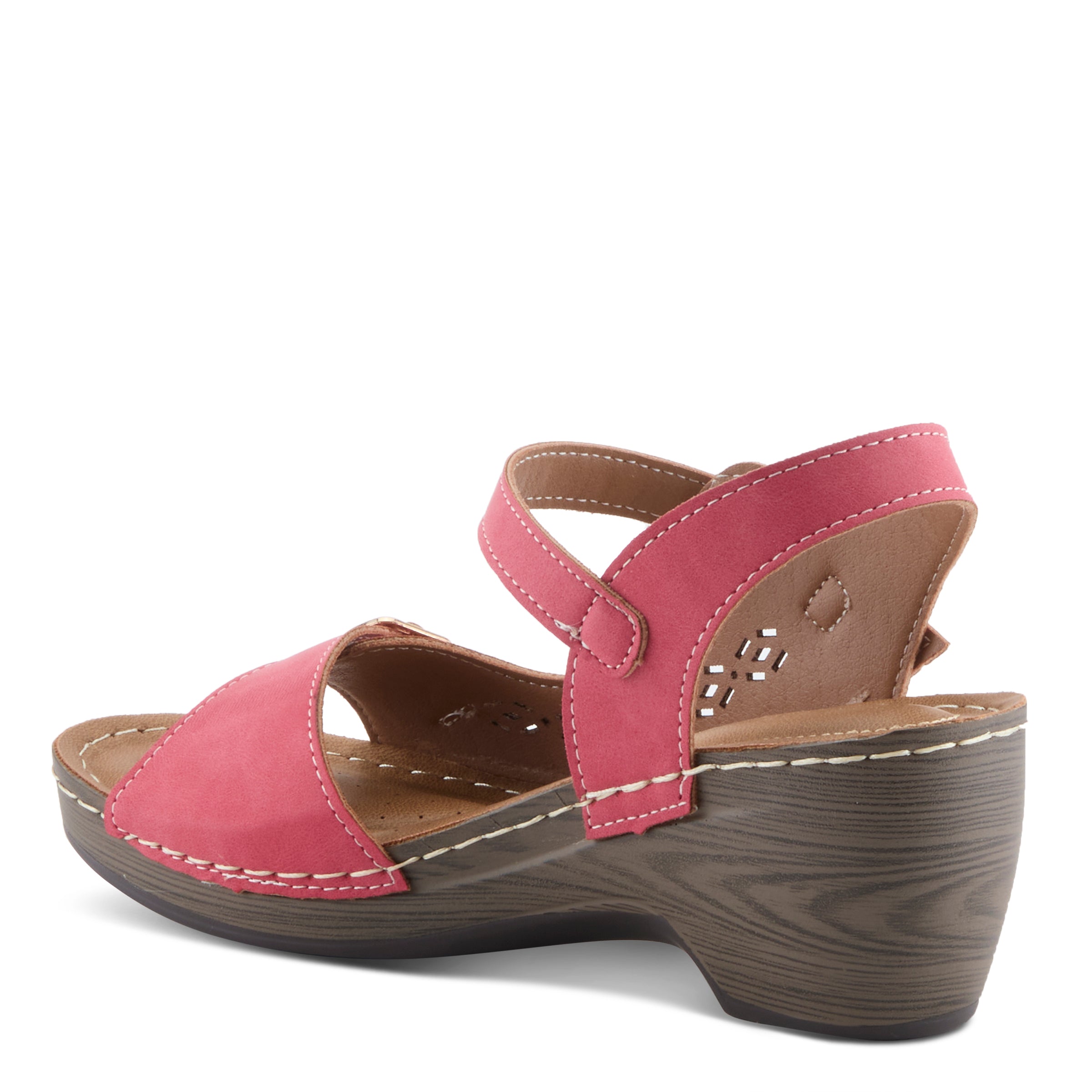 Personaliza tu comodidad. Esta cuña de punta abierta es la mejor manera de mostrar su pedicura. Usted y sus pies se sentirán hermosos con este diseño recortado. Las correas con hebilla lo mantienen seguro mientras sale corriendo a tomar un café o almorzar.