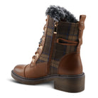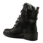 Stay cozy and stylish with this versatile lace-up boot with an inside zipper, designed to keep you warm while elevating your cold-weather wardrobe. Featuring soft faux fur lining and flannel plaid accents, this boot blends rustic charm with modern comfort. The durable upper provides long-lasting wear, while the sturdy block heel and grippy outsole ensure stability on various surfaces. This boot effortlessly combines fashion and functionality for casual outings or cozy winter walks.