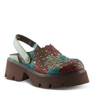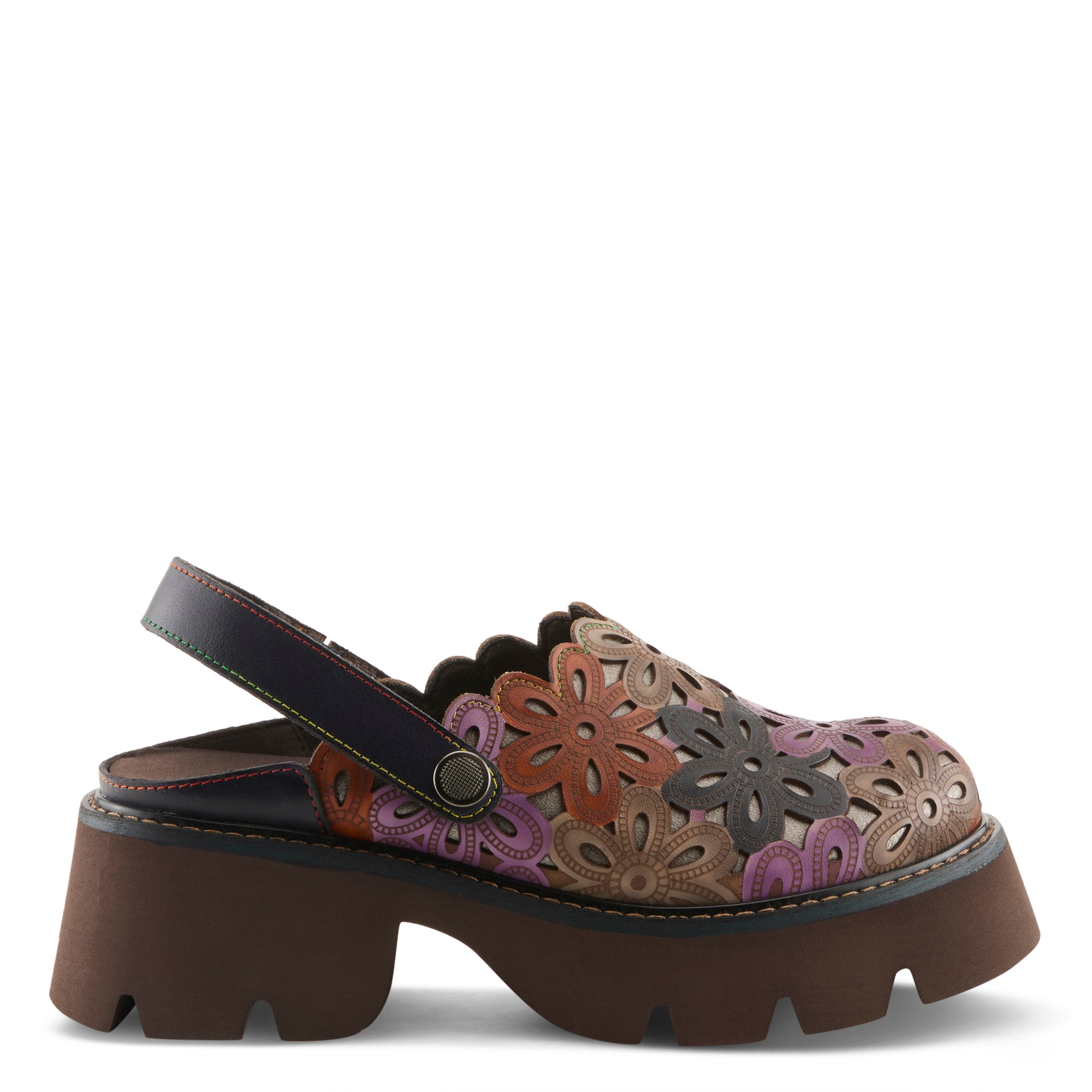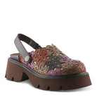 Embrace a bold, artistic vibe with this stunning leather platform clog. Featuring an intricately designed upper with cutout floral detailing, this shoe is the perfect blend of boho-chic and modern edge. The adjustable slingback strap ensures a secure fit, while the chunky platform sole offers stability and all-day comfort. Whether you're making a statement on the streets or elevating your casual wardrobe, this clog is designed to turn heads. With a mix of earthy tones and playful textures, it's the perfect shoe for trendsetters who love comfort with a creative touch.