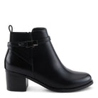 Step into effortless style with this chic, fashion-forward ankle boot. Designed with a sleek silhouette, it features a smooth faux leather upper with burnished elements for a rich, polished look. The elastic gore side panels ensure flexibility and easy on-and-off wear, while the gold-toned buckle detail adds a touch of modern elegance. A faux stacked block heel provides both height and stability, making this boot perfect for all-day wear. Whether paired with jeans, skirts, or dresses, this boot is a versatile must-have for any trendsetter''s wardrobe.