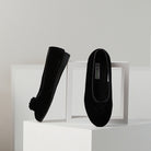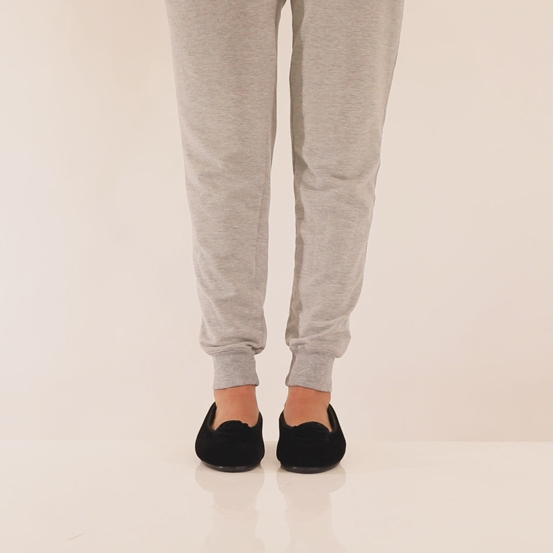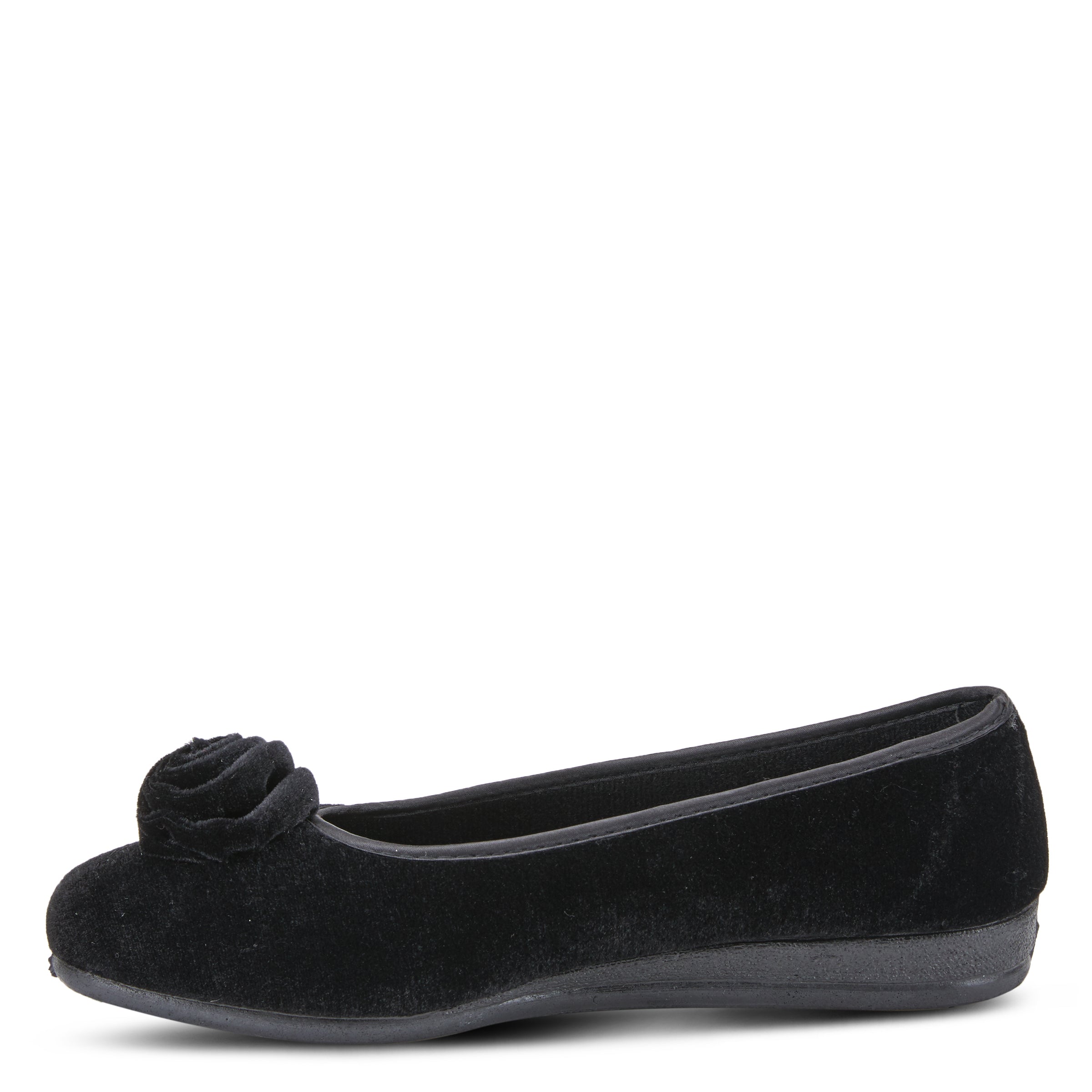 Bailarina de interior fácil de poner, similar al terciopelo, con un detalle de rosa suave a juego.