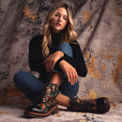 Step into an artful blend of rugged charm and chic design with these statement boots. Featuring a rich leather combo upper, these boots are adorned with intricate floral embroidery and signature rainbow stitching details for a modern, artistic touch. The inside zipper ensures easy wear, while the studded accents and cool etching details on the heel bring a bold edge. A durable lug sole provides excellent traction, making these boots as practical as they are stylish. Perfect for trendsetters who love a unique, handcrafted feel in their footwear.
