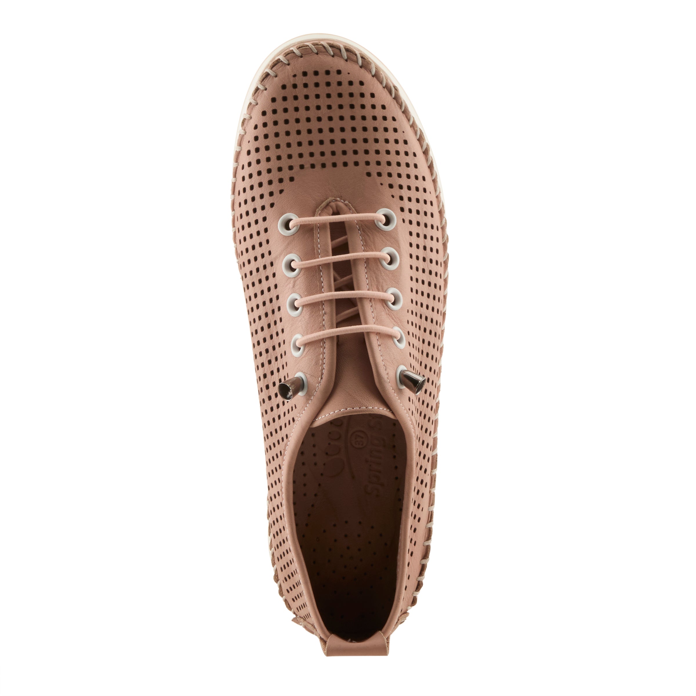 - La parte superior de cuero presenta perforaciones en todas partes para el flujo de aire junto con cordones elásticos para una comodidad personalizable.