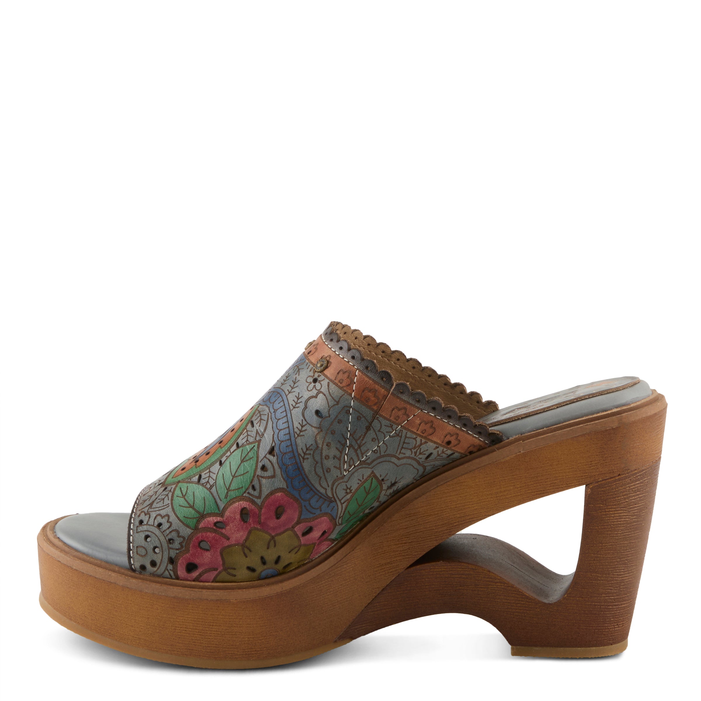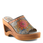 Bloom with beauty in the CALLE slide. This feminine sandal features a genuine leather upper adorned with hand-painted flowers, etched floral designs, and intricate laser-cut details that create an eye-catching, one-of-a-kind look. The architectural demi wedge heel showcases a cool cutout design, while the stretch gore upper ensures a secure, comfortable fit. Step out in style and let the CALLE elevate your look.