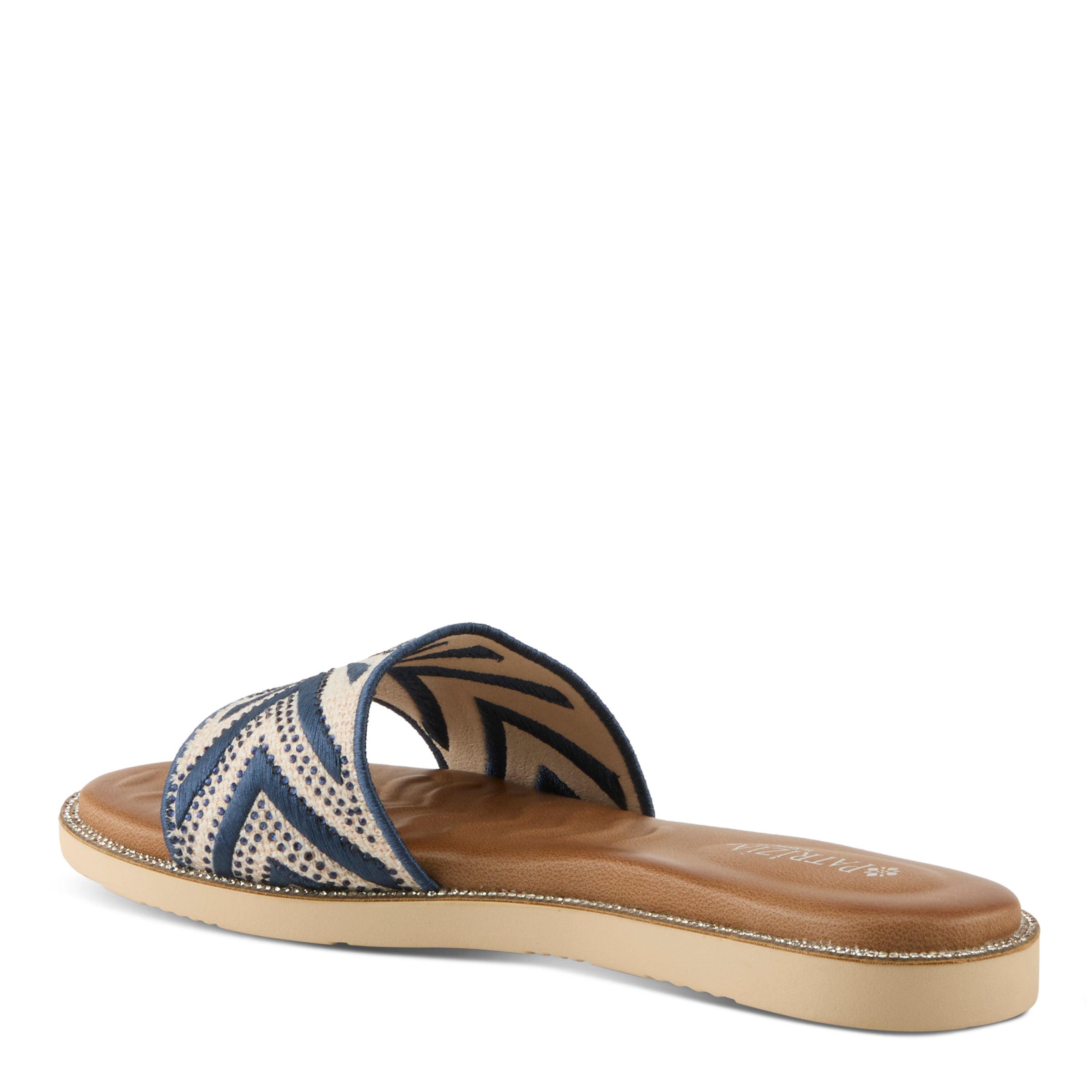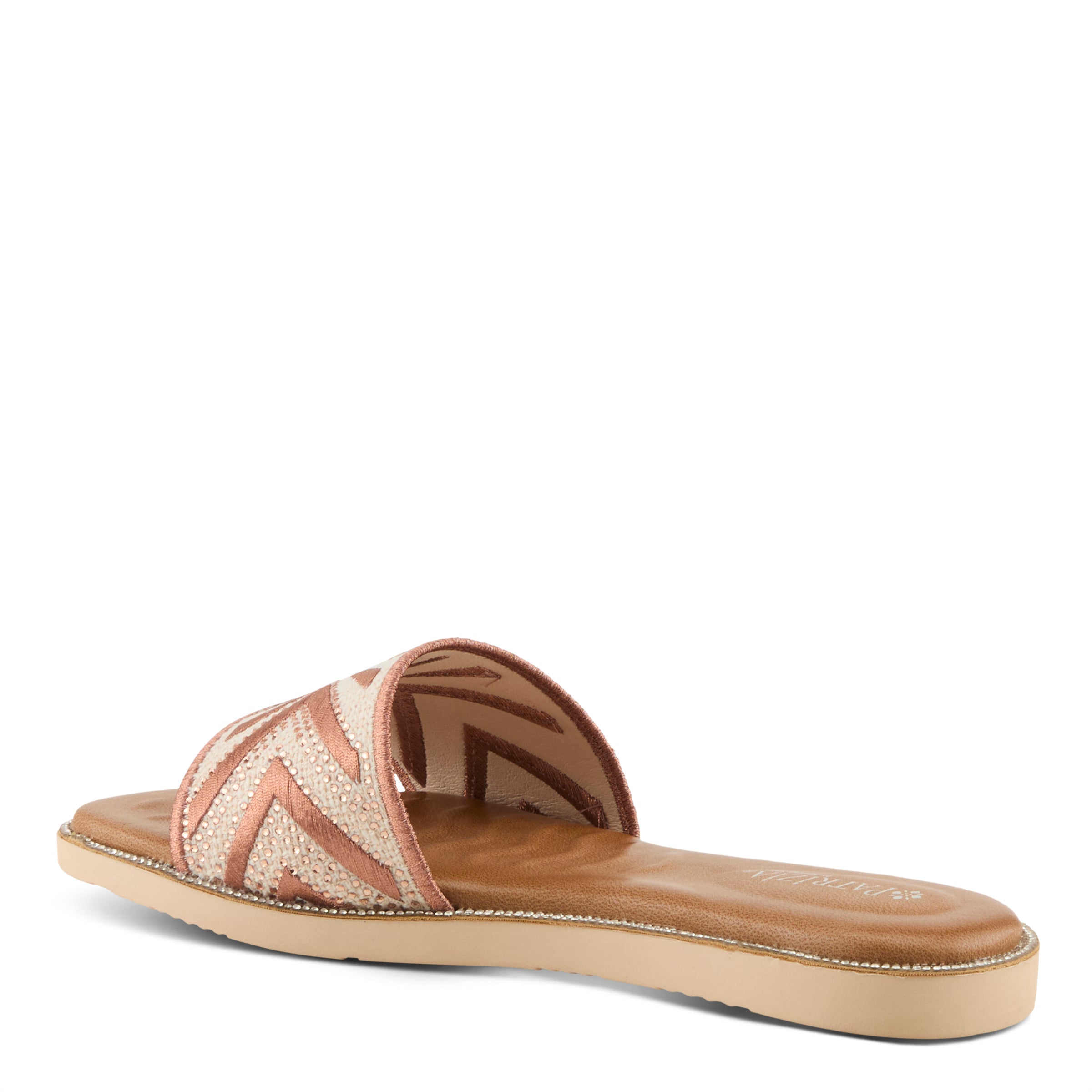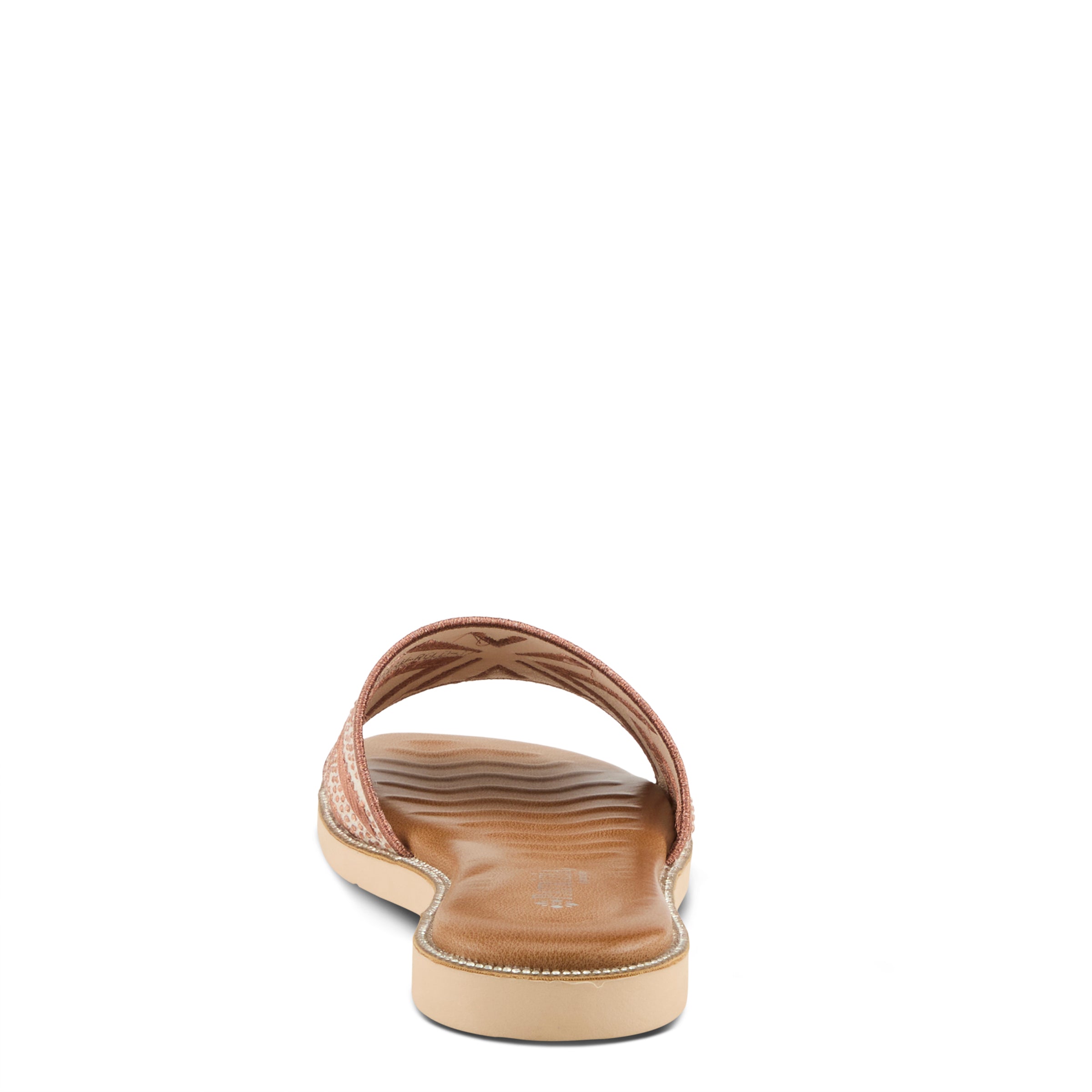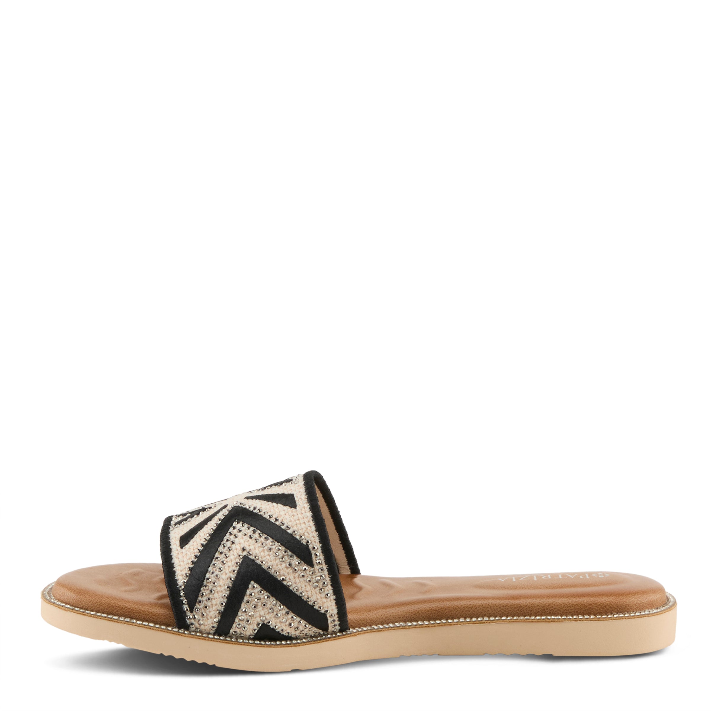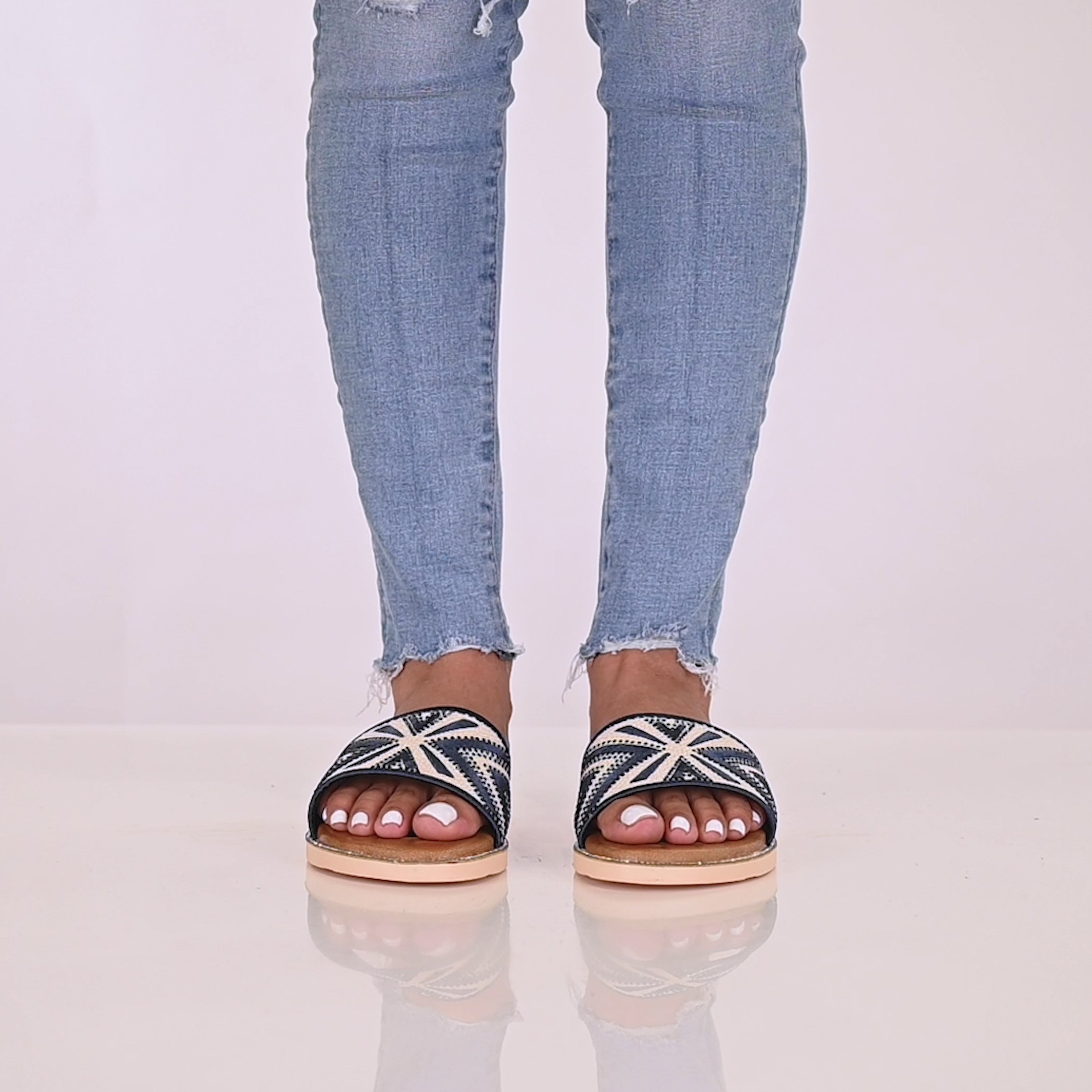 Keep your looks comfortable and casual during Summer time. Mariam features clean canvas material enhanced with embroidered designs and rhinestones.