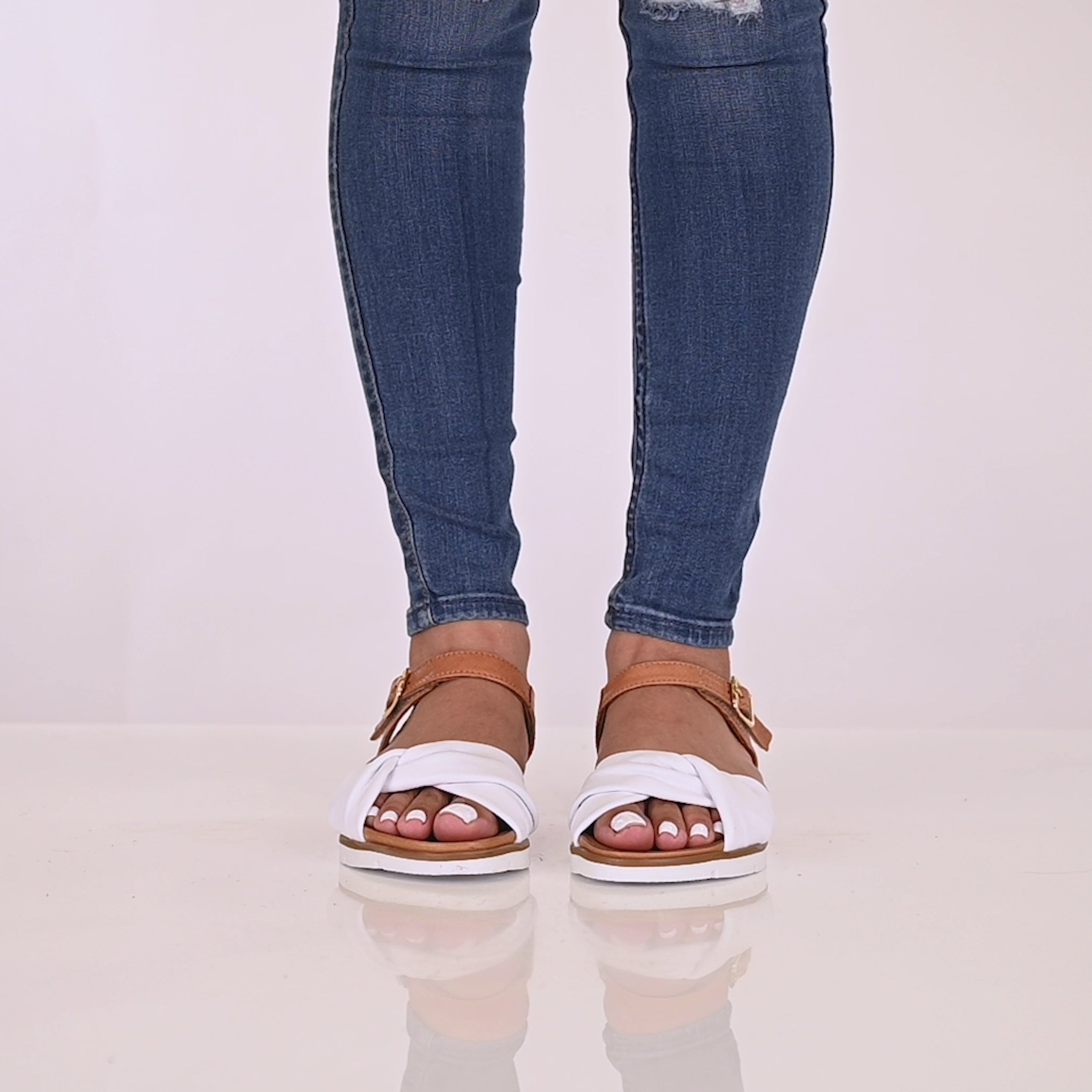 Elevate your style with this tubular leather front knot strap that adds sophistication while the hook and loop backstrap ensure a seamless fit. The supple leather embraces your feet each step of the way.
