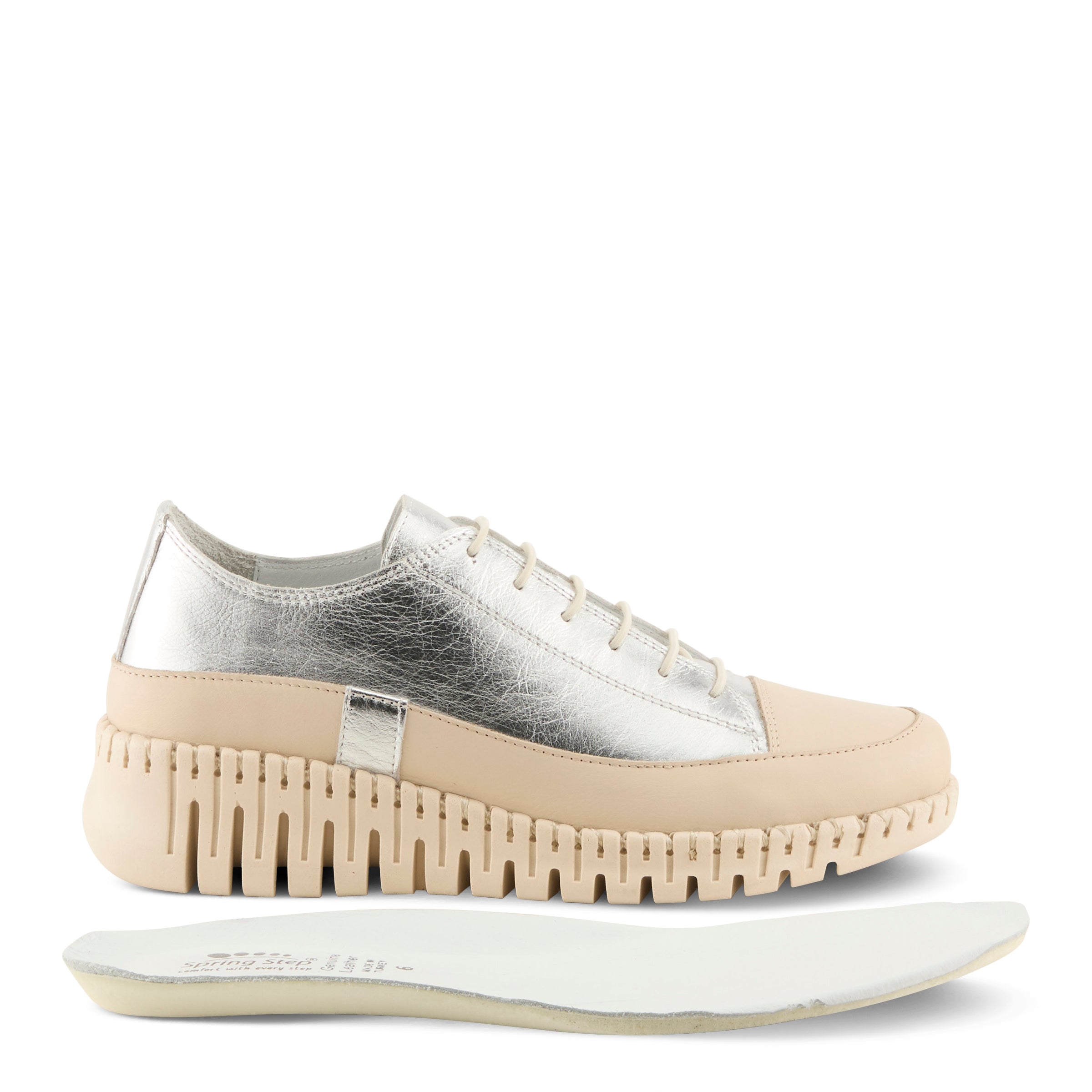 Get ready to step into style with these show-stopping sneakers! A beautiful blend of two-tone solid and metallic colors. Slip into pure comfort with elastic laces and removable insole tailor just for you! The outsole is a master piece on its own - fun, unique and distinctive, giving your every step an extra touch of flair.