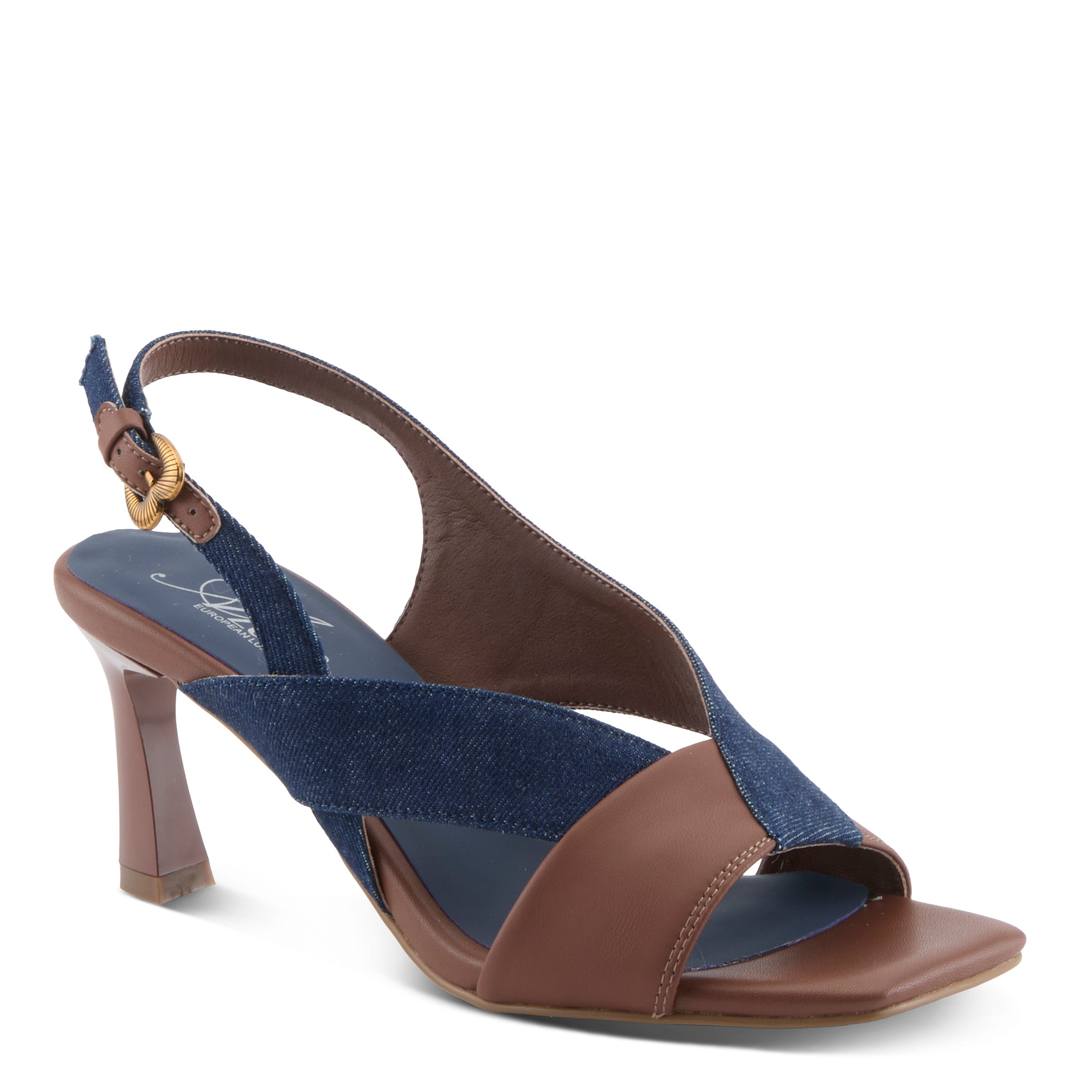 Step out in style with this sophisticated-meets-sweet sandal that’s guaranteed to turn heads. The upper blends rich leather with casual-chic denim, creating a unique mix of polished elegance and modern edge. Adding to its charm is a gold-toned heart-shaped ornamental detail — playful, romantic, and irresistibly stylish.