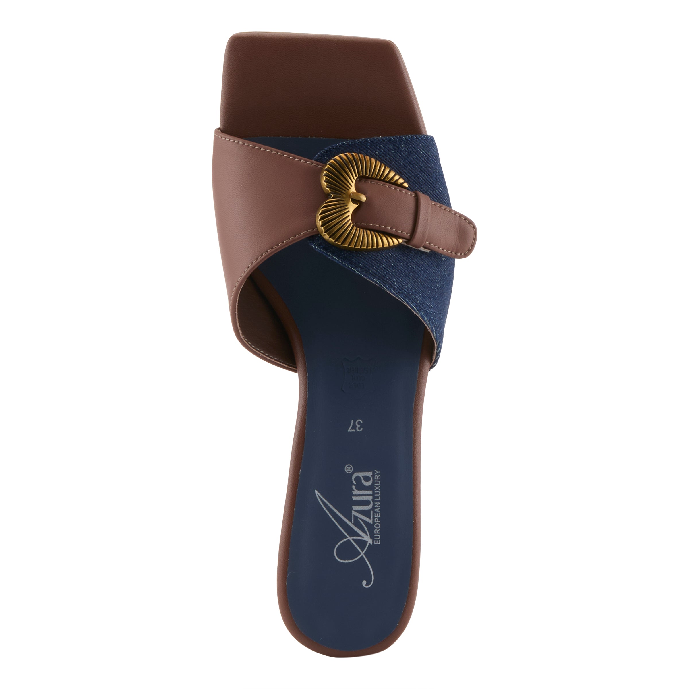 Fall in love with every step in this chic slide sandal, designed with a modern twist and a touch of whimsical romance. Featuring an upper crafted from a unique blend of denim and leather, this sandal effortlessly balances casual charm with polished sophistication.