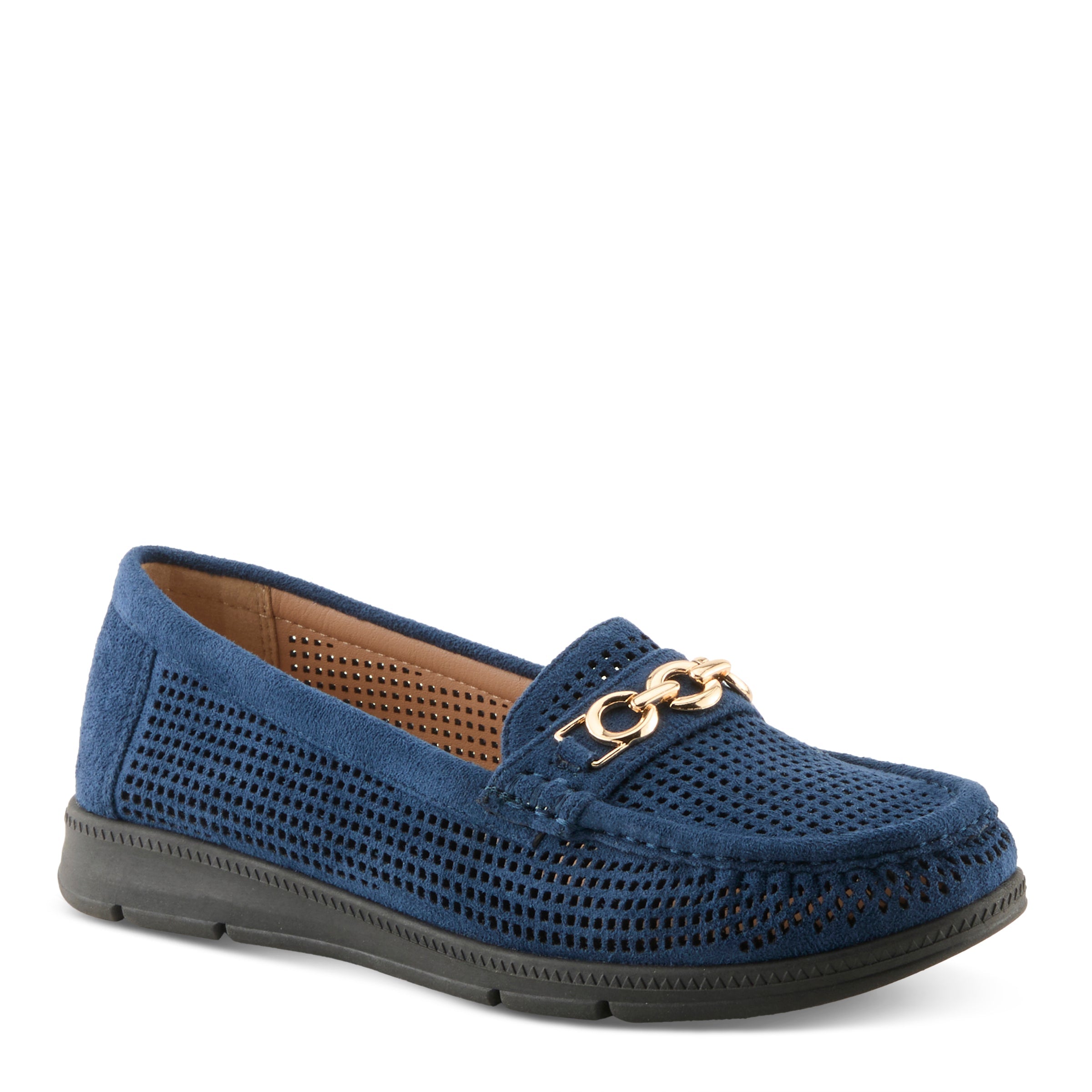 Elevate your everyday style with this boat shoe-inspired moccasin that blends timeless design with modern flair. Crafted from soft microsuede with mesh cutouts, this shoe offers breathable comfort and chic detailing, while the gold-plated hardware adds a touch of luxe sophistication.