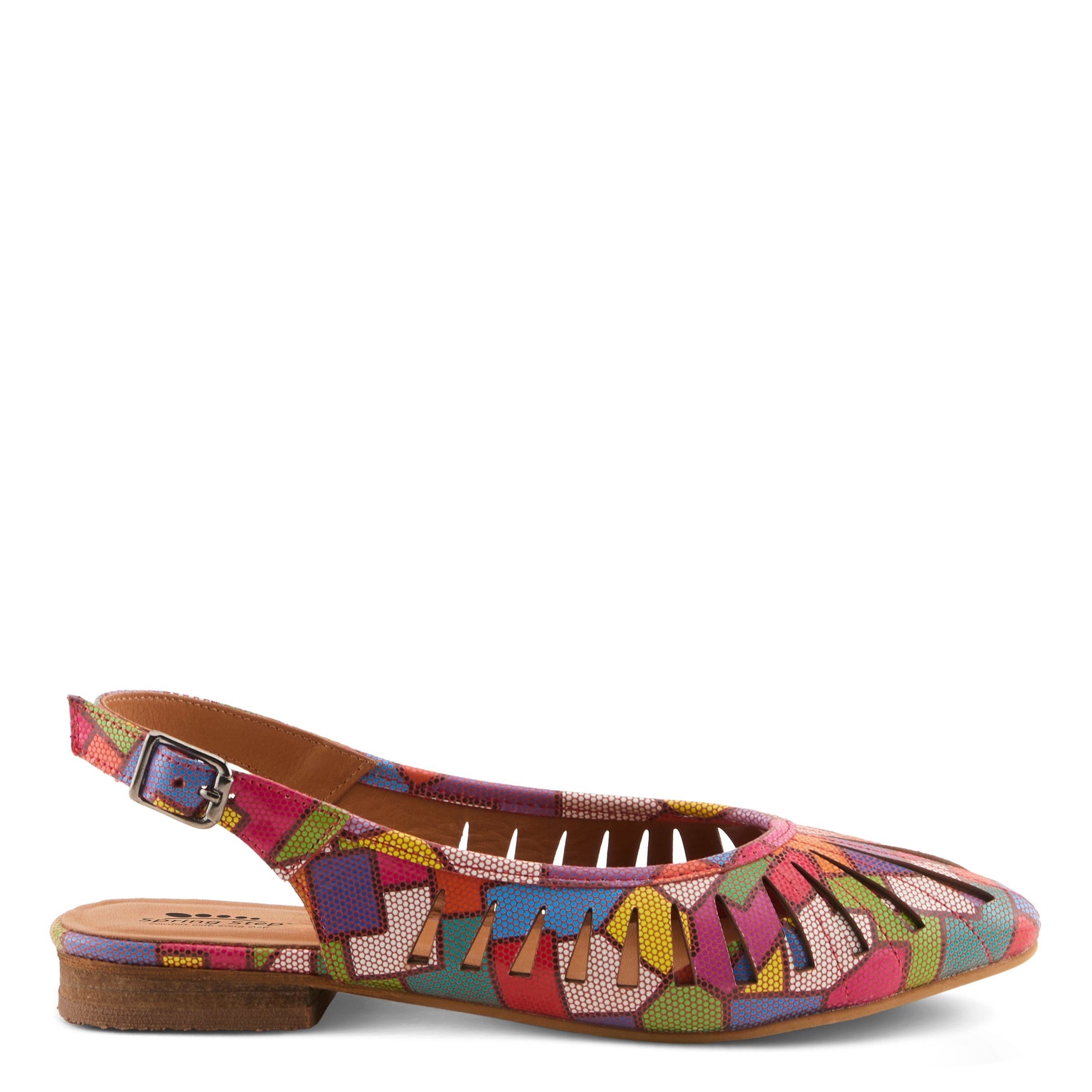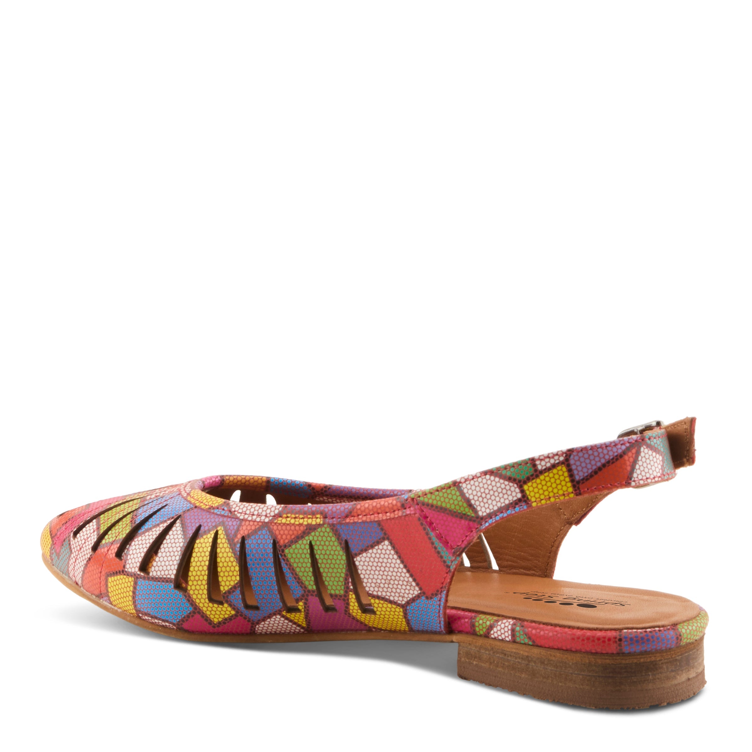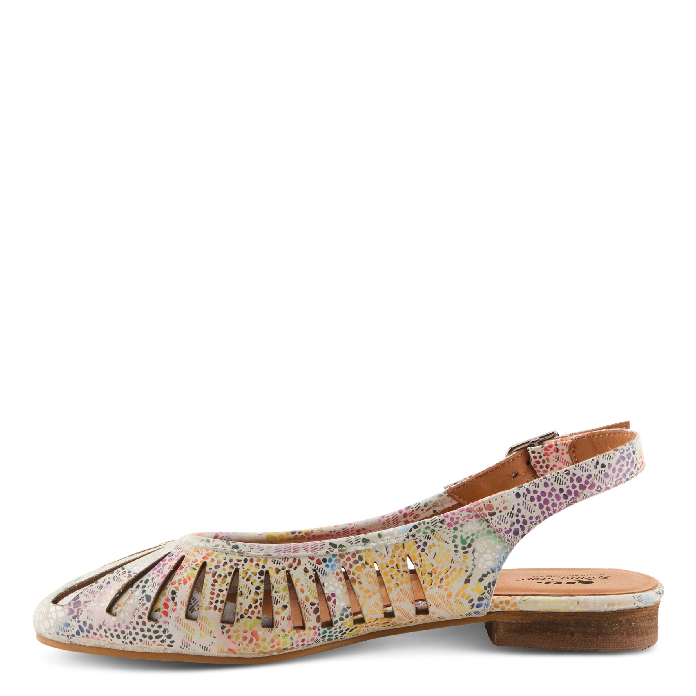 This slingback flat redefines contemporary chic with its pointed-toe silhouette and bold printed leather upper, punctuated by crisp vertical cutouts that give a sleek, architectural edge. Crafted in Turkey, it combines fashion-forward design with comfort, thanks to its full leather lining and softly padded insole. The adjustable slingback buckle adds a tailored touch, while the low stacked heel brings just enough polish. Whether worn with cropped denim, minimalist jumpsuits, or wide-leg trousers, this modern flat moves effortlessly from coffee shop meetings to rooftop gatherings and creative workspaces—where style and ease belong together.