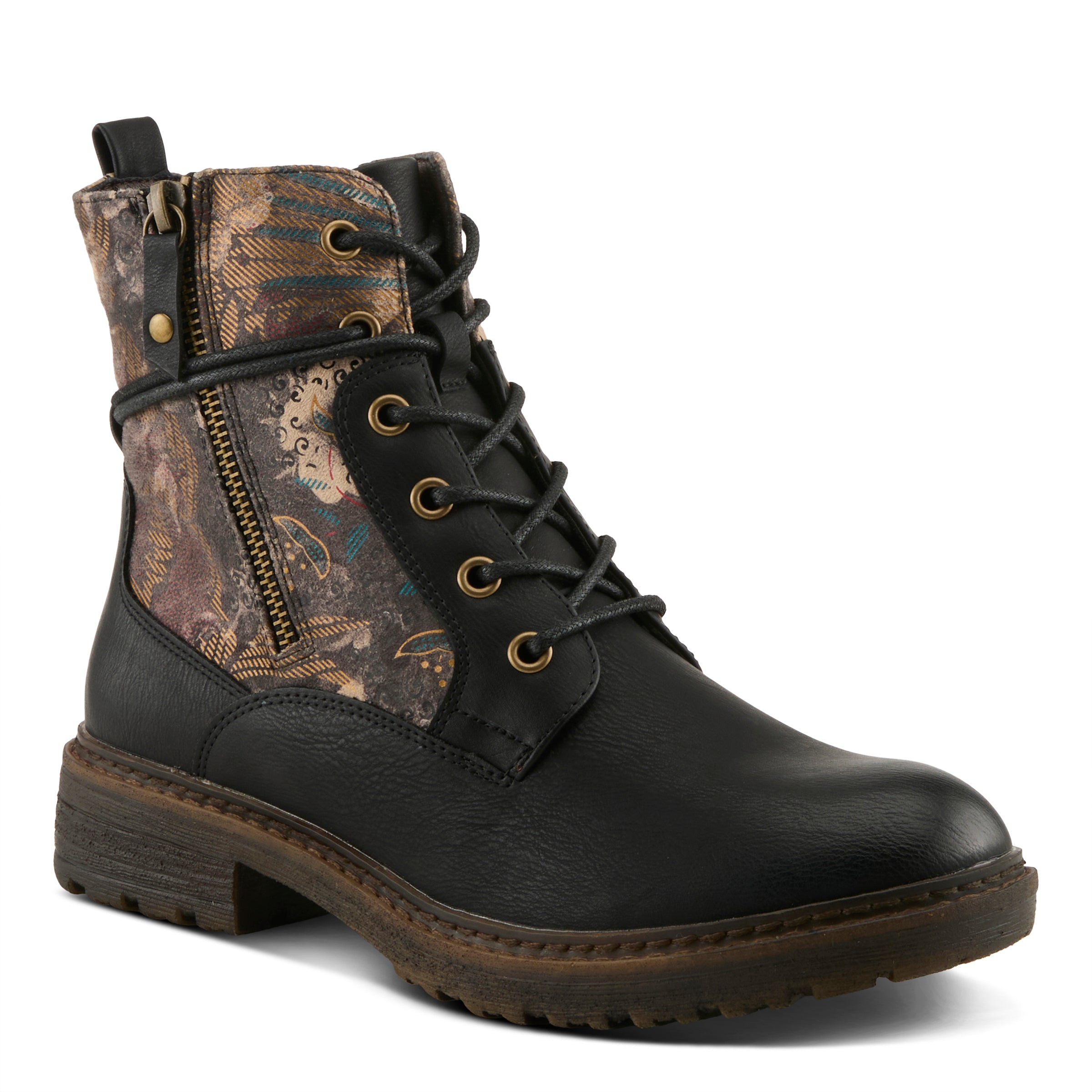 Agrega estilo a tu conjunto con nuestras botas con cordones estilo militar con estampado floral. Con su delicado estampado floral, detalles antiguos y diseño confiable, son la combinación perfecta de moda y funcionalidad para el guerrero moderno.