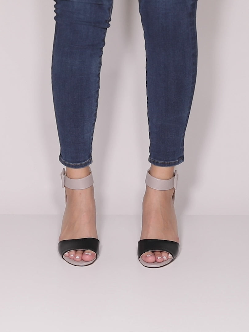 Esta sandalia de influencia holandesa es elegante y sofisticada con su diseño de colores combinados y su silueta de punta redonda. La correa ajustable con hebilla en el tobillo, el tacón grueso de dos tonos y el antepié flexible hacen que este tacón alto tenga un gran estilo. Es un toque elegante para cualquier guardarropa.